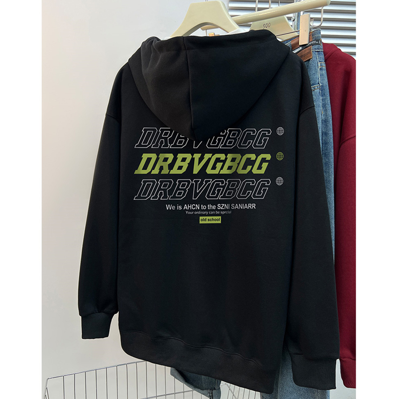 Plus Size American Retro Print Velvet Padded Hooded Sweatshirt Men and Women Oversize Loose Fashion Brand Couple Autumn Tops