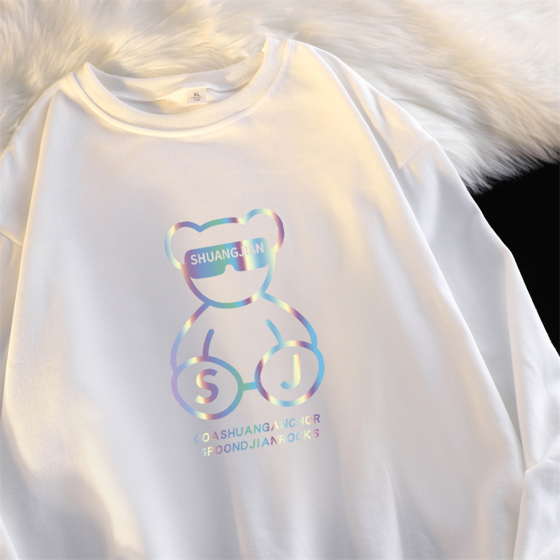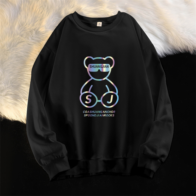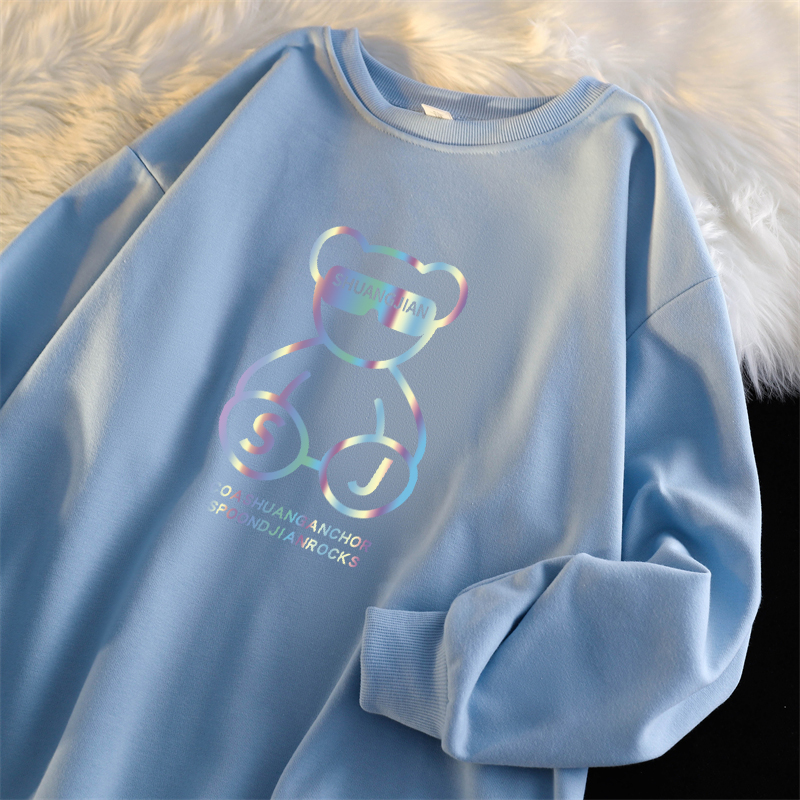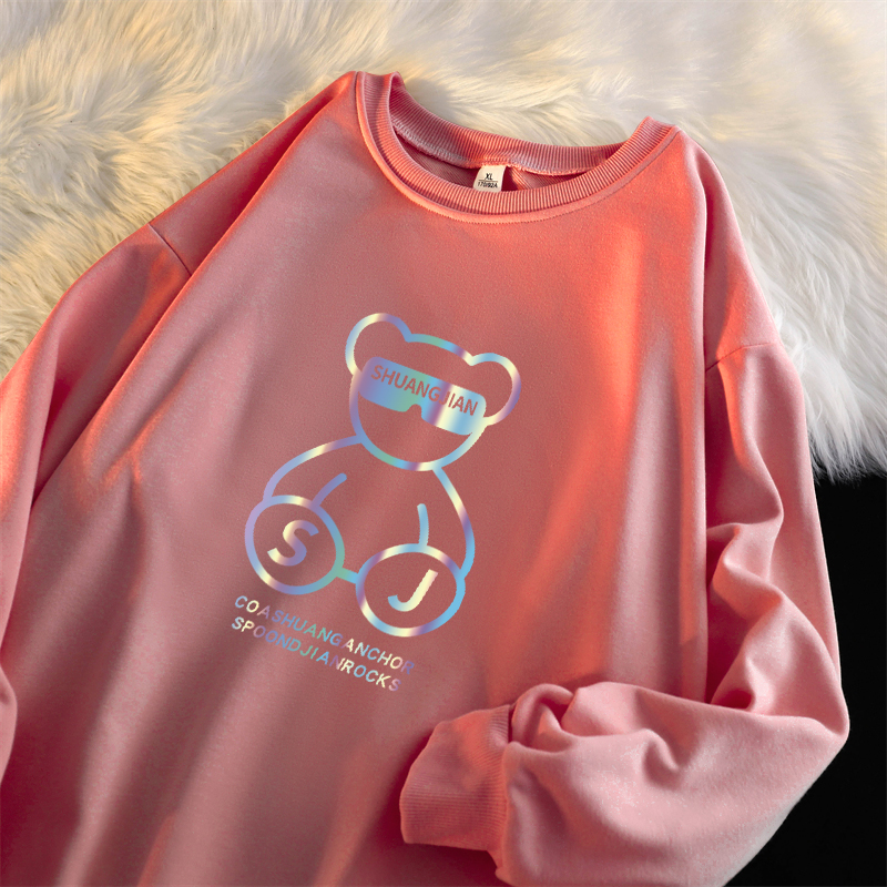 Plus Size Bear Hoodie Female Autumn Winter Loose Vintage Plus Size Ladies round Neck Cashmere Thickened Long Sleeves Chic Tops