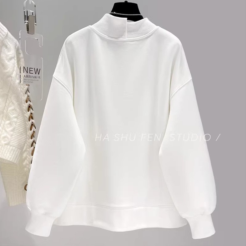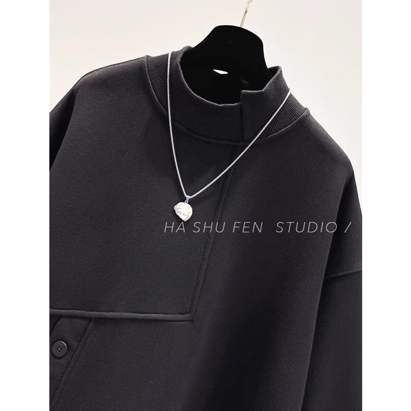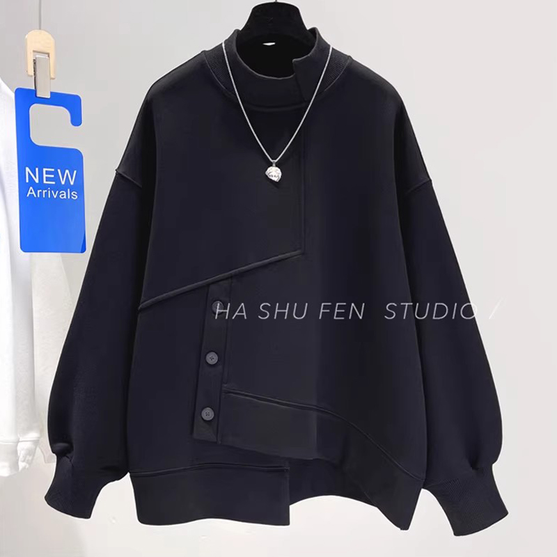 Spring Autumn New Plus Size Chubby Girl Personality Button Irregular Hoodie - Women's Niche Design Belly-Covering Slimming Age-Reducing Trendy Top