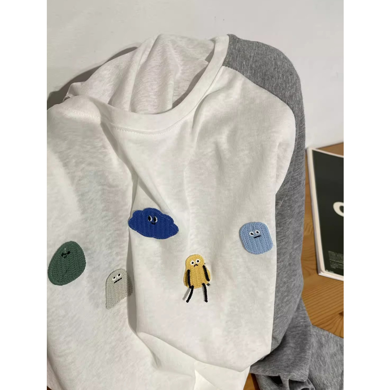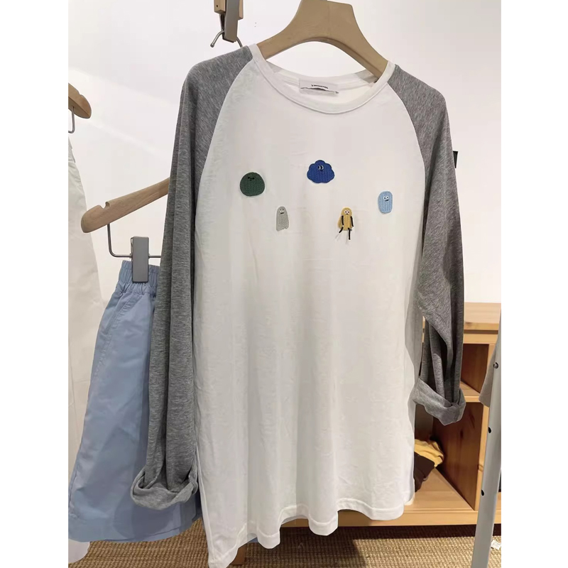 Plus Size Contrast Color Raglan Long Sleeves Sun Protective Blouse 2024 New Arrival Summer Loose Thin Breathable Print T-shirt Tops