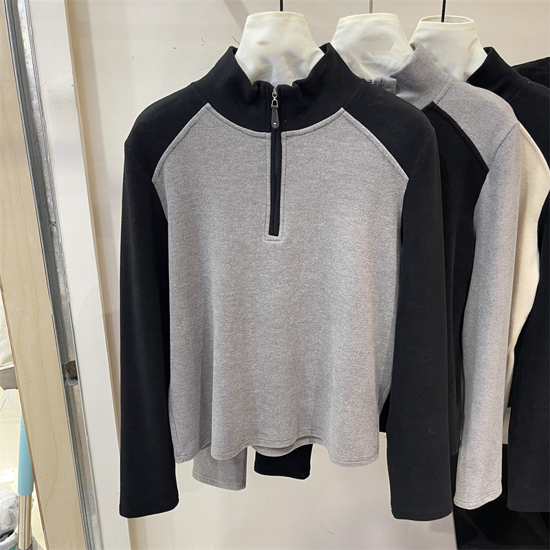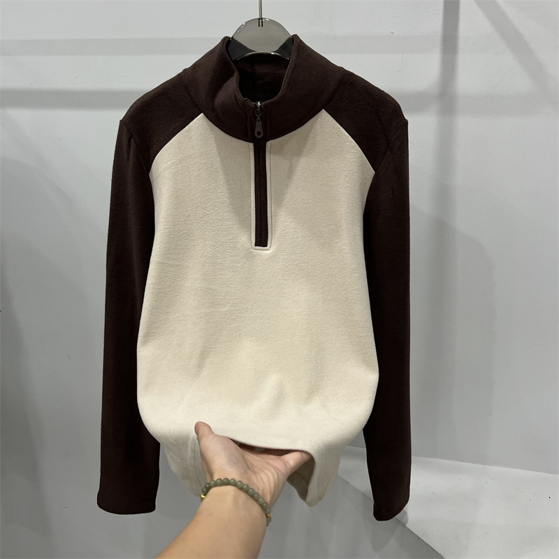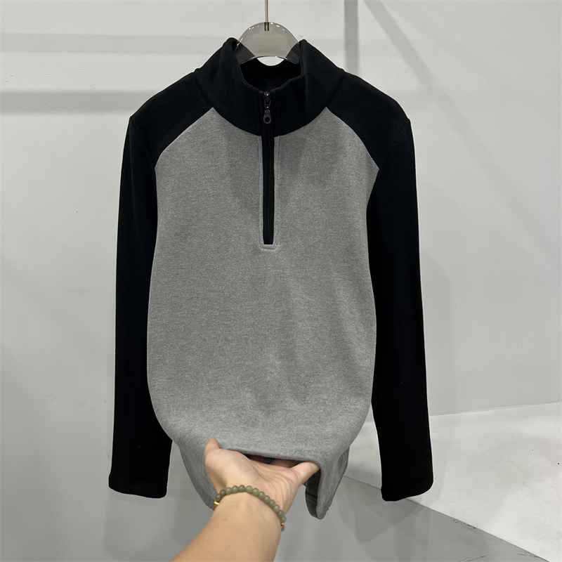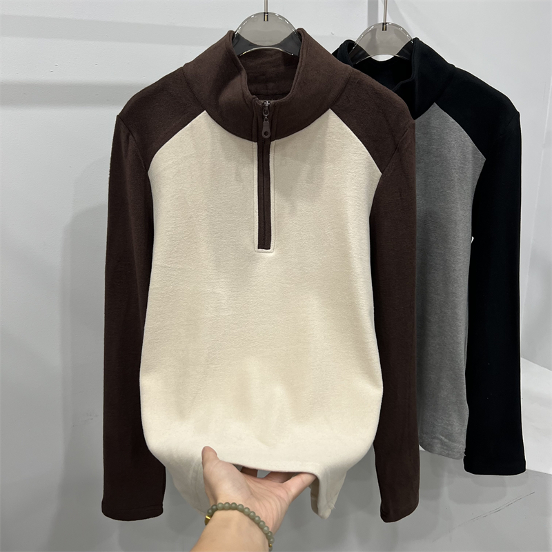 Plus Size Double-Sided Dralon Winter Long Sleeves T-Shirt Female Male New Arrival Half Zipper Base K-style Stand Collar Contrast Color Inner Wear Blouse