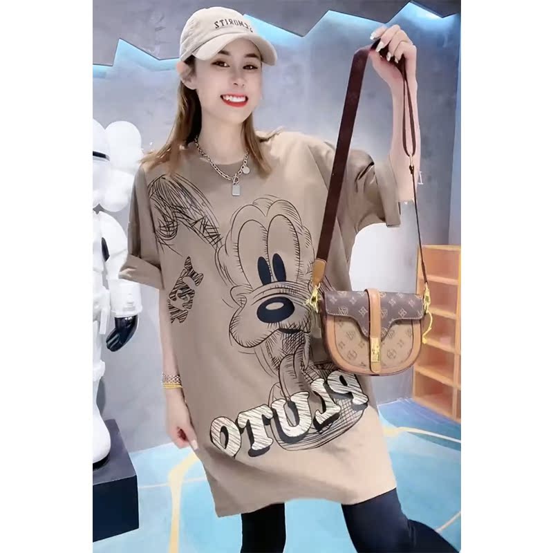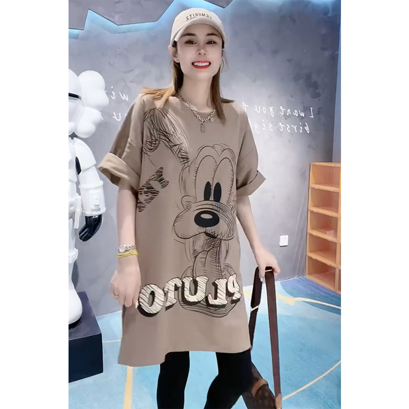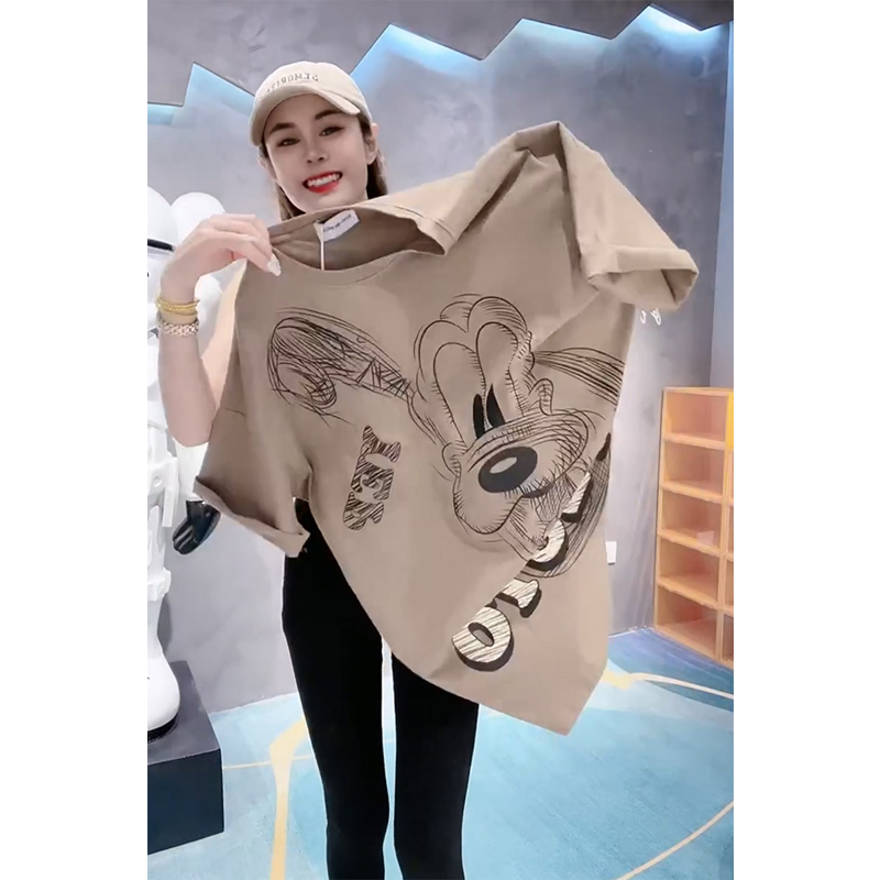 Plus Size Ladies 1.00 Kg-150.00 kg Plus Size Pure Cotton Loose Summer Trendy Sense of Design Cartoon Print Younger Short Sleeve T-shirt Female Fashion