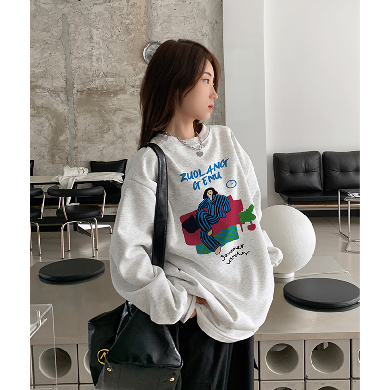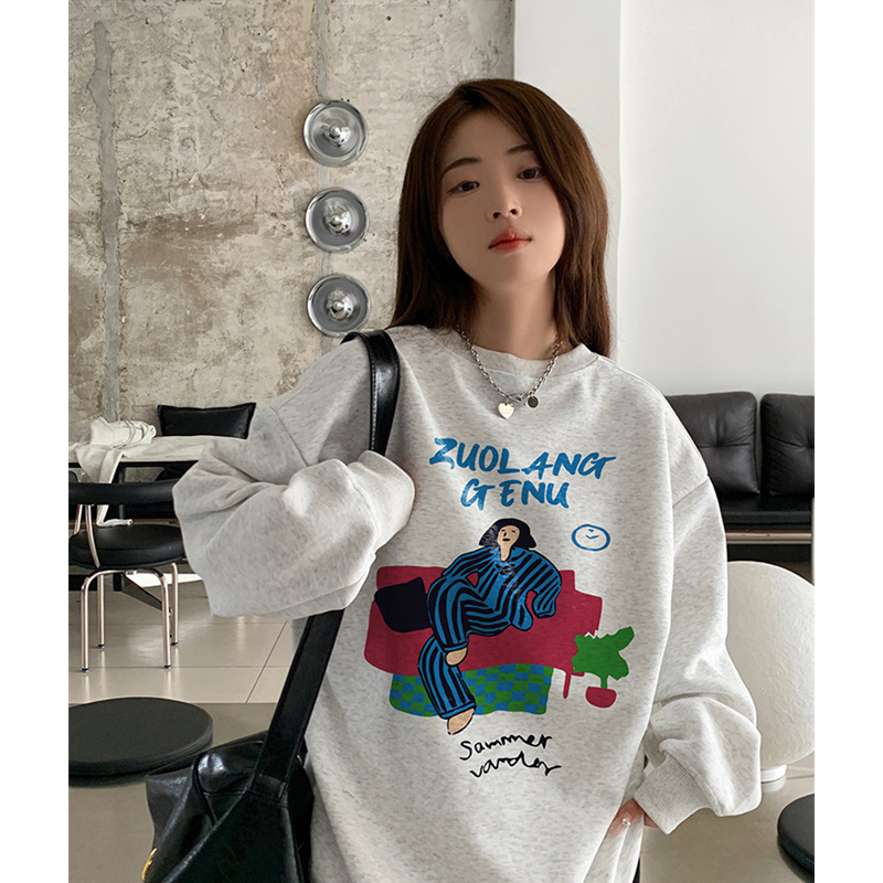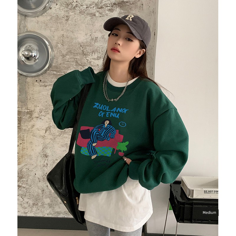 Plus Size Ladies Plus Size Hooded Sweatshirt Female 2024 Autumn and Winter New Arrival K-style Loose All-Matching Fleece-Lined Thickened Casual Tops