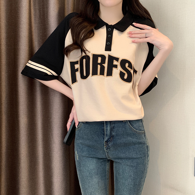 Plus Size Ladies Plus Size Western Style All-Matching Fashion Patchwork Short-Sleeved T-shirt Women's Summer Shoulder Polo Shirt T-shirt Top 100.00kg