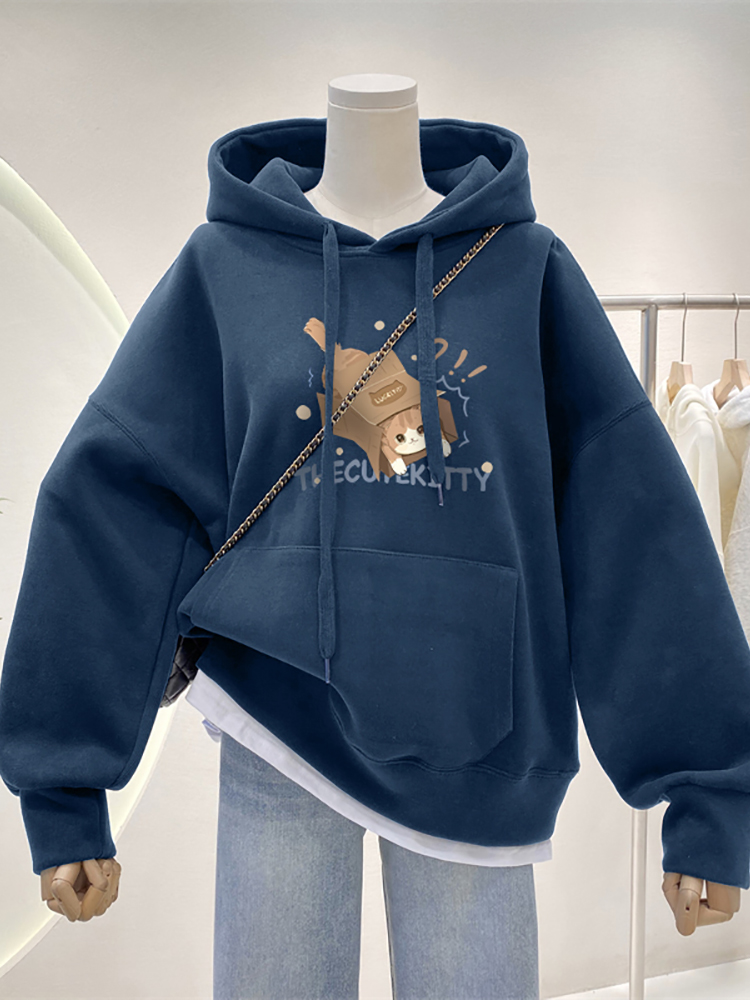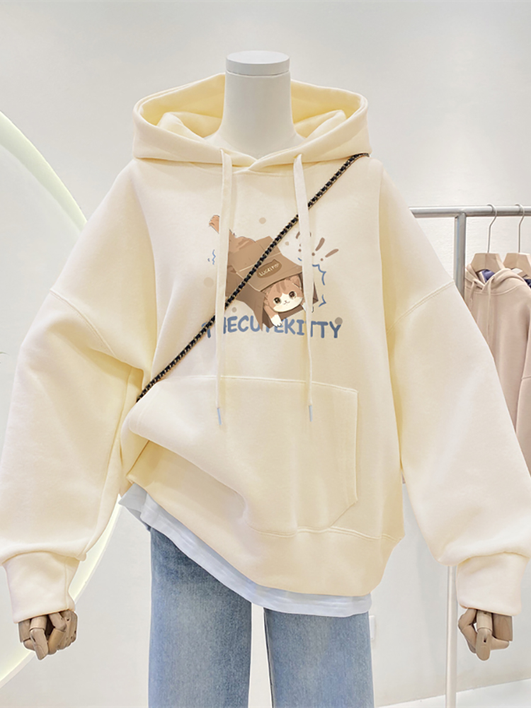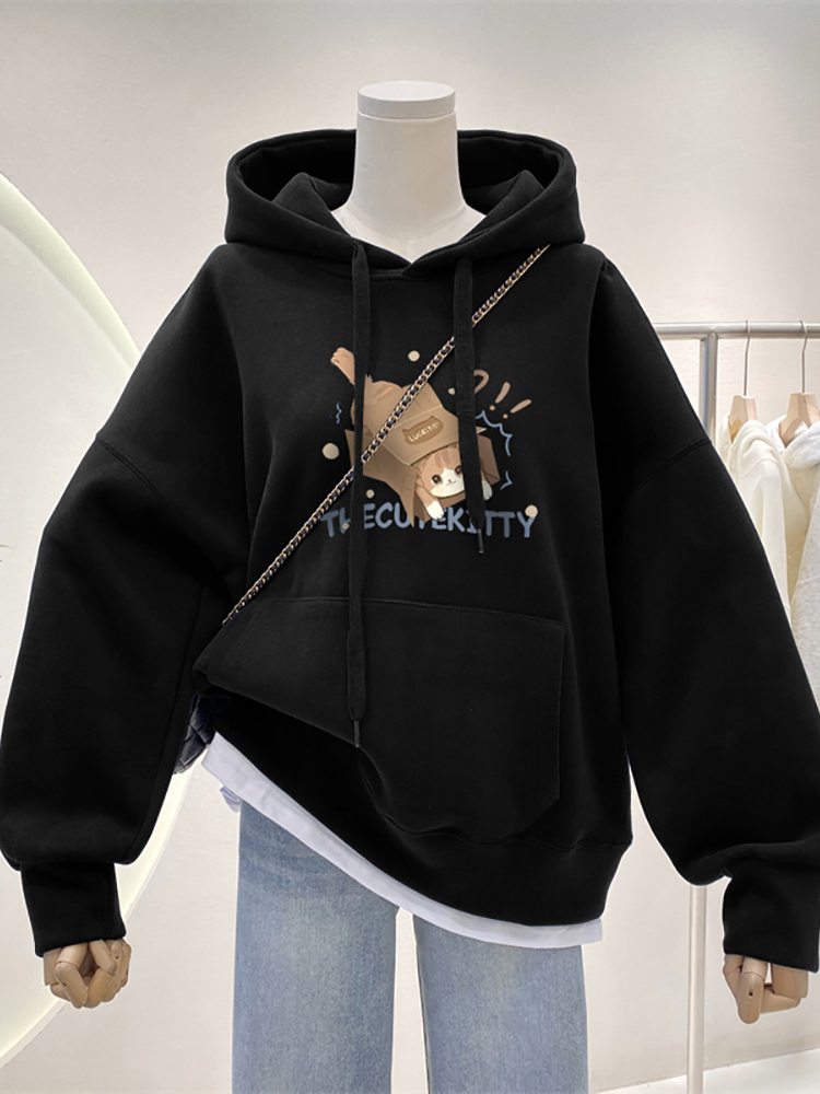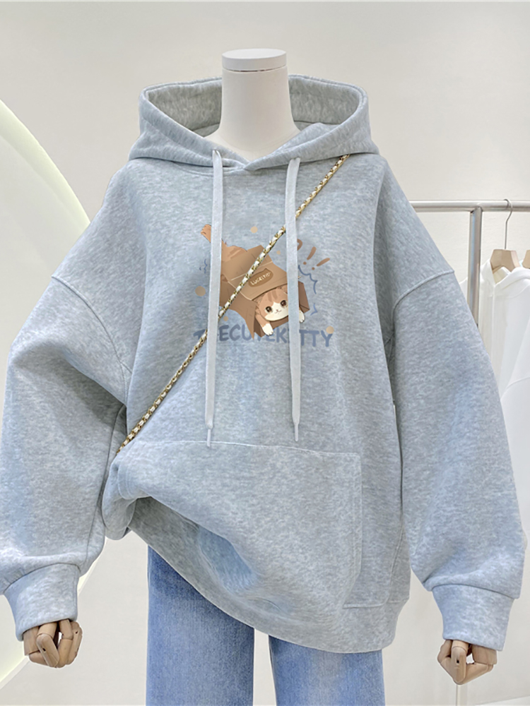 Plus Size Loose Plus Size Ladies Fleece-lined Thickened Hooded Sweatshirt Female Fall and Winter 2025 New Arrival Best Selling Small Coat Tops