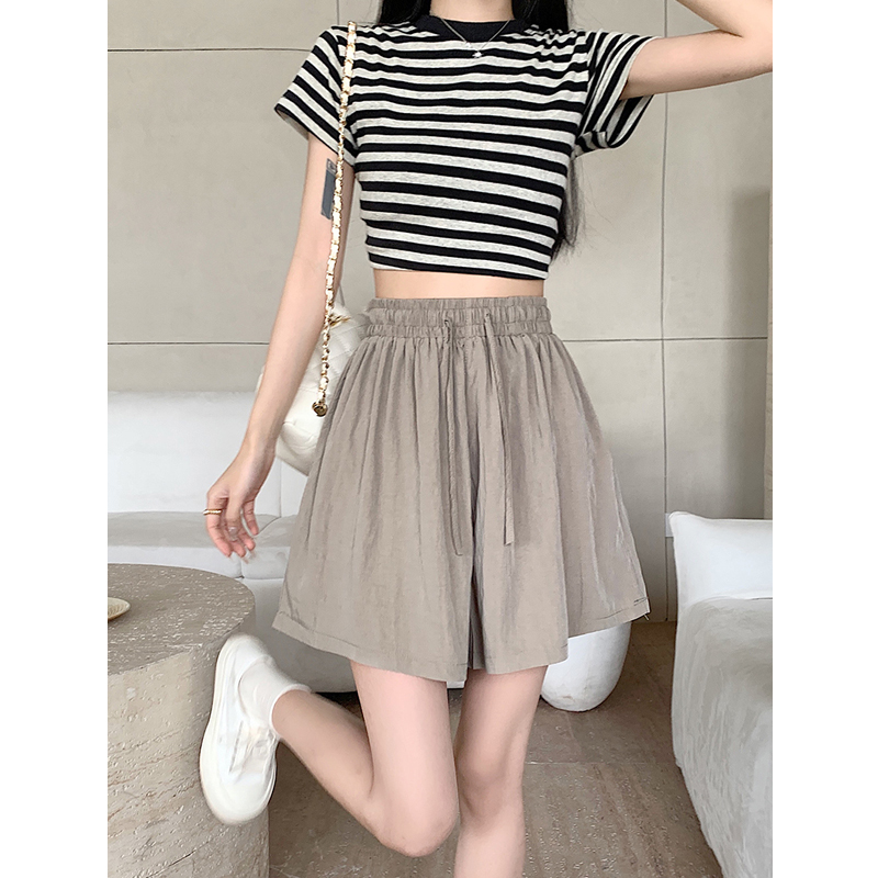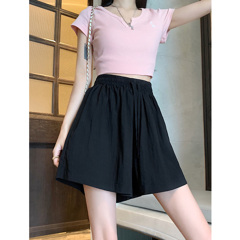 Plus Size Minimalist Style Sports Casual Pants Women's 2024 Summer New Arrival Thin A- line Wide Leg Shorts All-Matching Wide Leg Shorts
