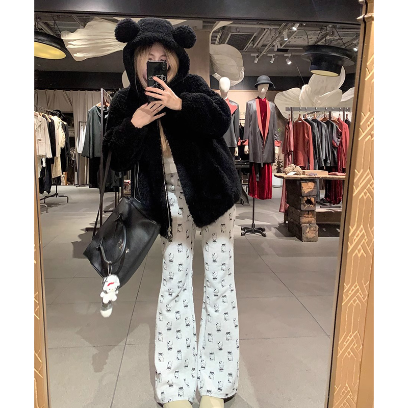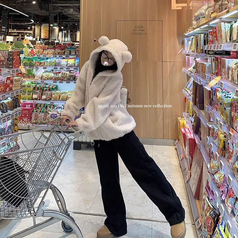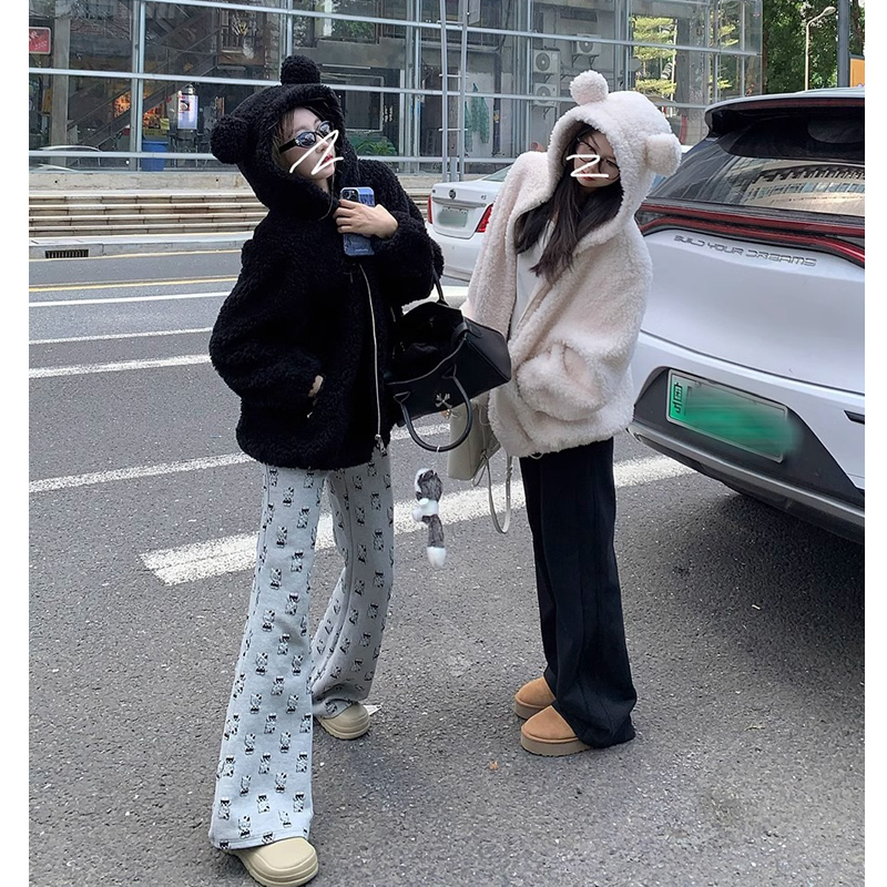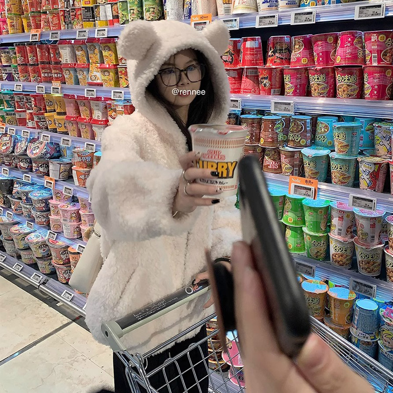 Plus Size Plus Size Ladies Fancy Cute Bear Ears Berber Fleece Coat Female Winter Furry Loose Padded Cotton Jacket Cotton Coat