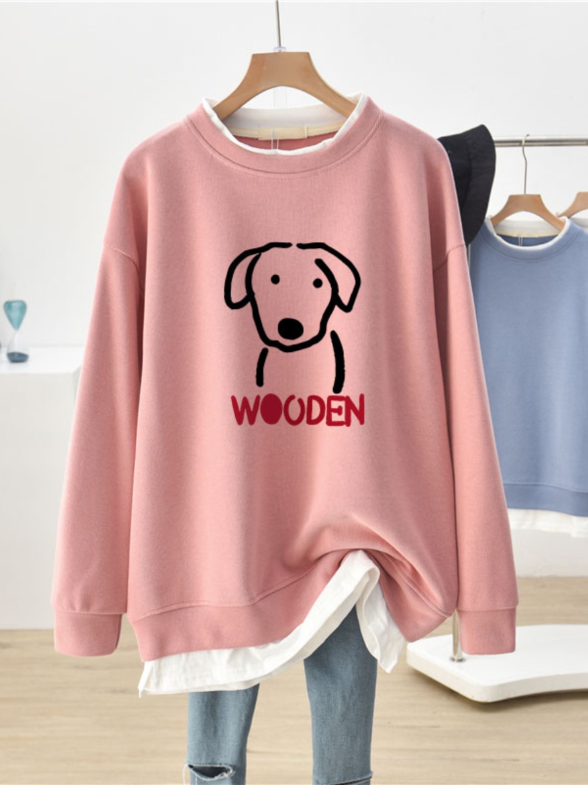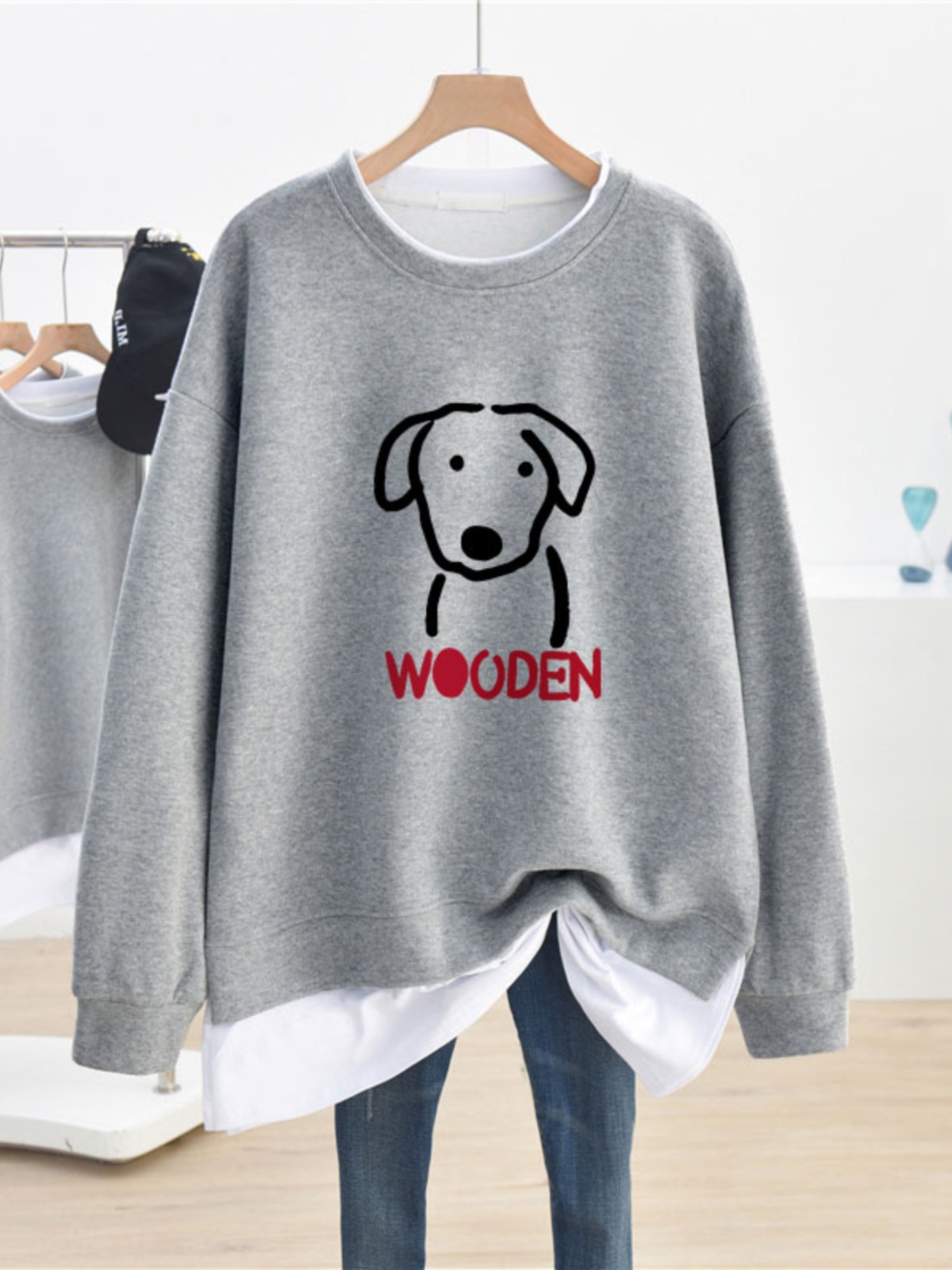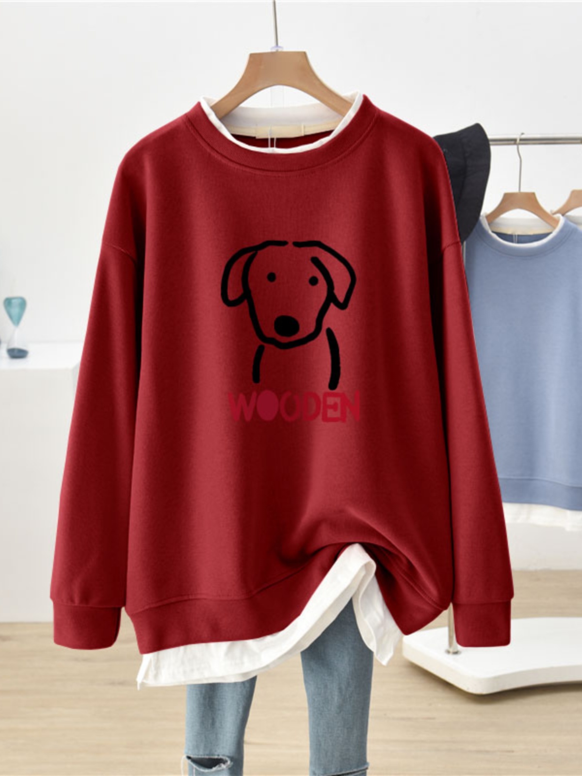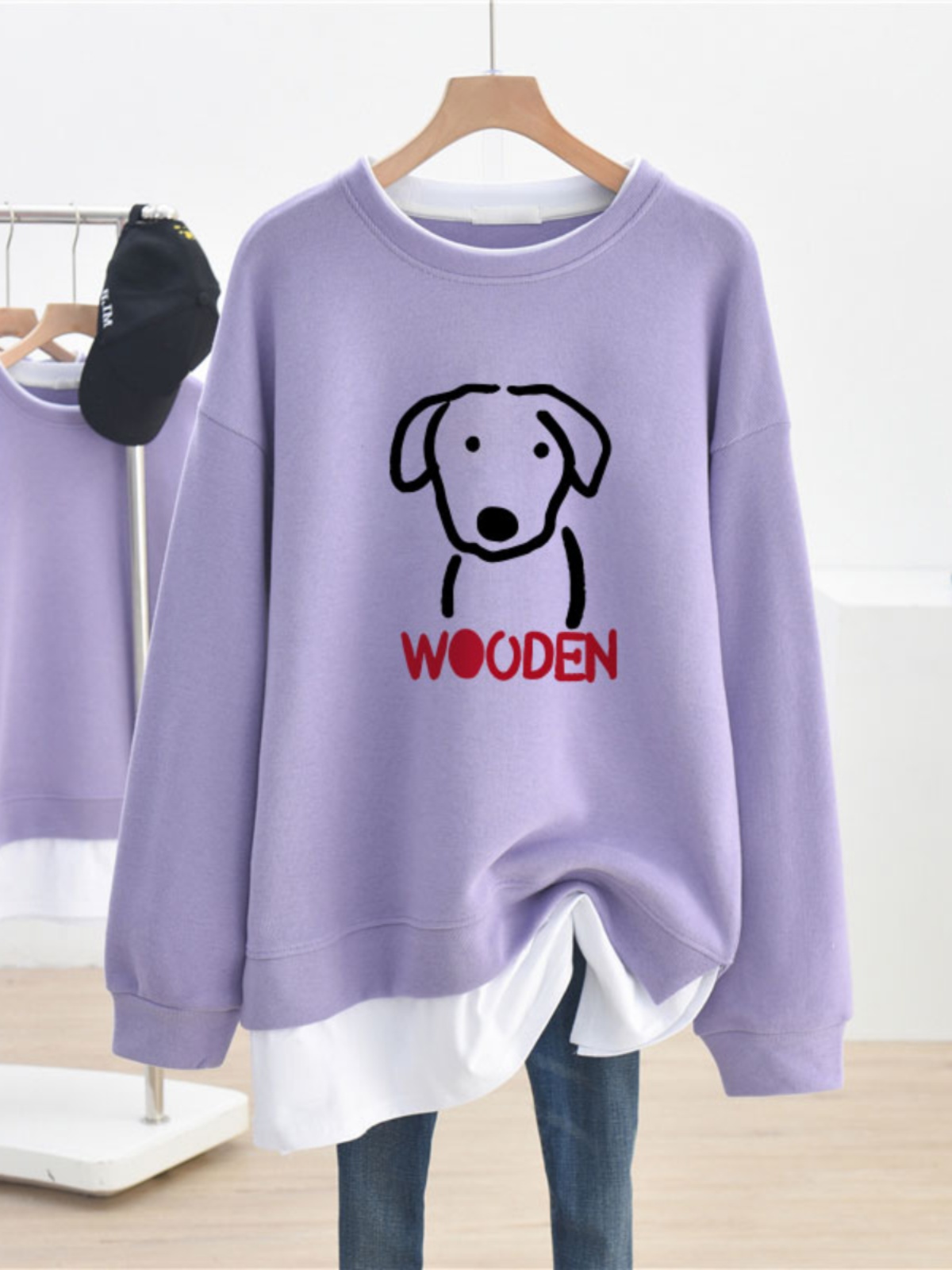 Plus Size Plus Size Ladies Loose False Two Pieces round Neck Sweatshirt Female American Oversize Fall and Winter Velvet Padded Thickened Coat Tops