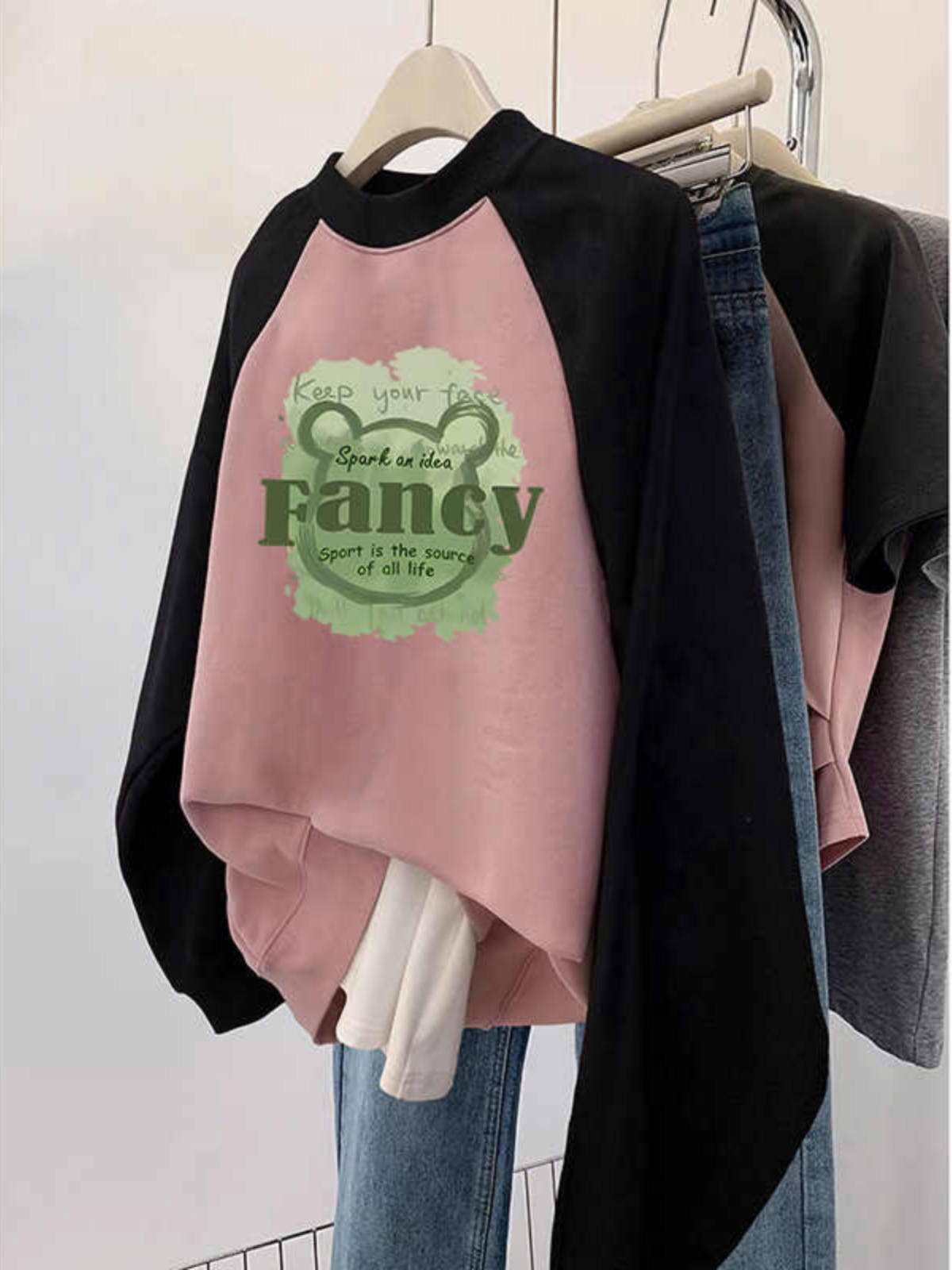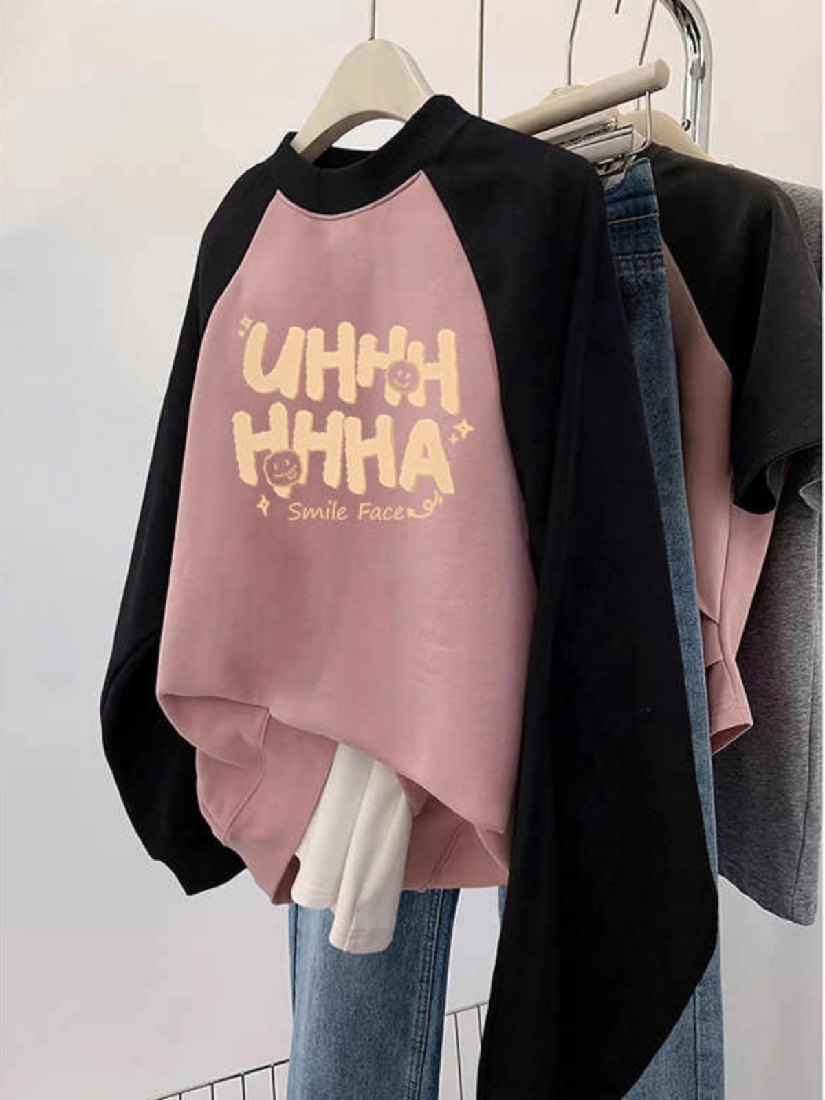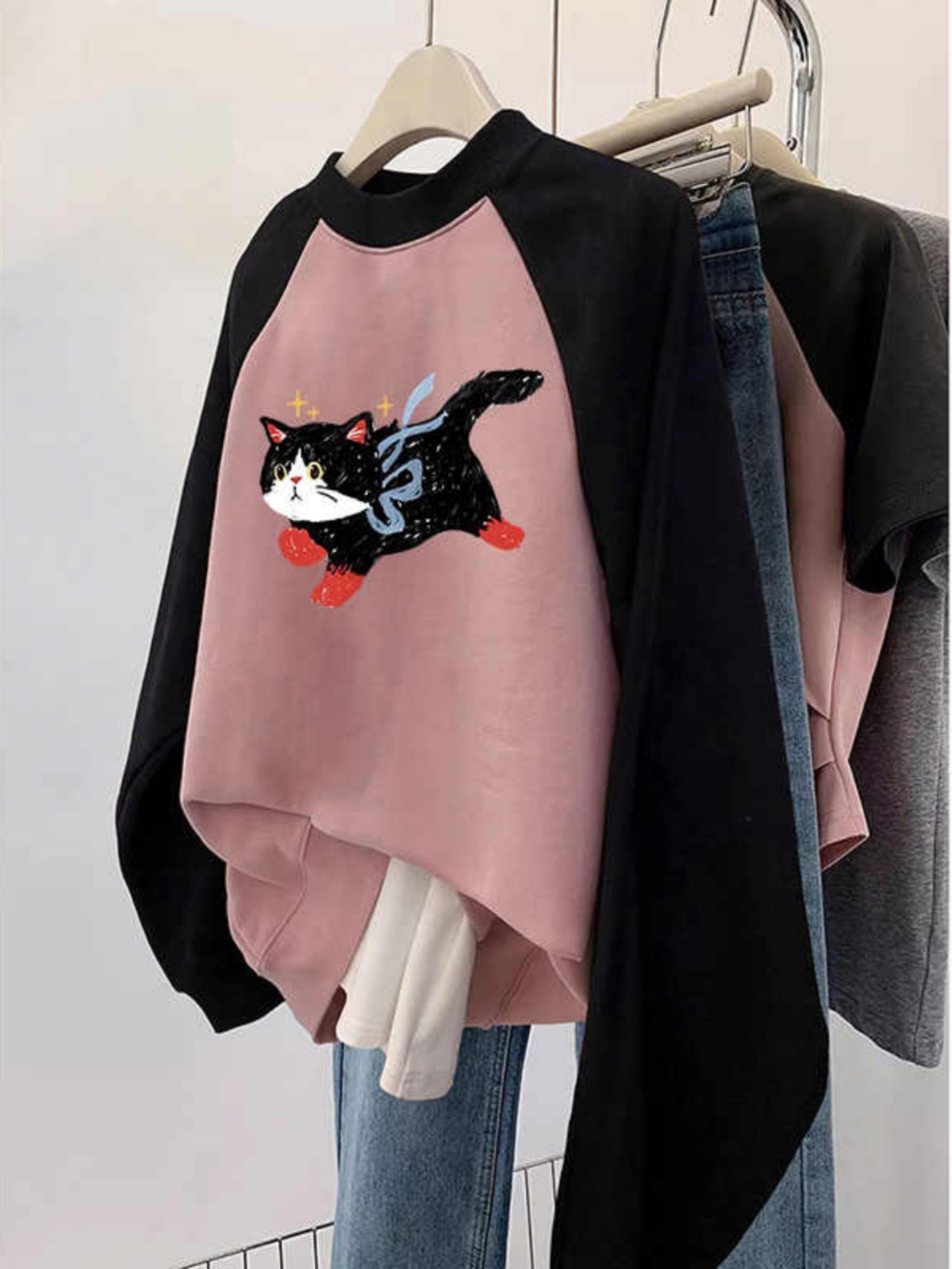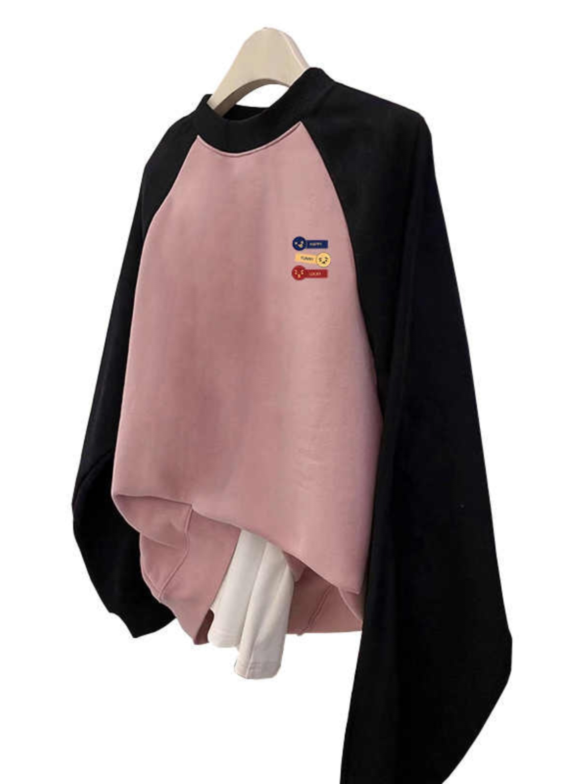 Plus Size Plus Size Ladies Raglan Sleeve round Neck Sweatshirt Women Fall and Winter Fleece-lined Oversize Slim Looking Tummy Hiding Loose Contrast Color