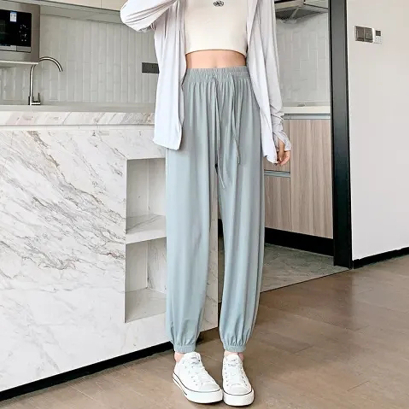 Plus Size Summer Ice Silk Quick-Drying Sports Pants Female 2024 New Arrival Thin Bloomers Loose Sun Protection Cool Casual Pants