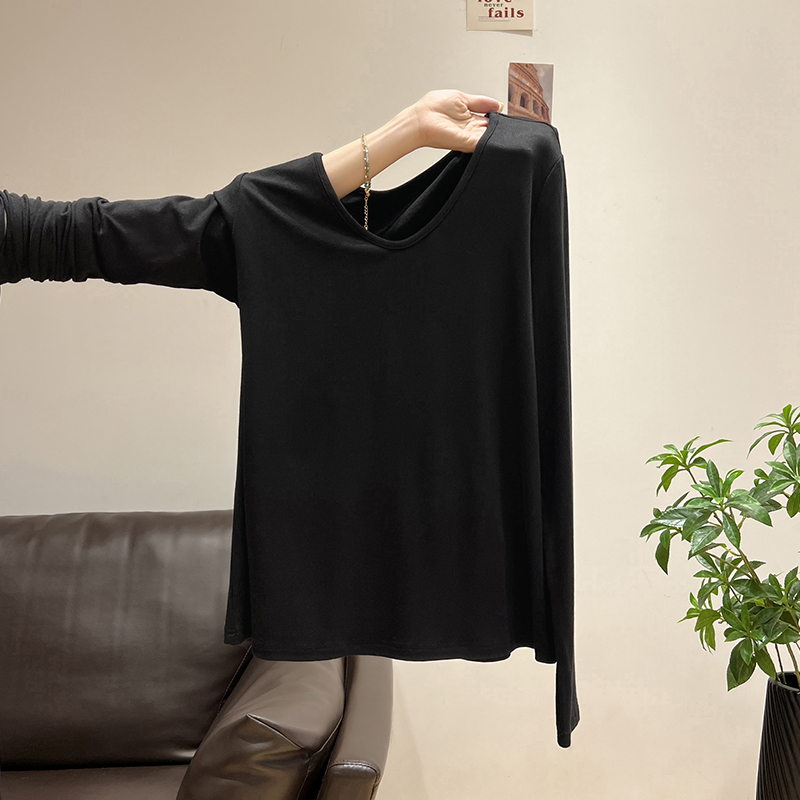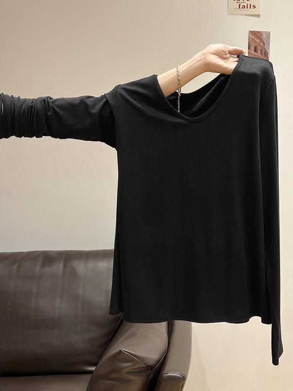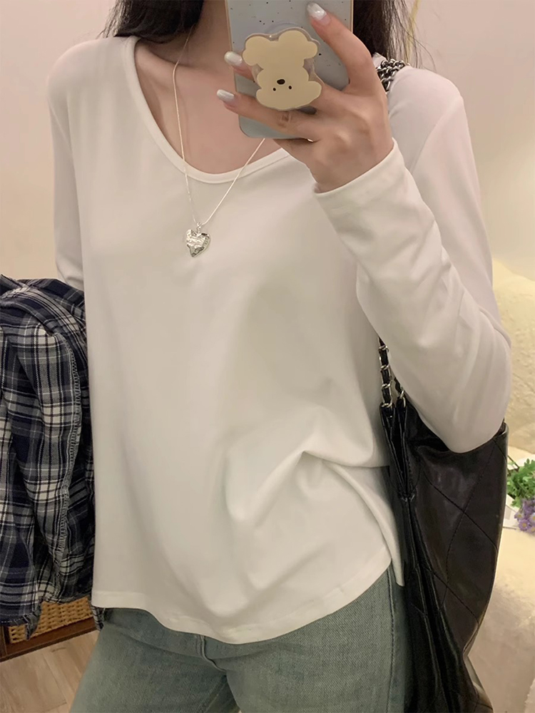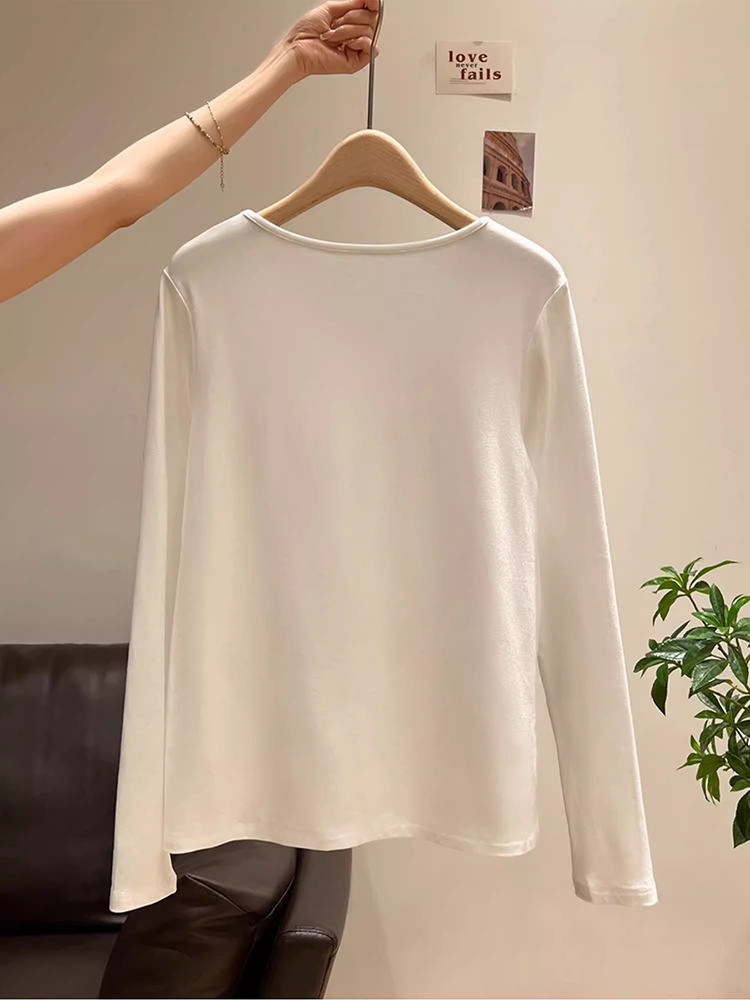 Women's Autumn/Winter Fleece-Lined White V-Neck Long-Sleeve Loose Thermal Inner Wear