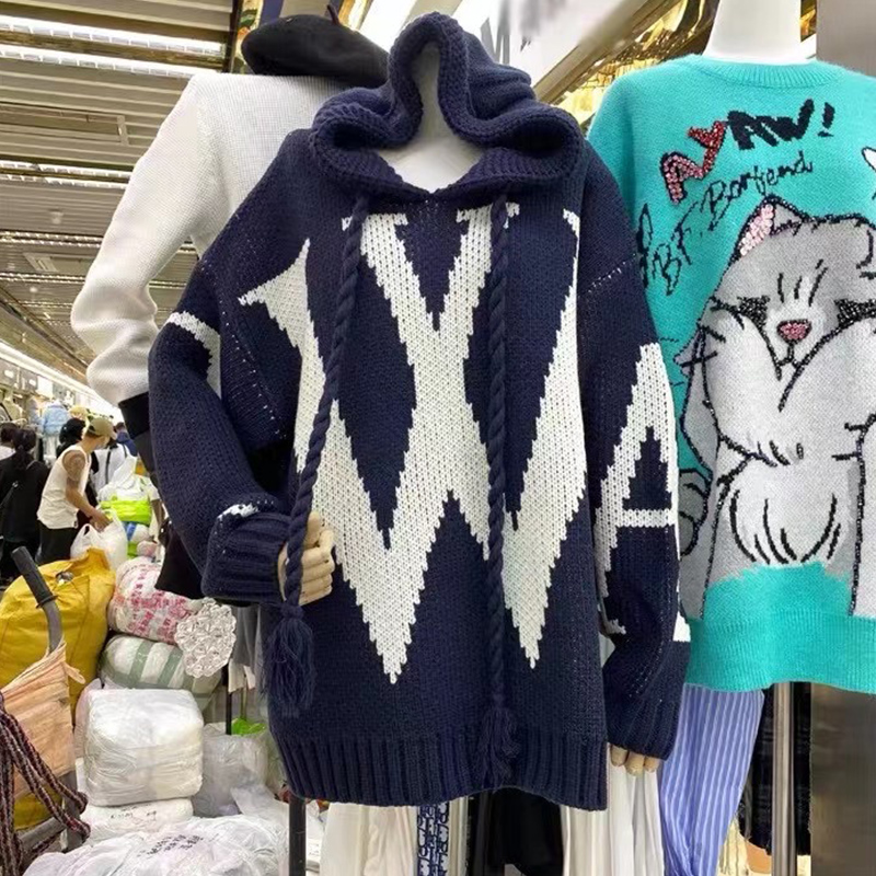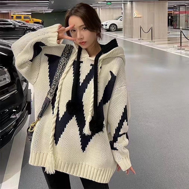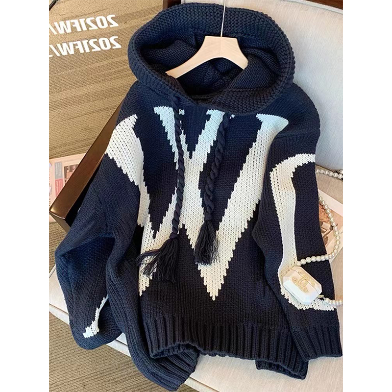 Plus Size Women's Clothing Spring and Autumn 2024 New Arrival Korean Style Sense of Design Knitwear Hooded Sweater Female Loose Casual Top