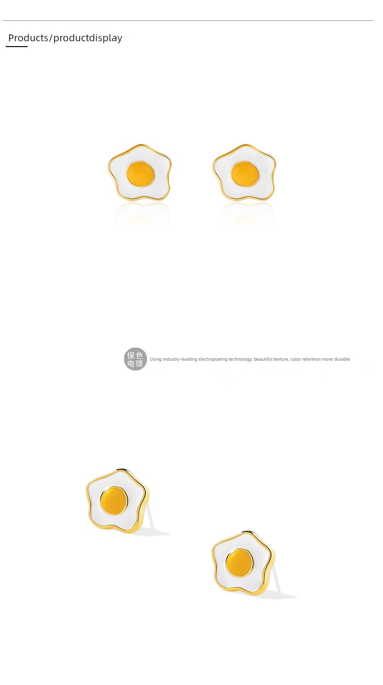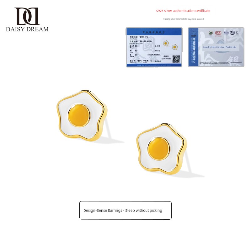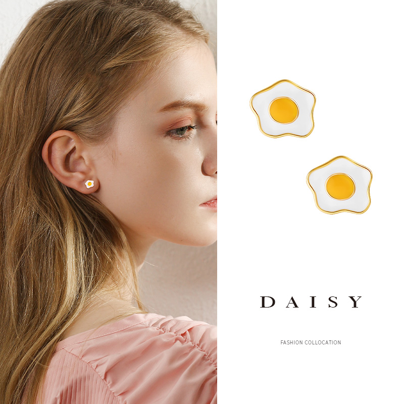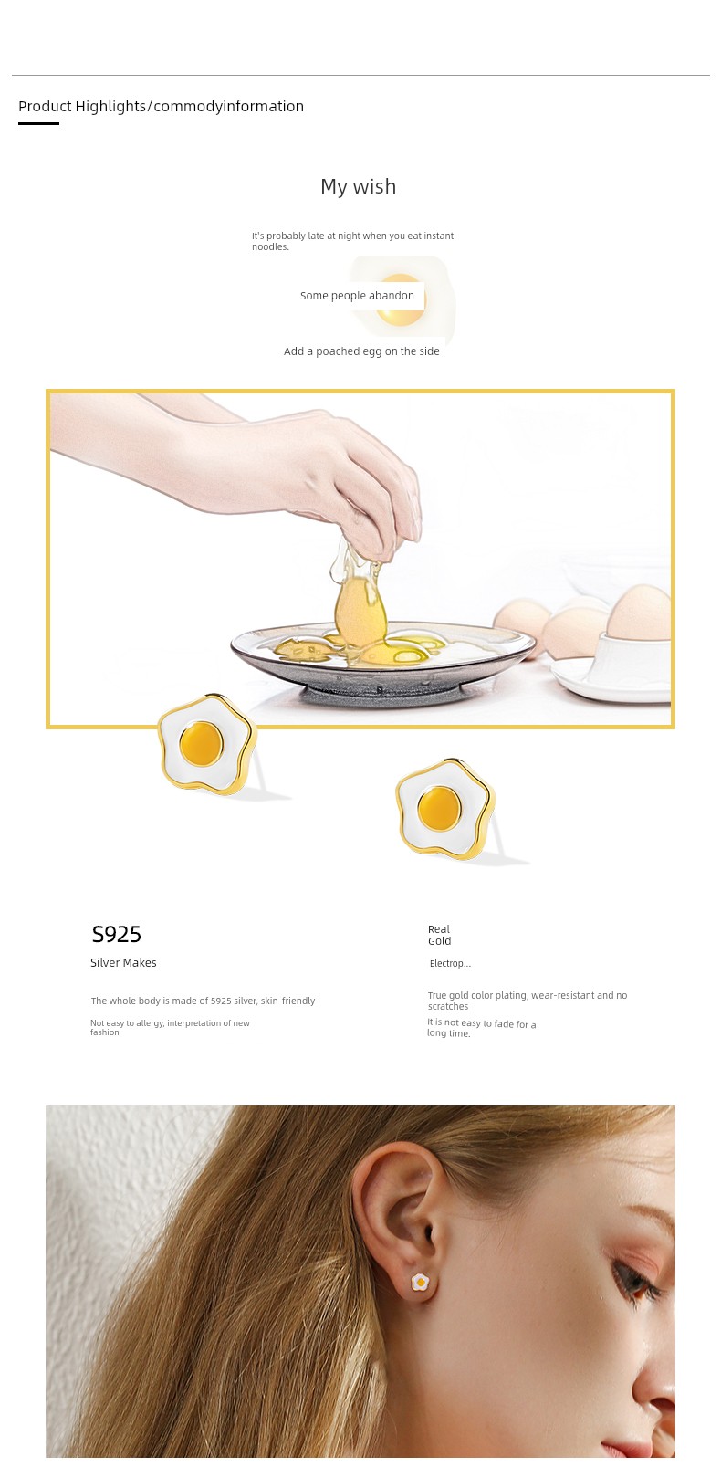 Poached Egg Sterling Silver Women's Unique Spring and Summer Korean Stud Earrings