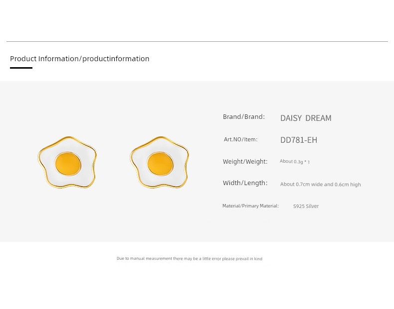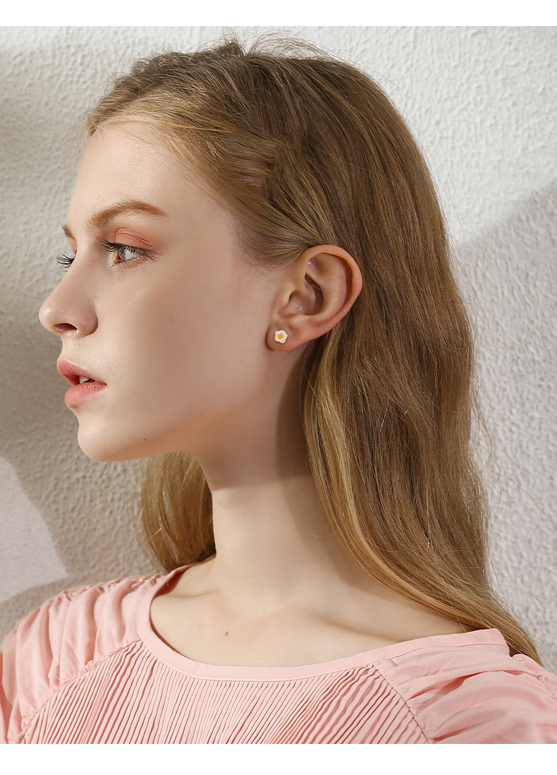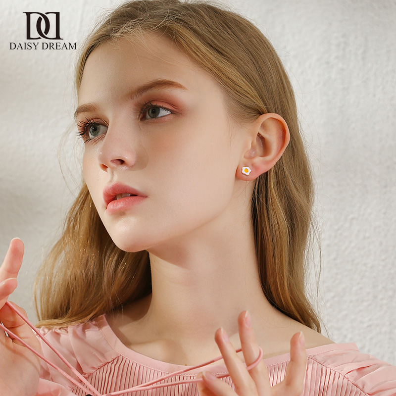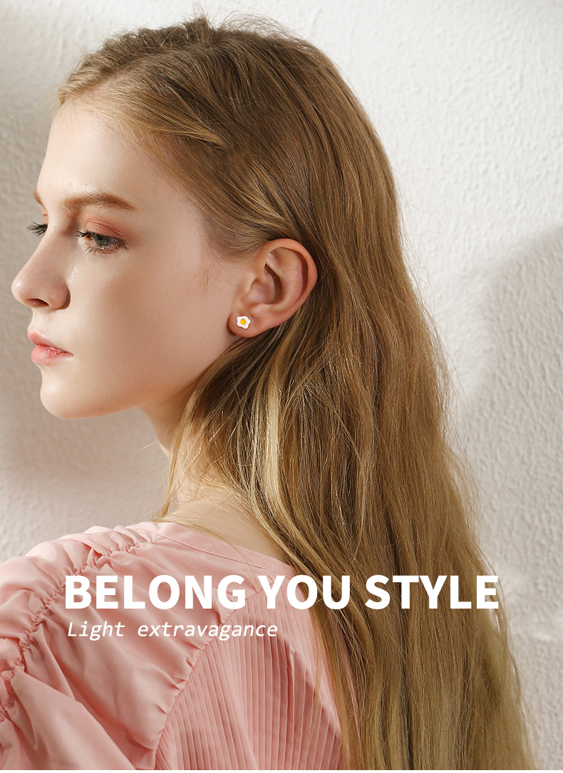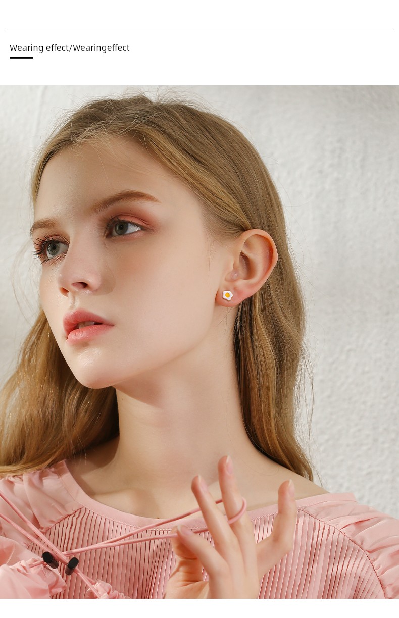 Poached Egg Sterling Silver Women's Unique Spring and Summer Korean Stud Earrings