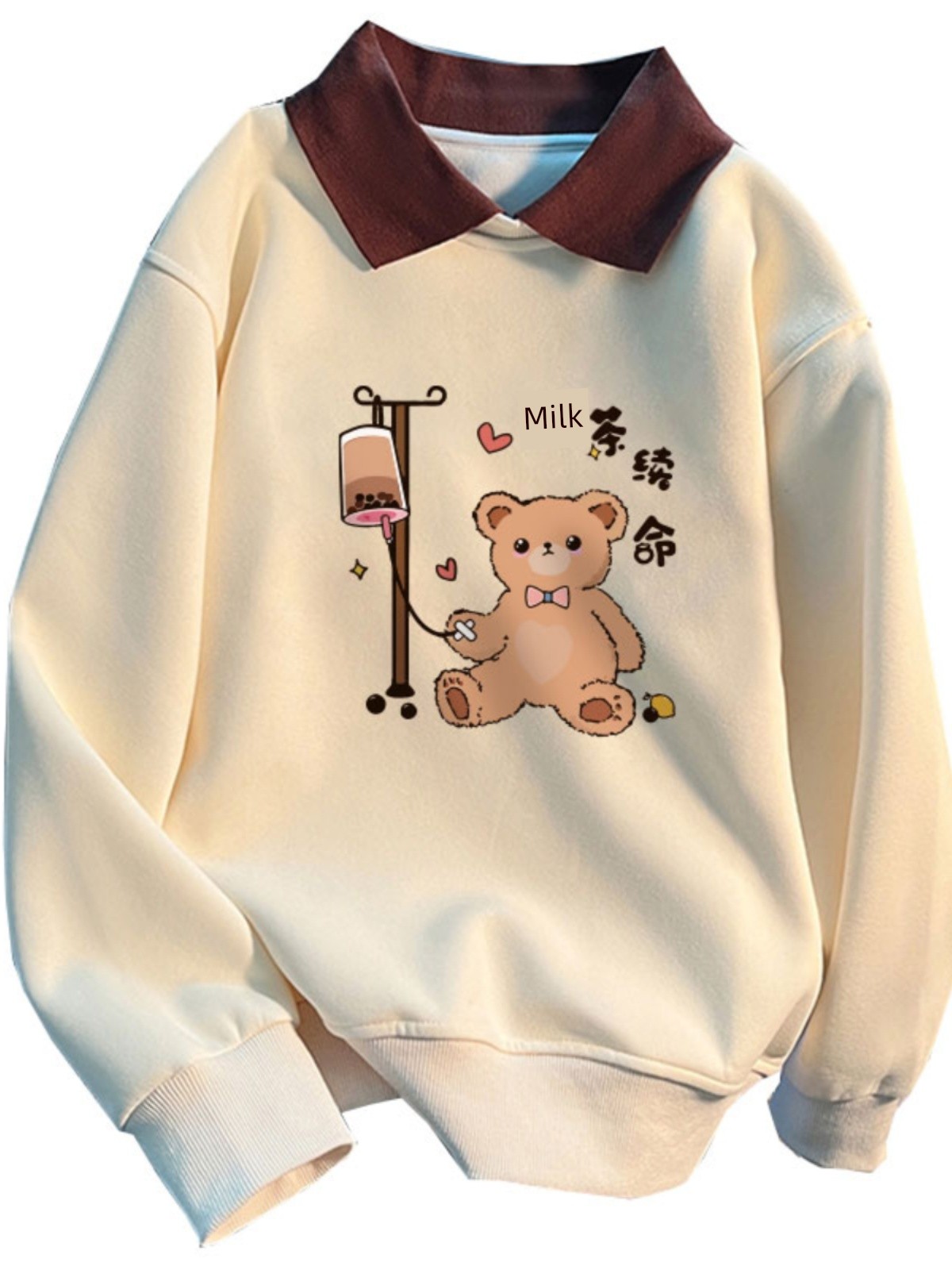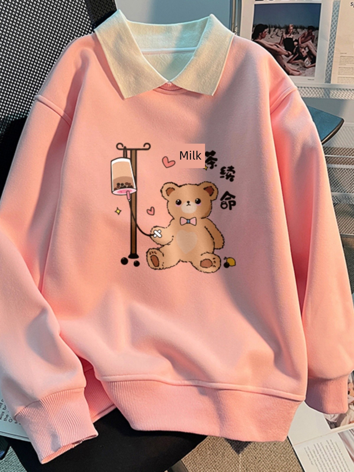 Polo Collar Idle Style Fall and Winter Velvet Padded Thickened Sweater Female 2025 New Arrival Plus Size Plus Size Ladies Bear Turn-down Collar Coat Tide