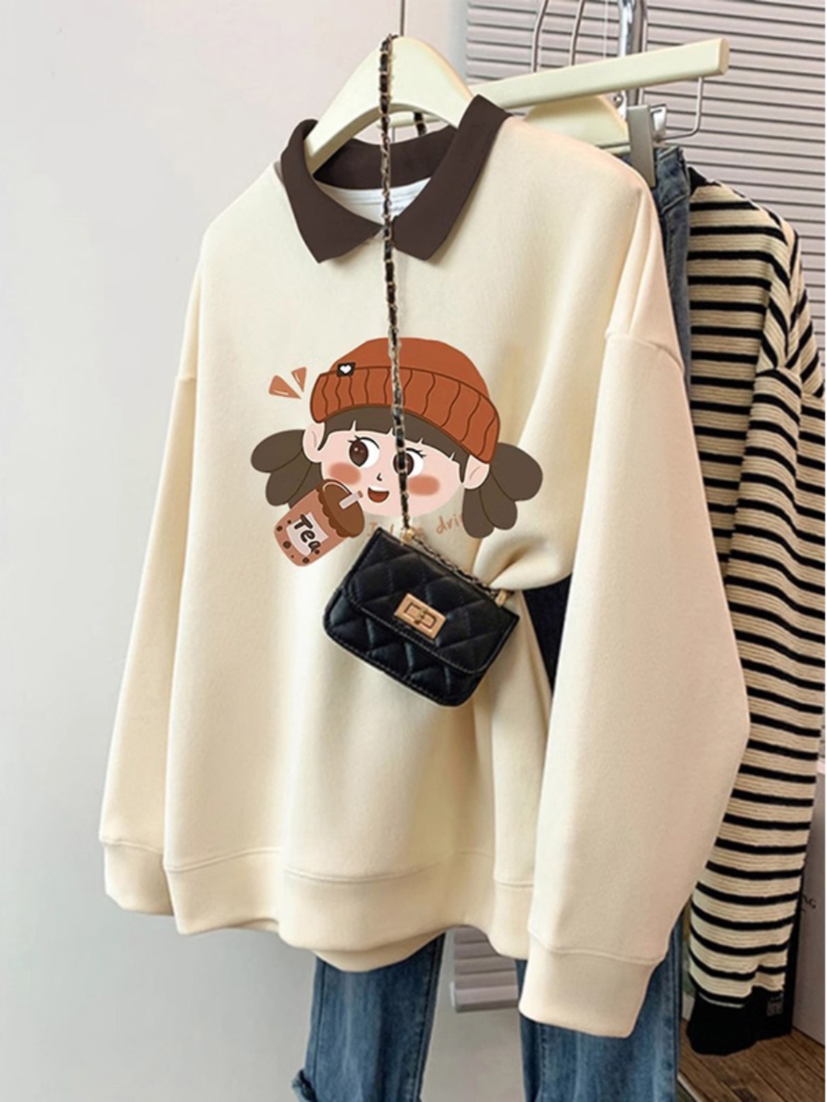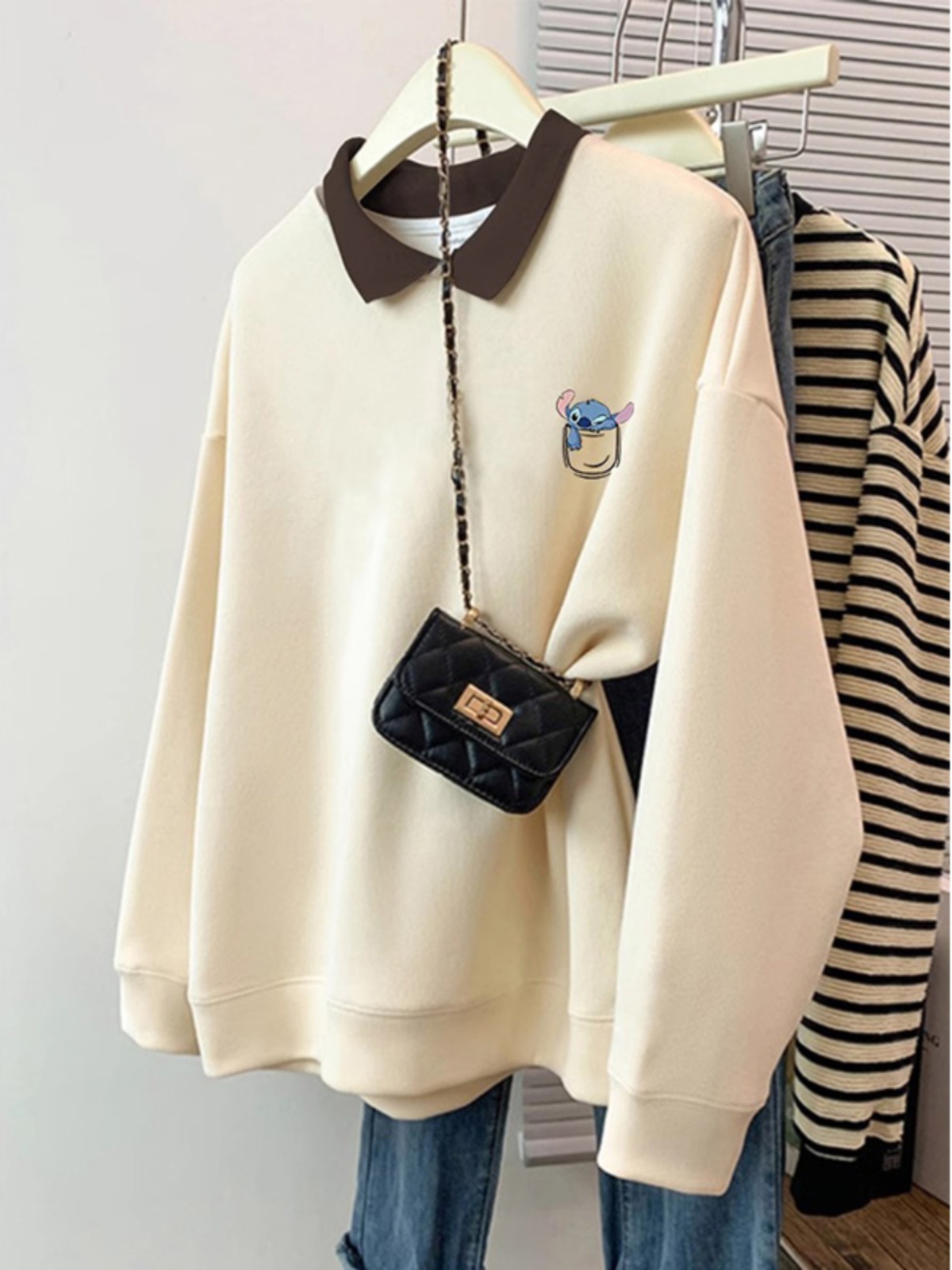 Polo Collar Plus Size Plus Size Ladies Idle Style Fall and Winter Velvet Padded Thickened Sweater Female 2025 New Arrival Best Selling Hooded Outwear Tide