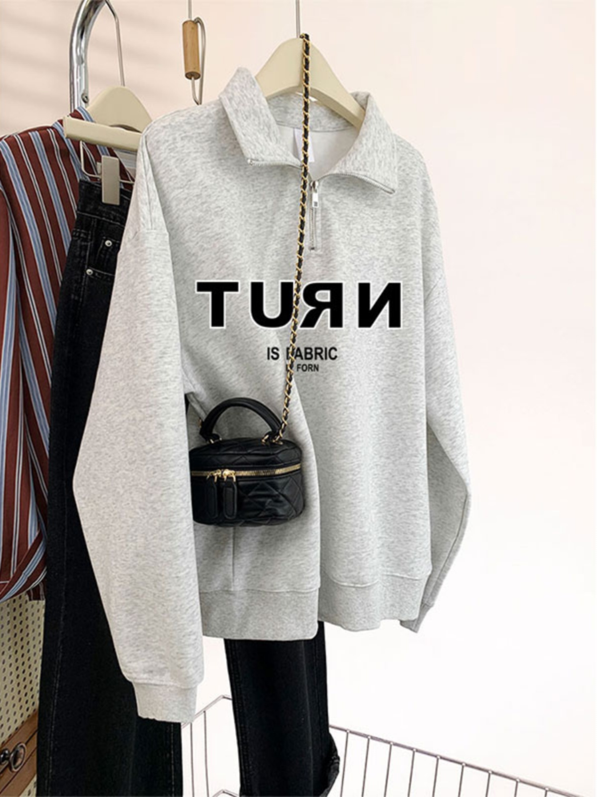 Polo Collar Spring & Fall 2025 New Arrival Sweater Top Loose Plus Size Plus Size Ladies American Retro Fall and Winter Fleece Padded Coat Tide