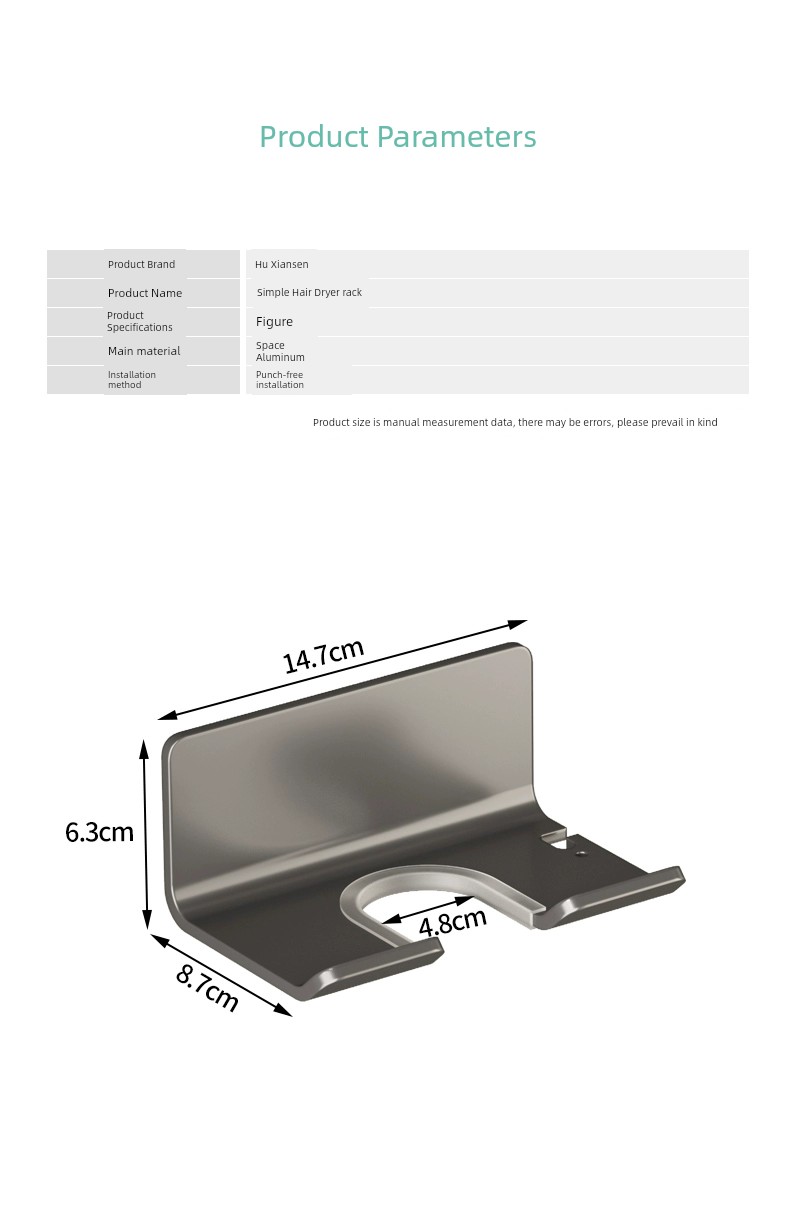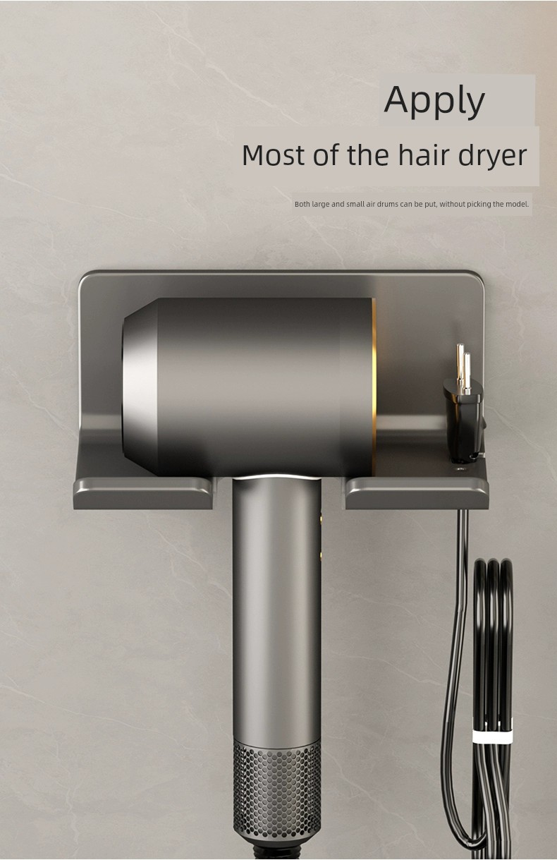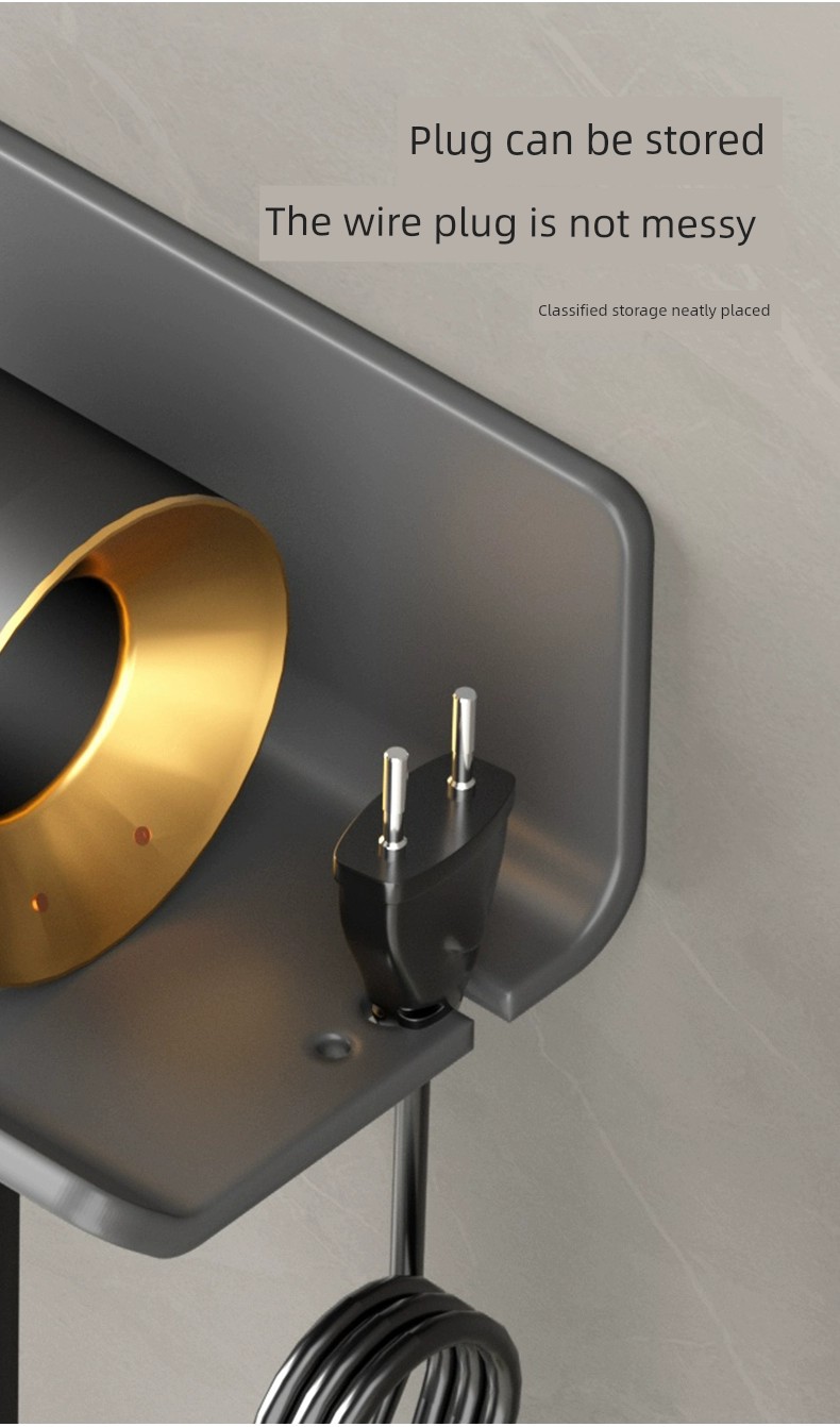 Punch-Free Bathroom Storage Wall Mount Hair Dryer Rack