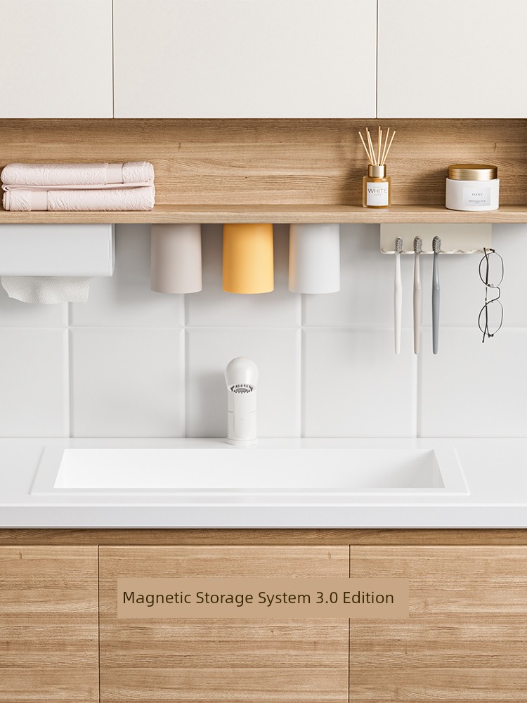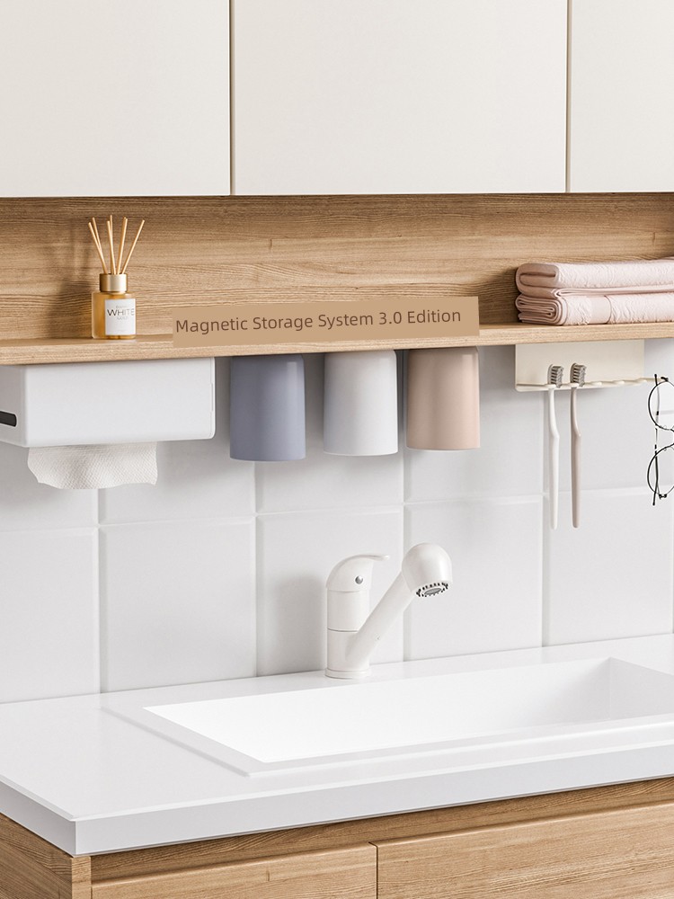 Punch-Free Draining Storage Rack Gargle Cup Wall-Mounted Toothbrush Cup Mirror Cabinet Magnetic Toothbrush Holder for a Family of Four