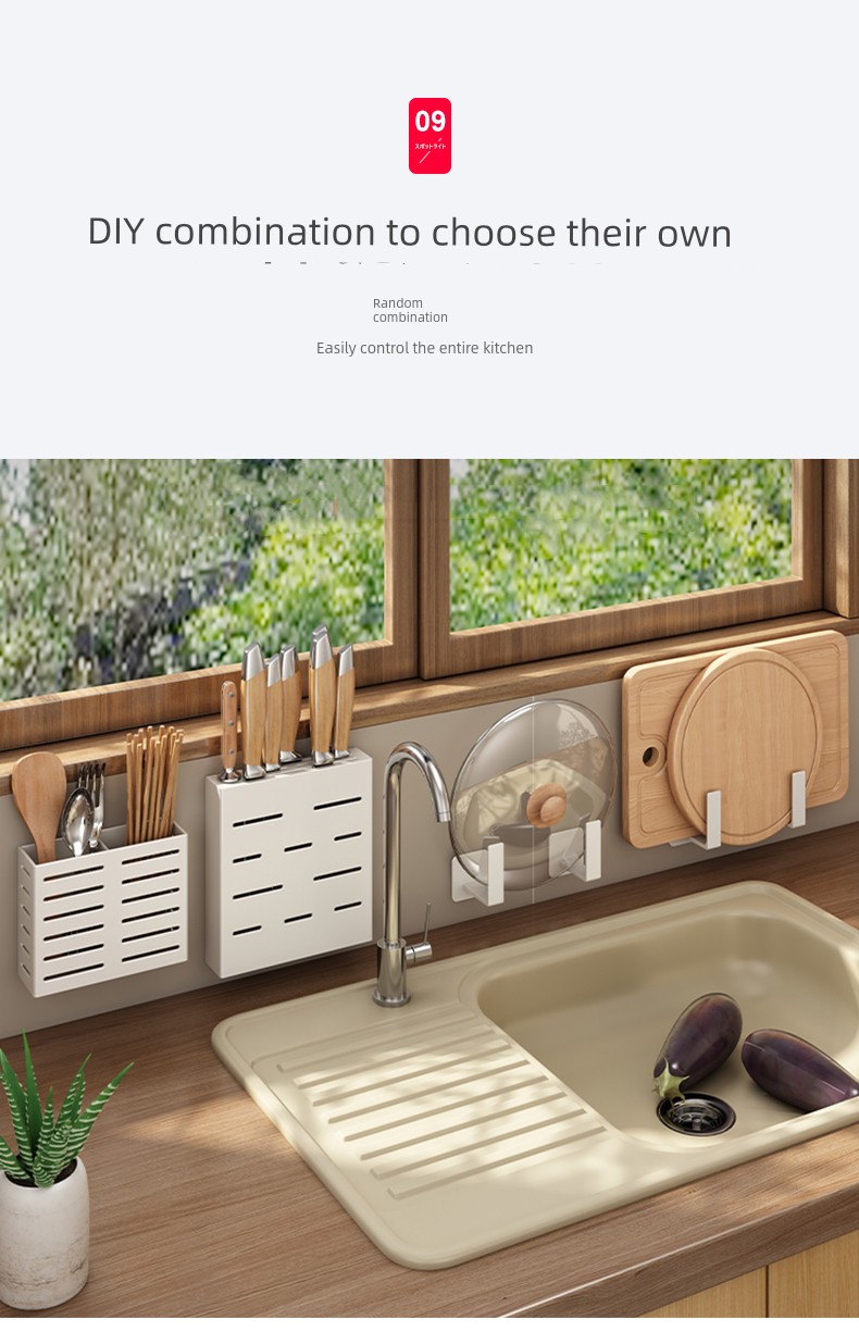 Punch-Free Wall-Mounted Chopsticks Holder Cutting Board Kitchen Rack