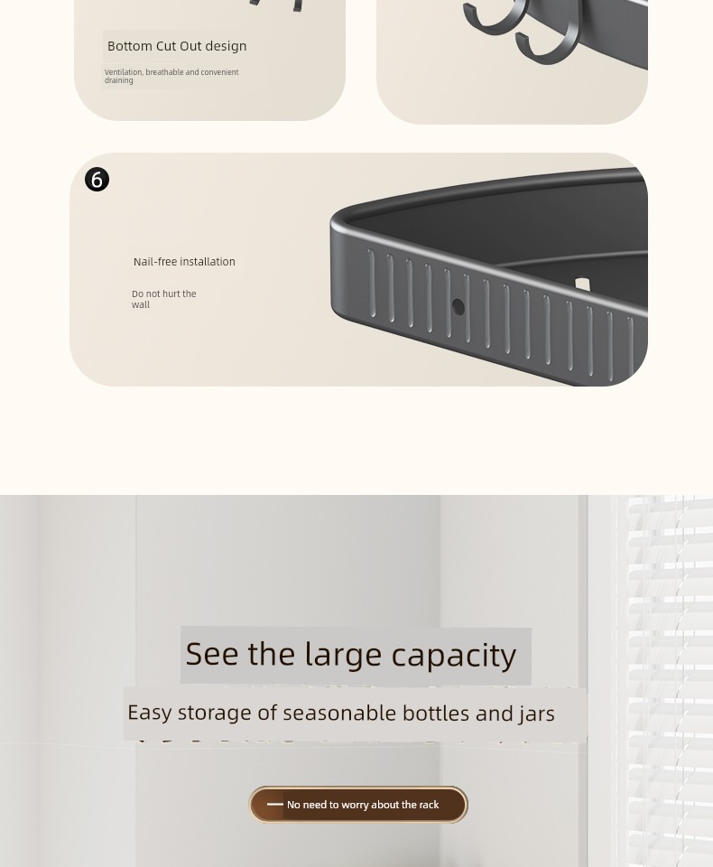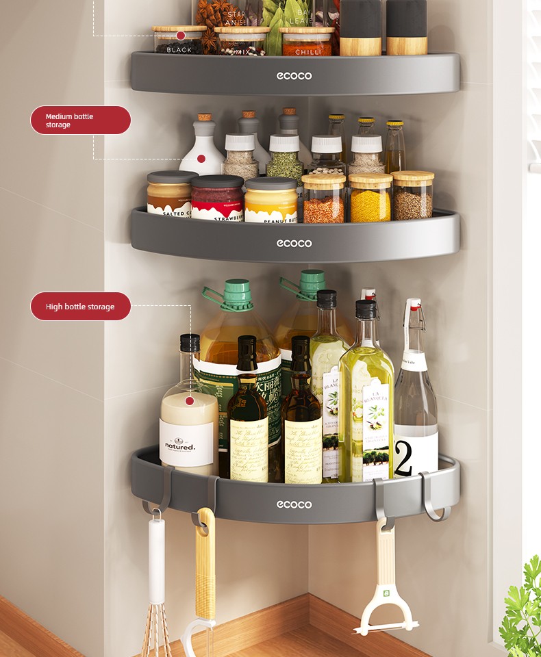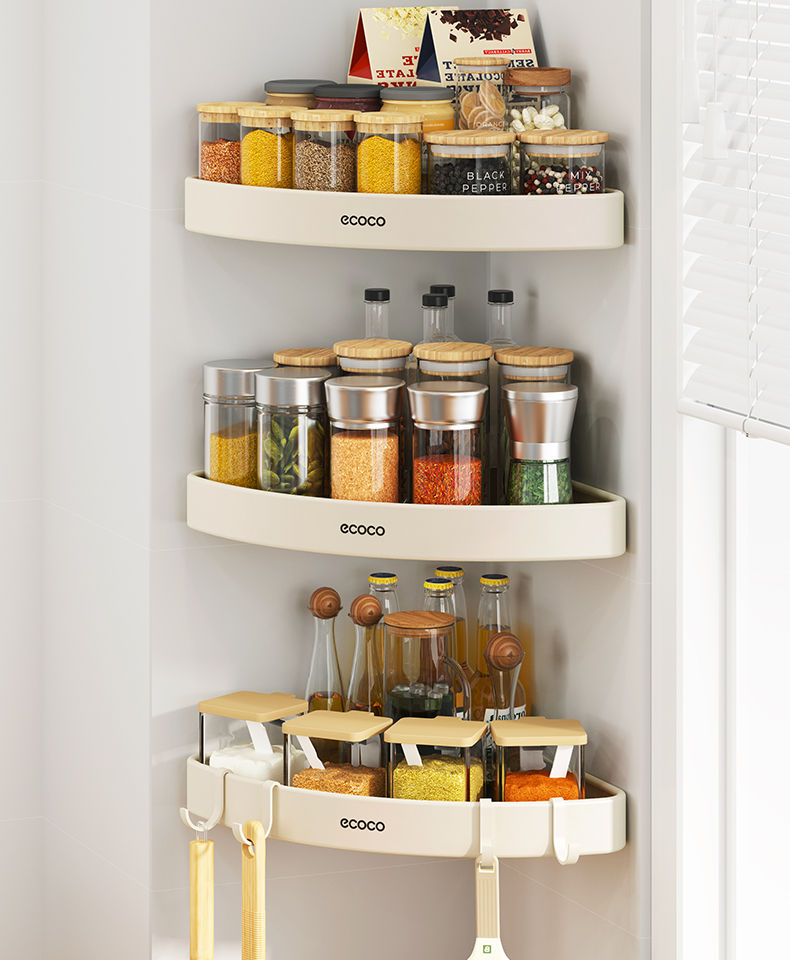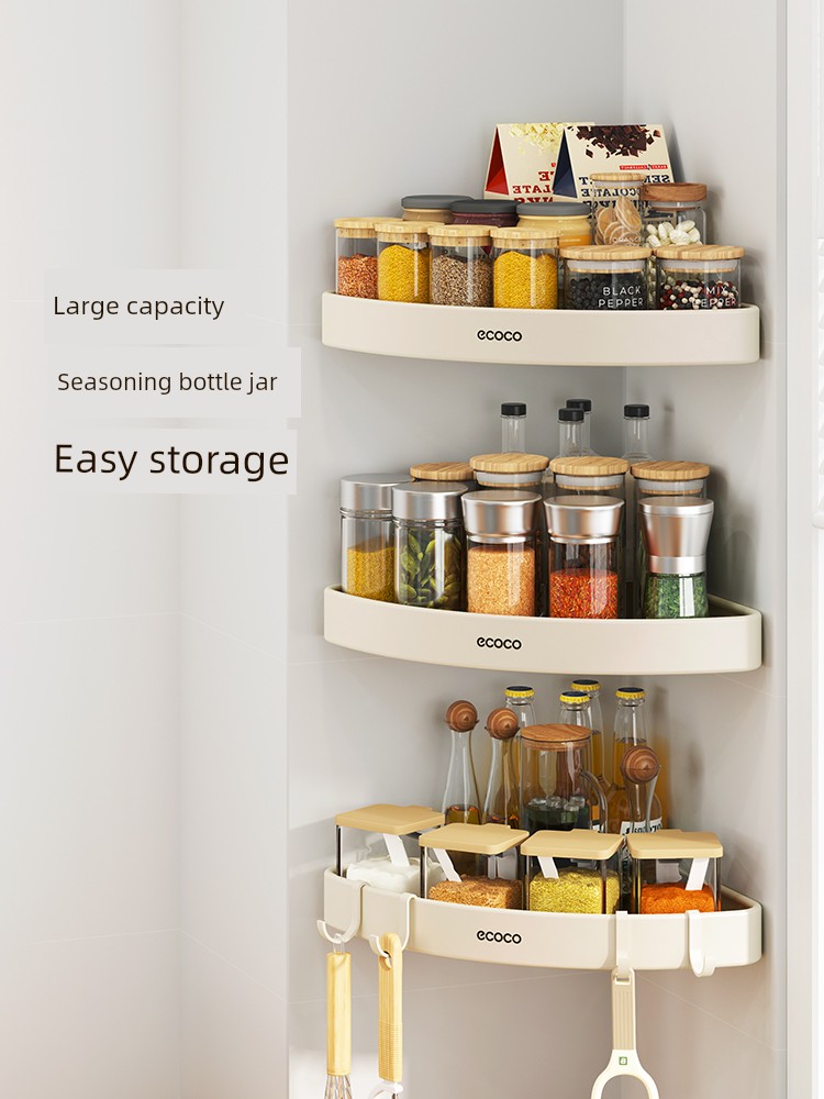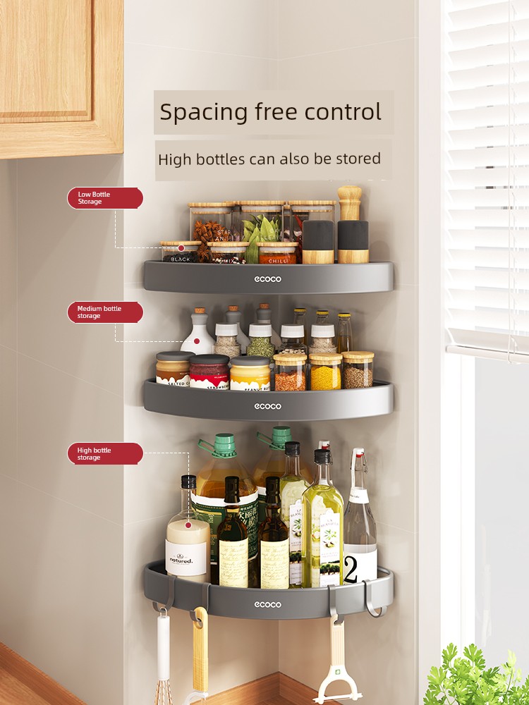 Punch-Free Wall-Mounted Corner Seasoning Jar Kitchen Storage Rack