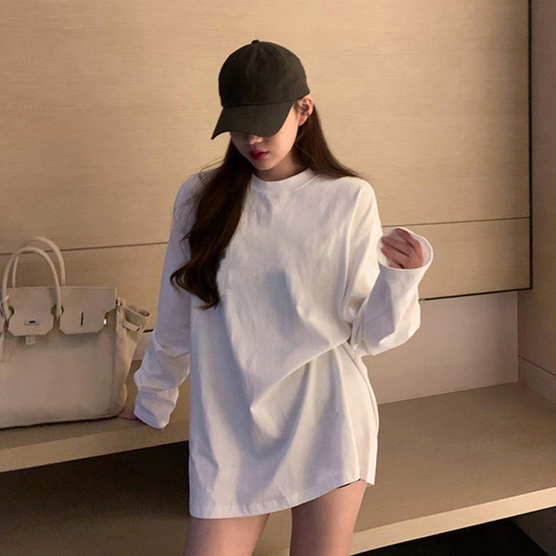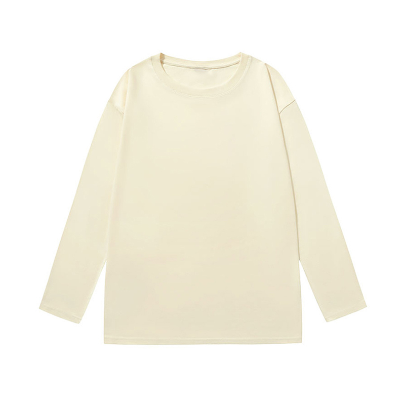 Pure Cotton 2024 Autumn New round Neck Pure Color Long Sleeves T-Shirt Bottoming Shirt Outdoor All-Matching Ins Women's Loose Tops