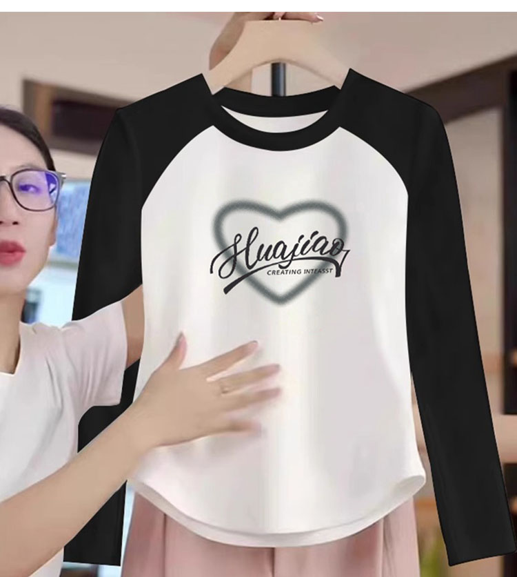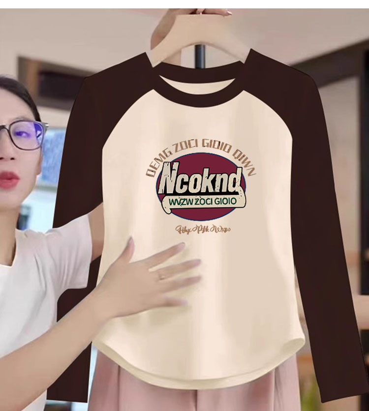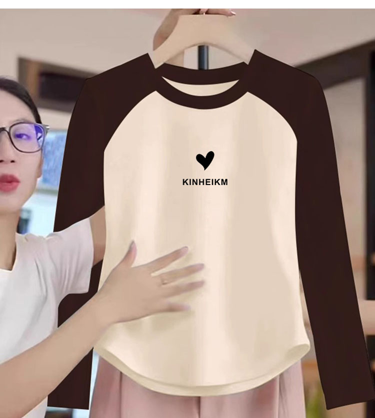 Pure Cotton Asymmetrical Color Contrast Long Sleeve T-shirt Women's Base Shirt Shoulder Outer Wear Inner Wear Small Slimming Short Top