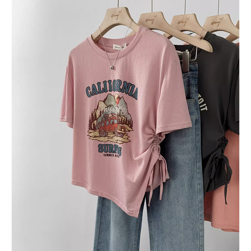 Pure Cotton Asymmetrical Shoulder Short Sleeve T-Shirt Women's Summer Plus Size New Design Sense Niche Style Slim Looking Sexy Tops Ins