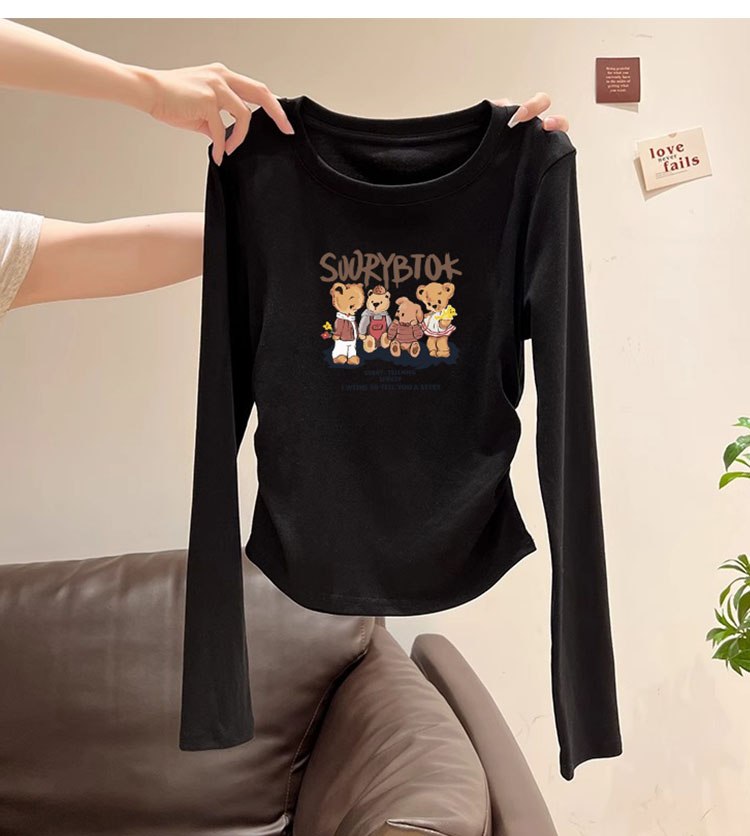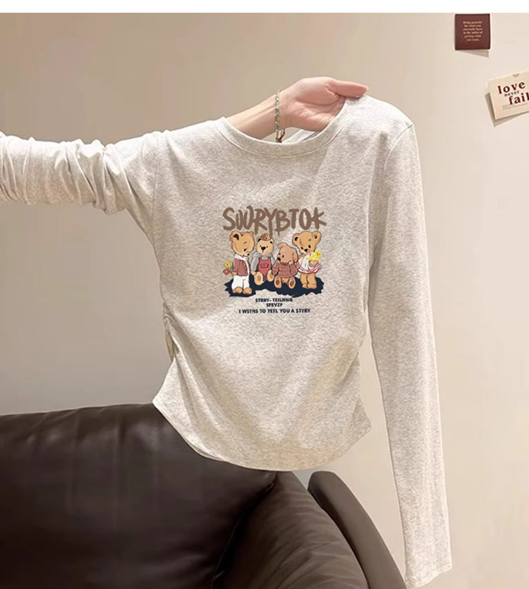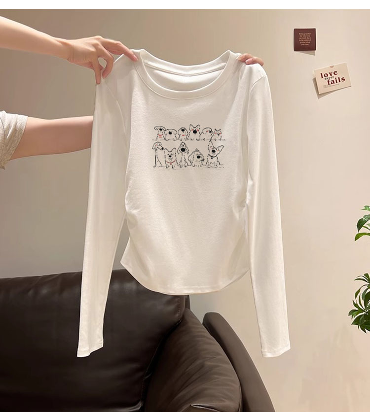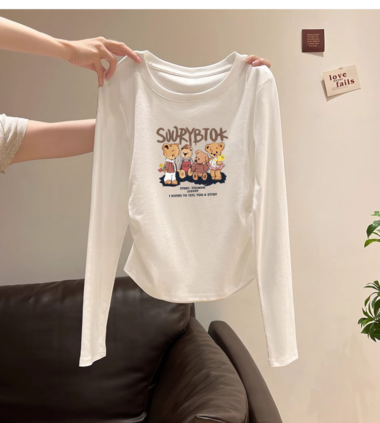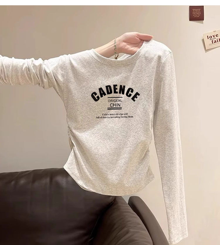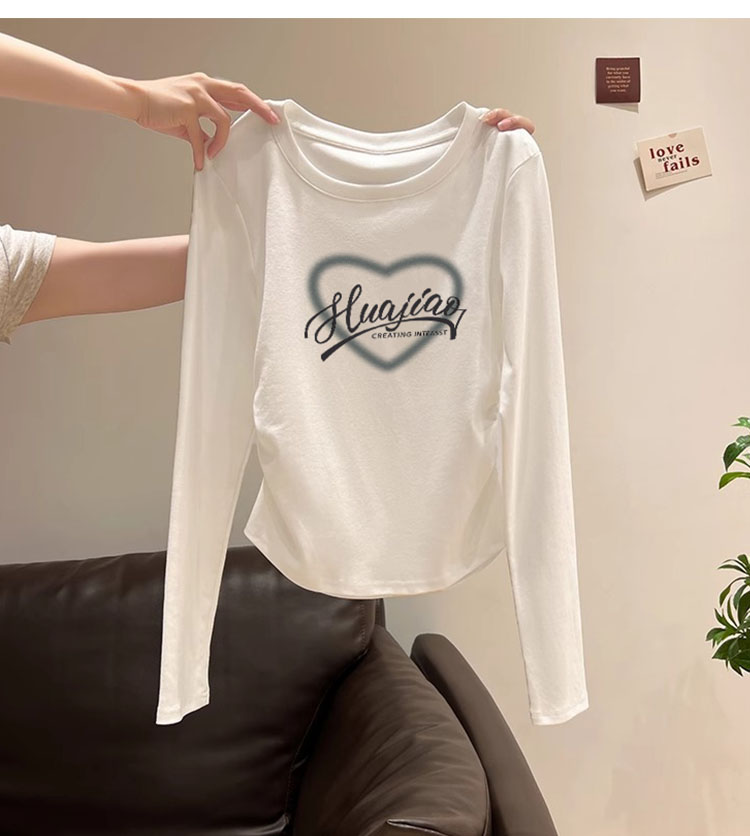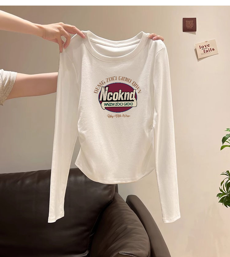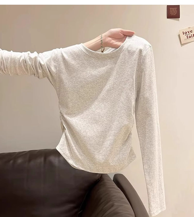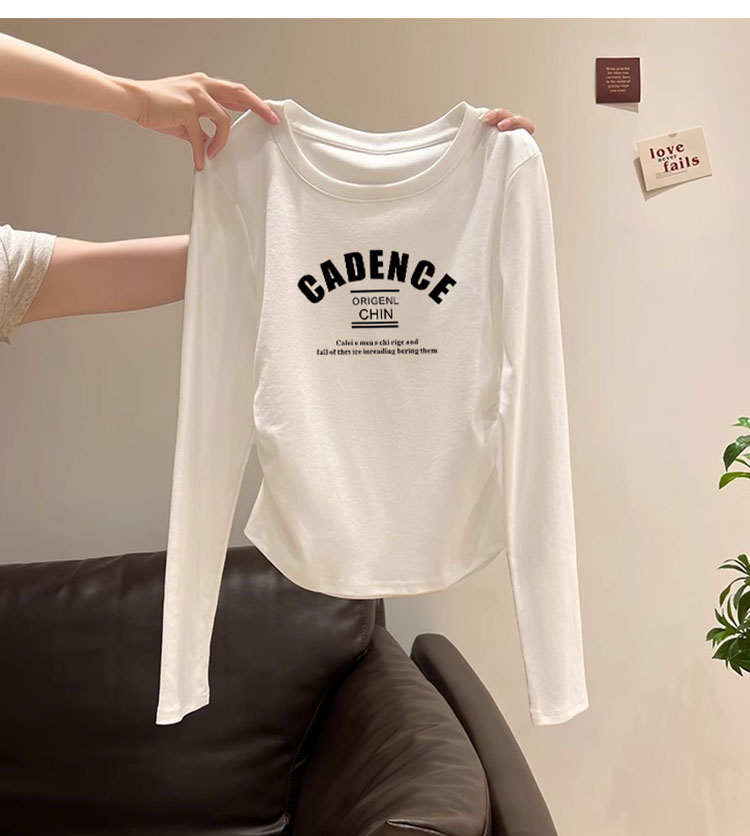 Pure Cotton Long Sleeves Shoulder T-Shirt Women's Clothing Early Spring New Arrival Small Short High Waist Peplum Top Inner Bottoming Shirt