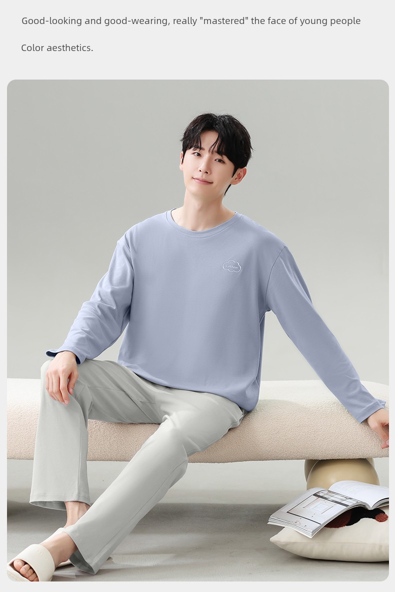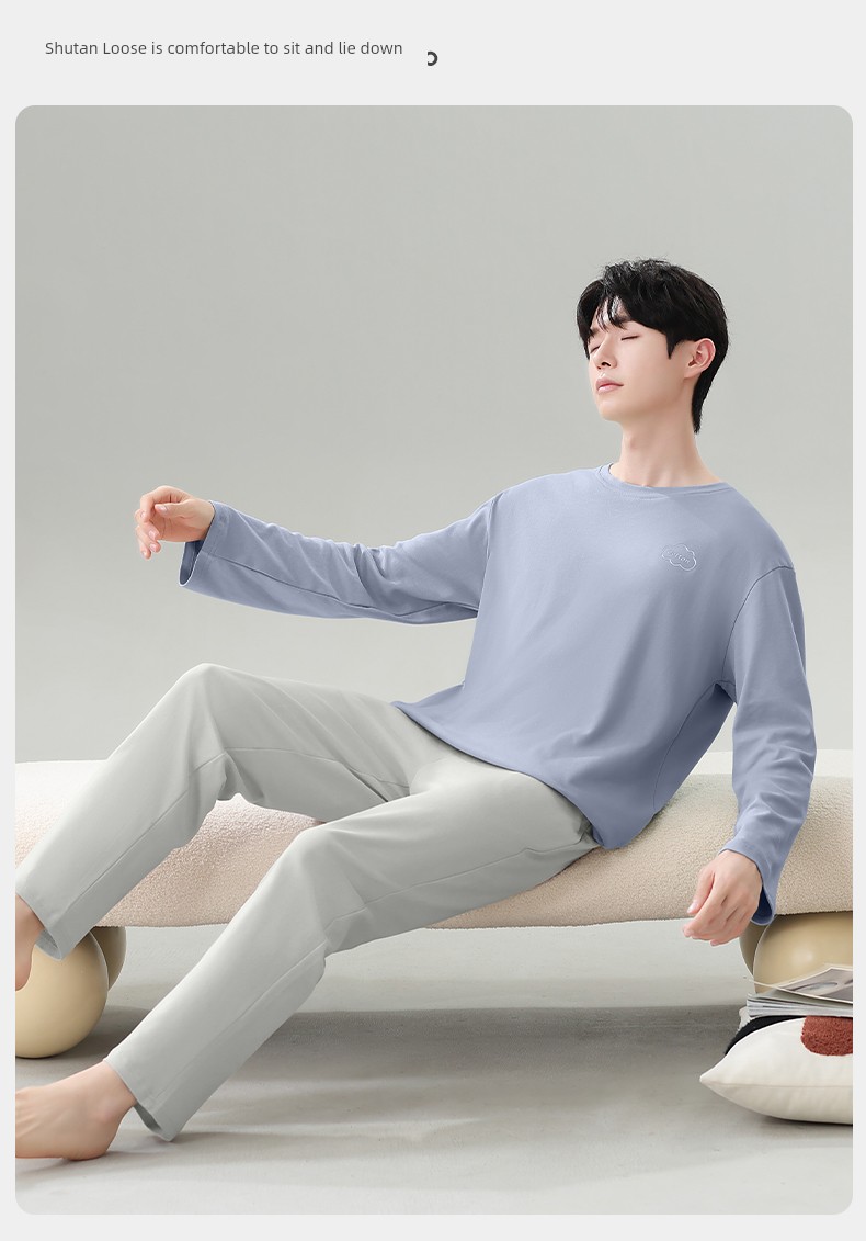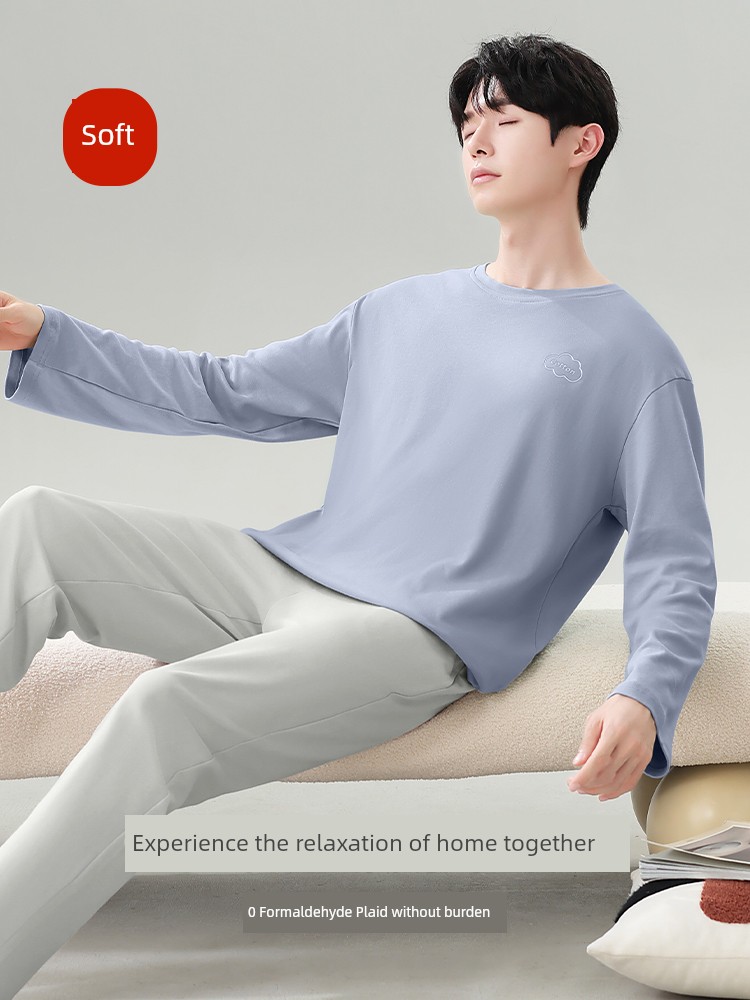 Pure Cotton Pajamas Men's Spring and Autumn 2025 Spring New Arrival All Year Round Neutral Homewear Plus Size Long Sleeves Autumn and Winter Suit