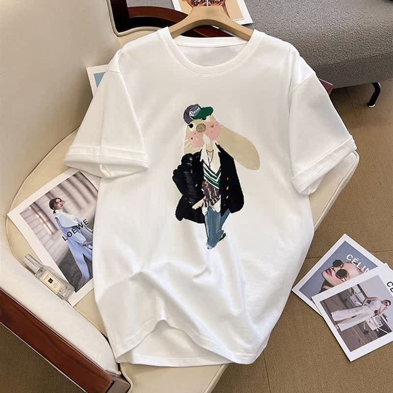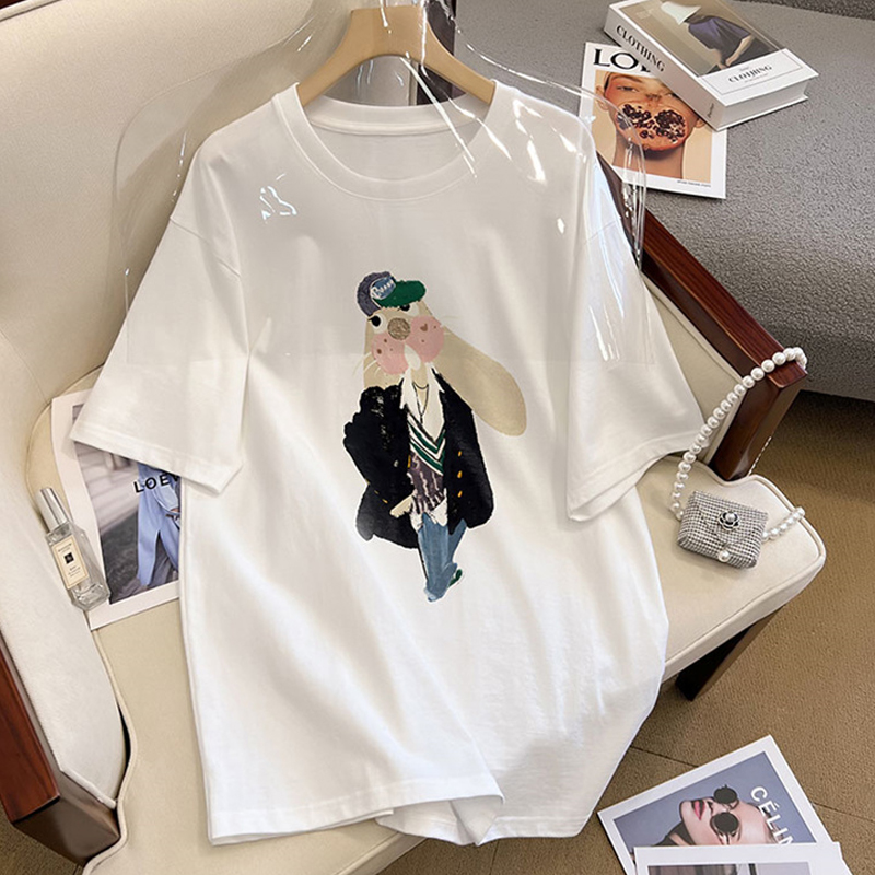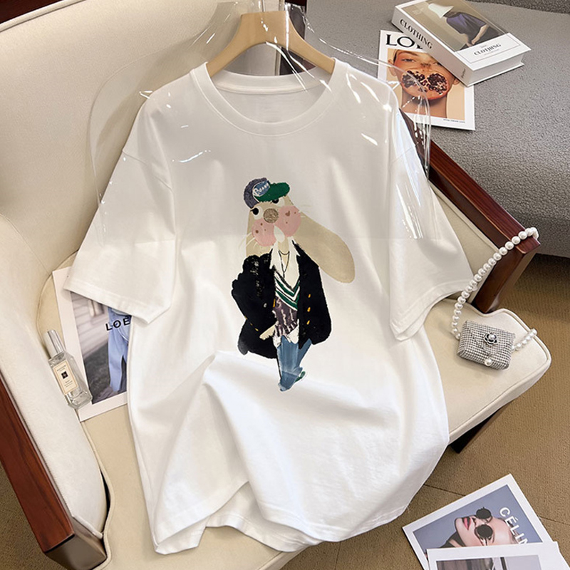 Pure Cotton plus Size Women's Clothes Short Sleeve T-shirt Summer 2024 New Arrival Fashion All-Match Chubby Girl Slimming Slim Fit Anti-Aging Top
