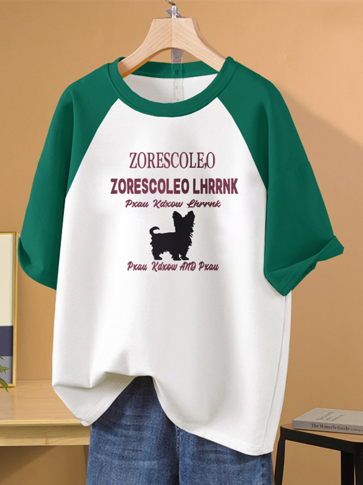 Pure Cotton Raglan Sleeve Short Sleeve T-Shirt Women's 2025 Summer New Arrival Contrast Color Plus Size Ladies Loose Slim Looking T-shirt That Hides Your Belly T-Shirt Top Clothes