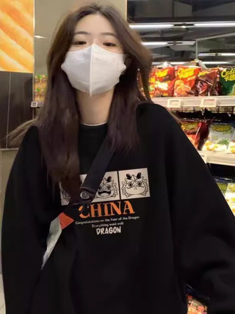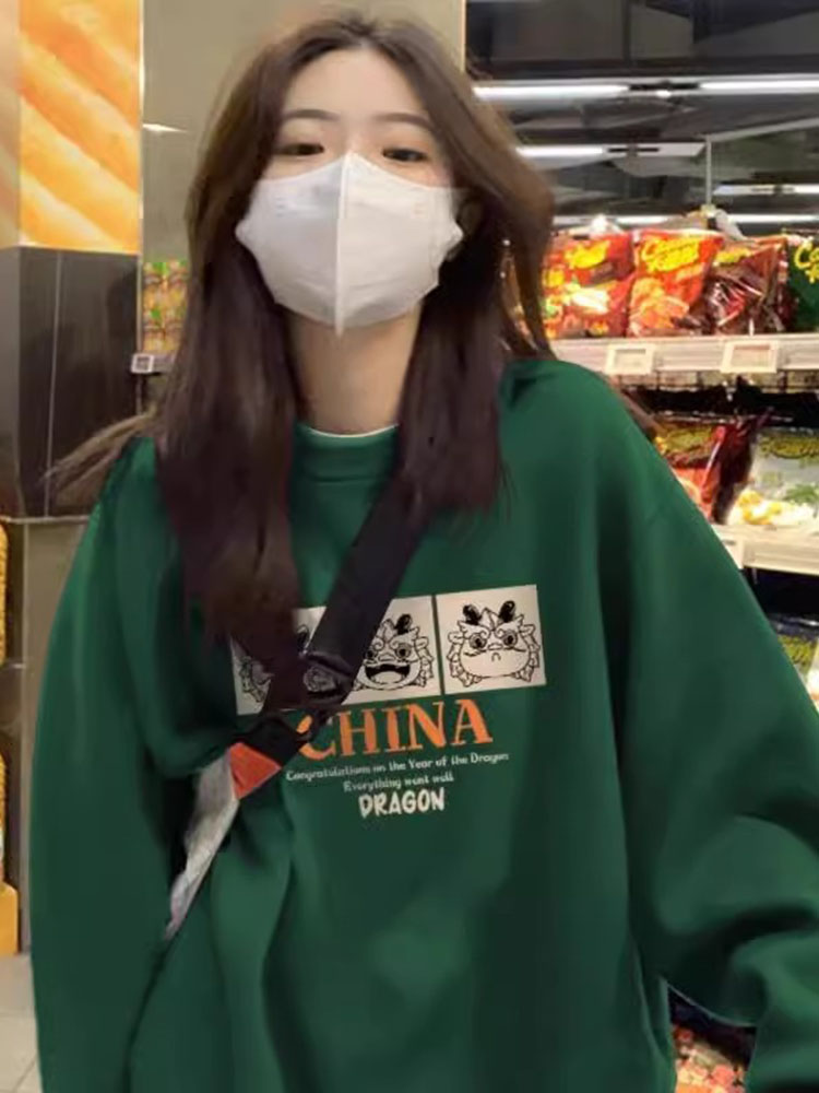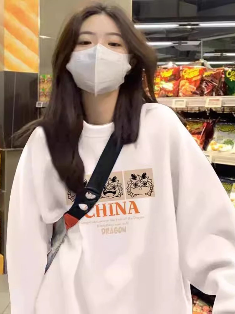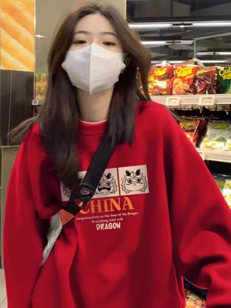 Pure Cotton Red round-Neck Sweatshirt Female Spring & Fall 2025 Snake Year Birth Year Clothes Fleece-lined Thickened Western Style Couple Coat