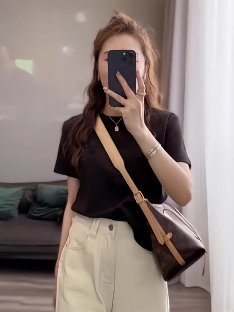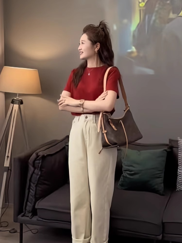 Pure Cotton Red Shoulder Short Sleeve T-Shirt Women 2025 New Arrival Summer Loose Casual Korean Style Chic Chic Tops Women