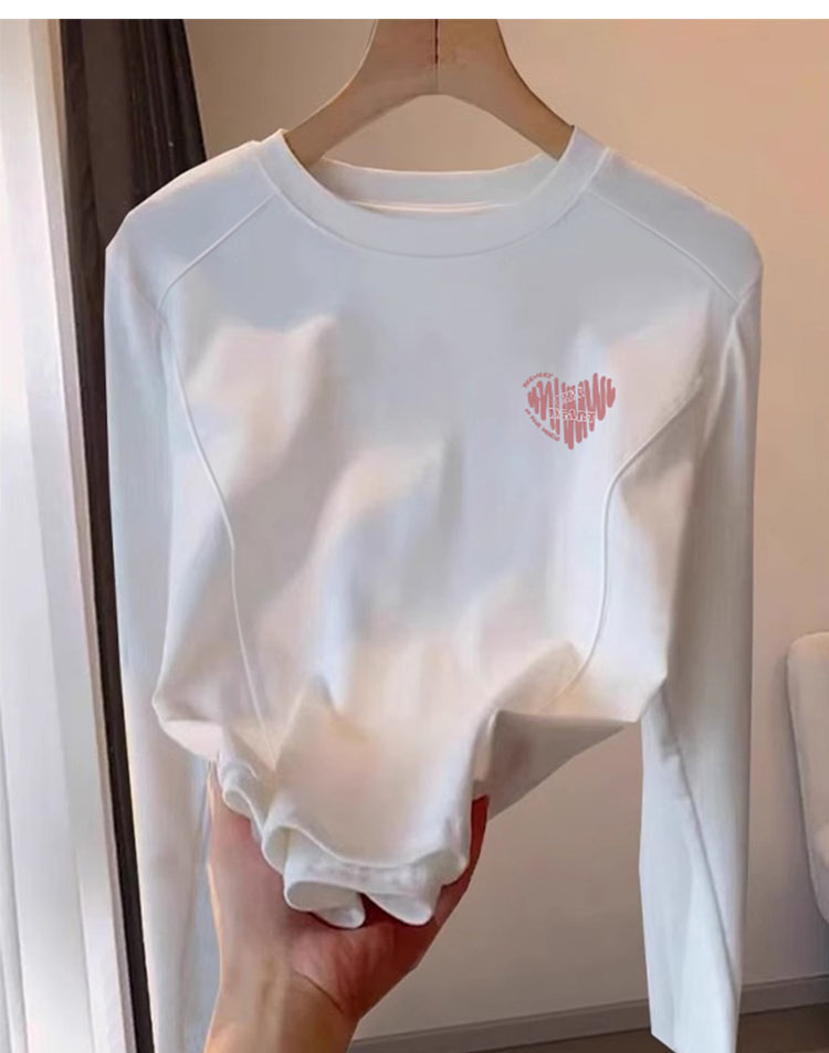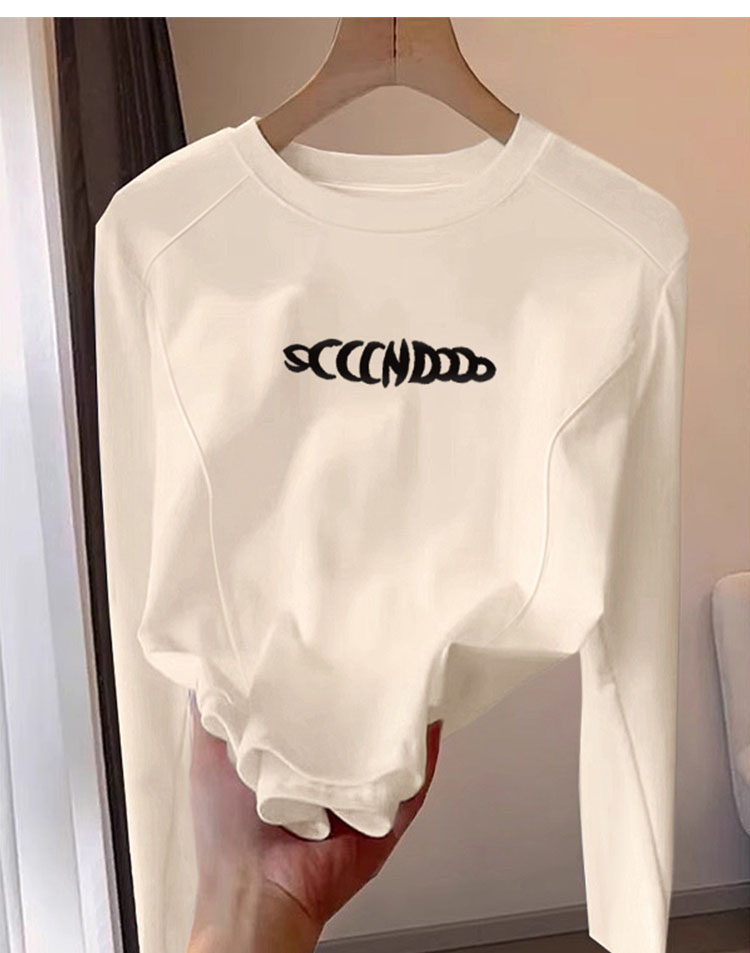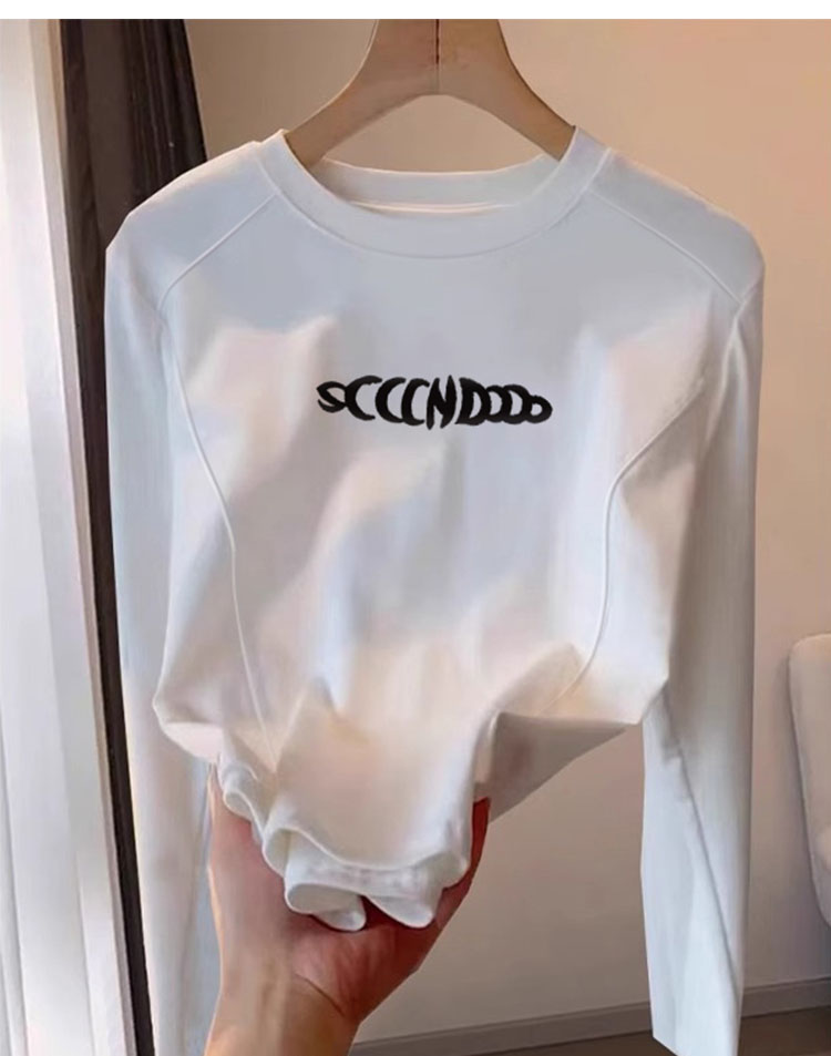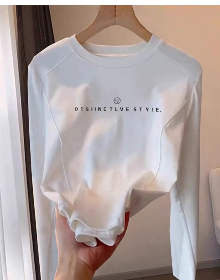 Pure Cotton Shoulder Long Sleeves T-Shirt Women's Spring & Fall Stylish Fishbone Small Slim Looking White Short Tops Bottoming Shirt