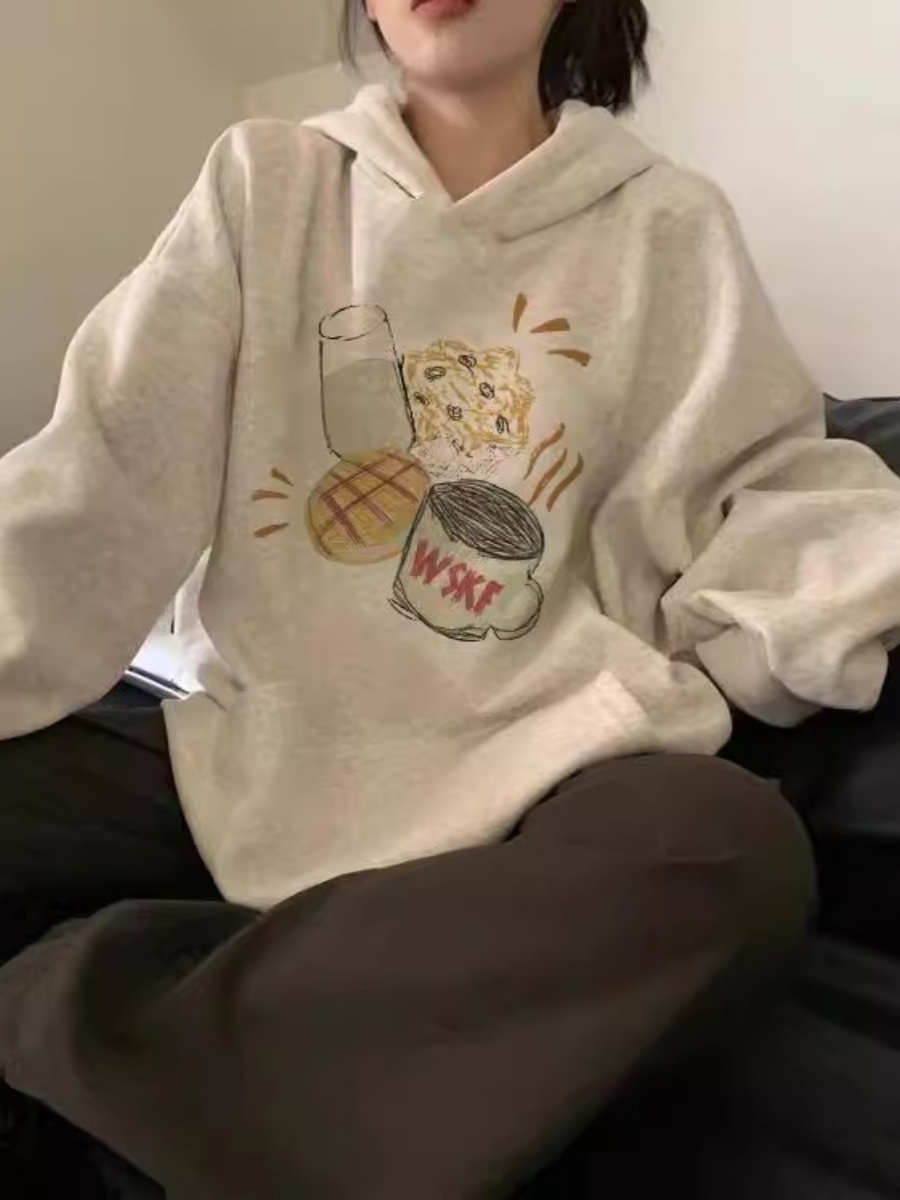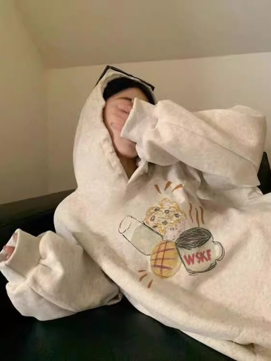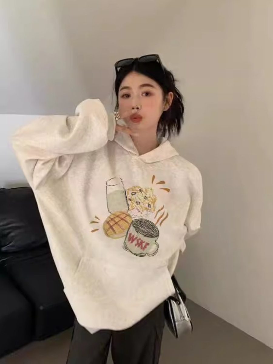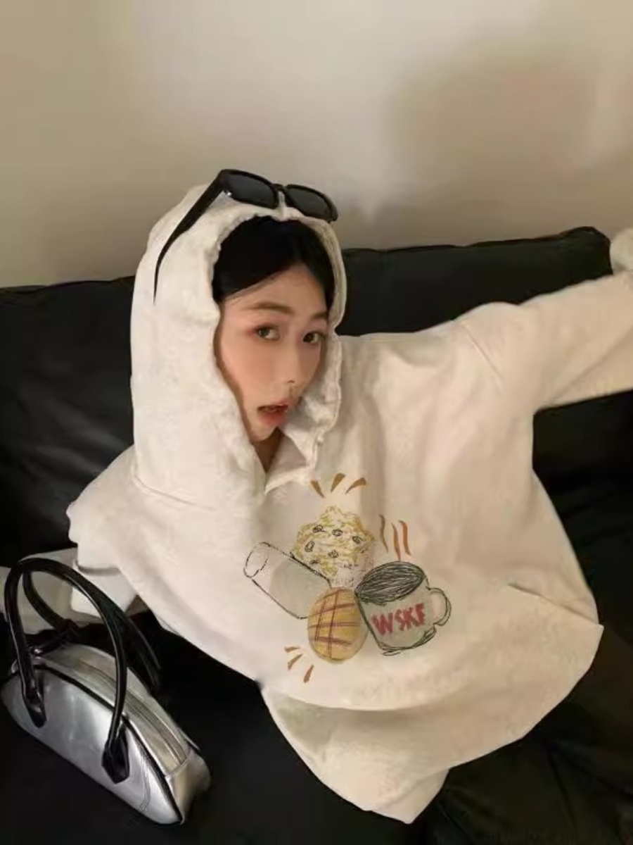 Pure Cotton Silver Fox Velvet American Retro Hooded Sweatshirt Women 2025 New Arrival Spring & Fall Loose Oversize Fleece Padded Coat