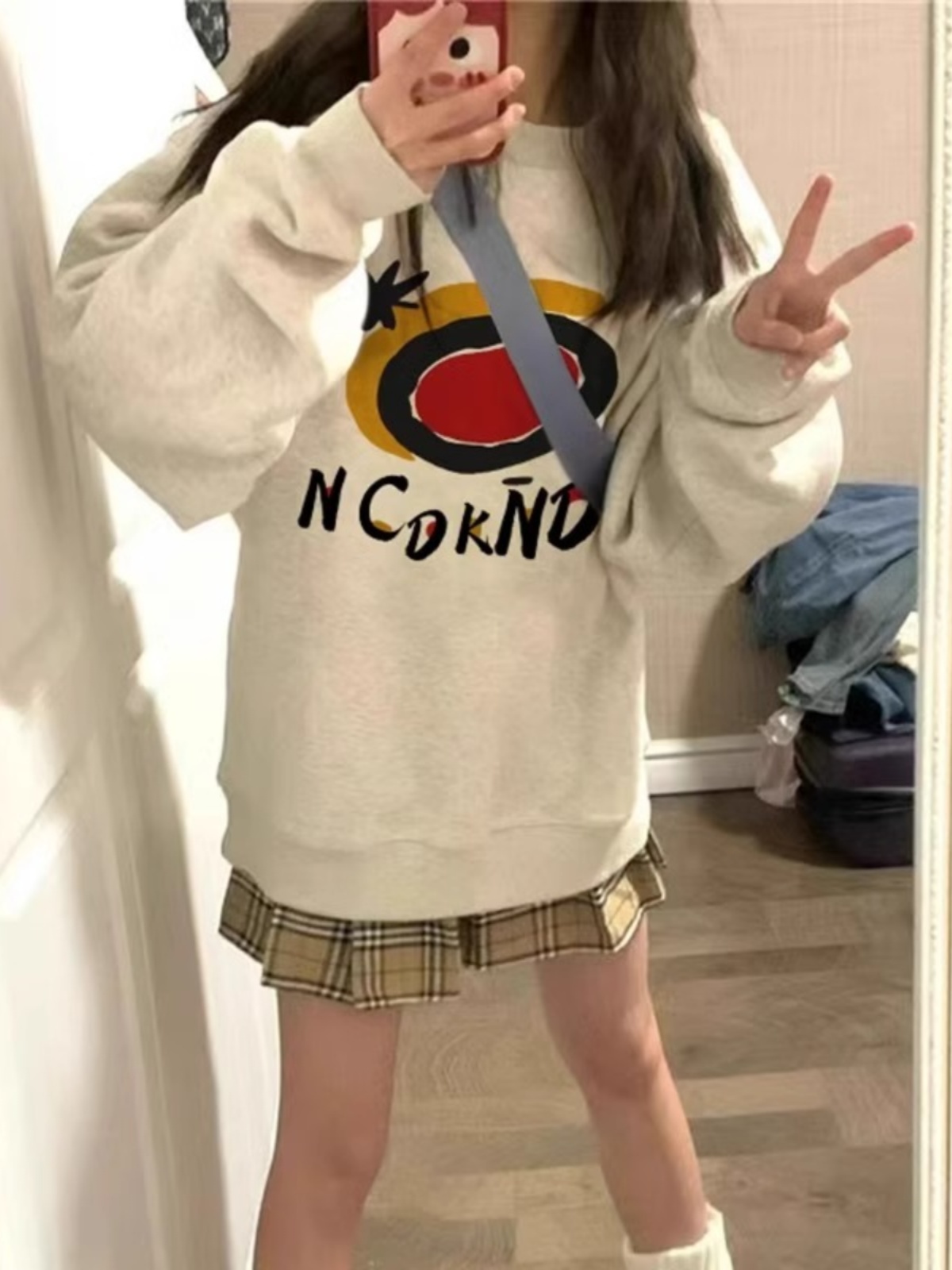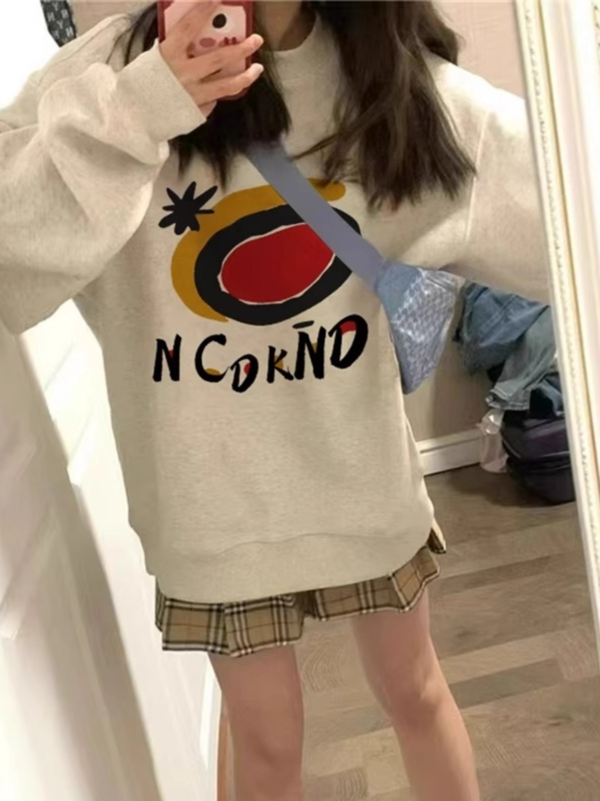Pure Cotton Silver Fox Velvet Spring & Fall Velvet Padded Thickened Sweater Female 2025 New Arrival Best Selling round-Neck Non-Hoodie Gray American Style Loose