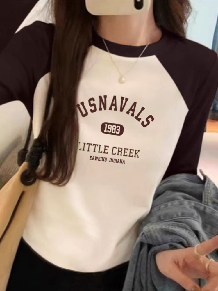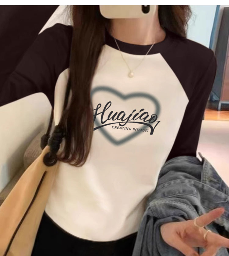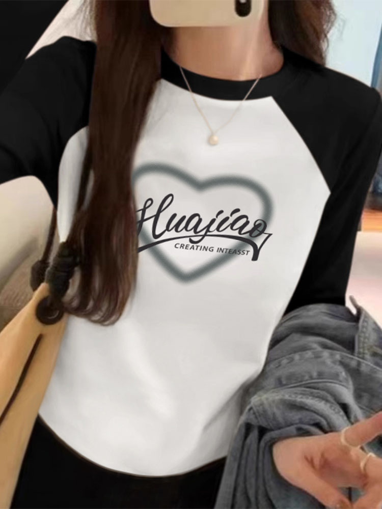 Pure Cotton Stitching Long Sleeve T-shirt Women's Shoulder Undershirt Inner Wear New Arrival Spring and Autumn Stylish Niche Style Contrast Color Tops