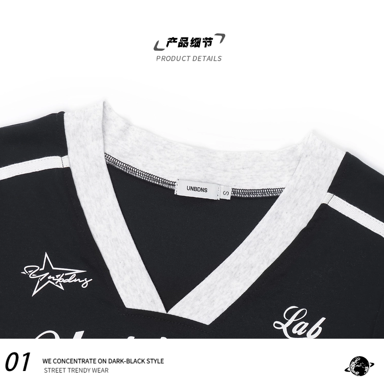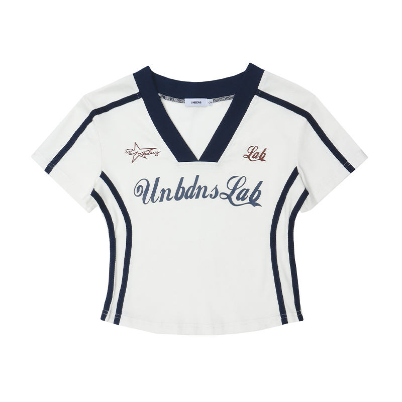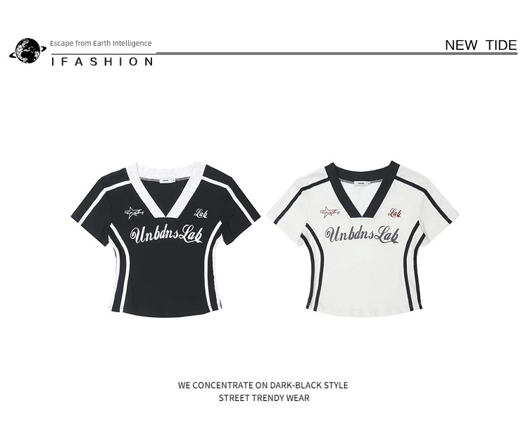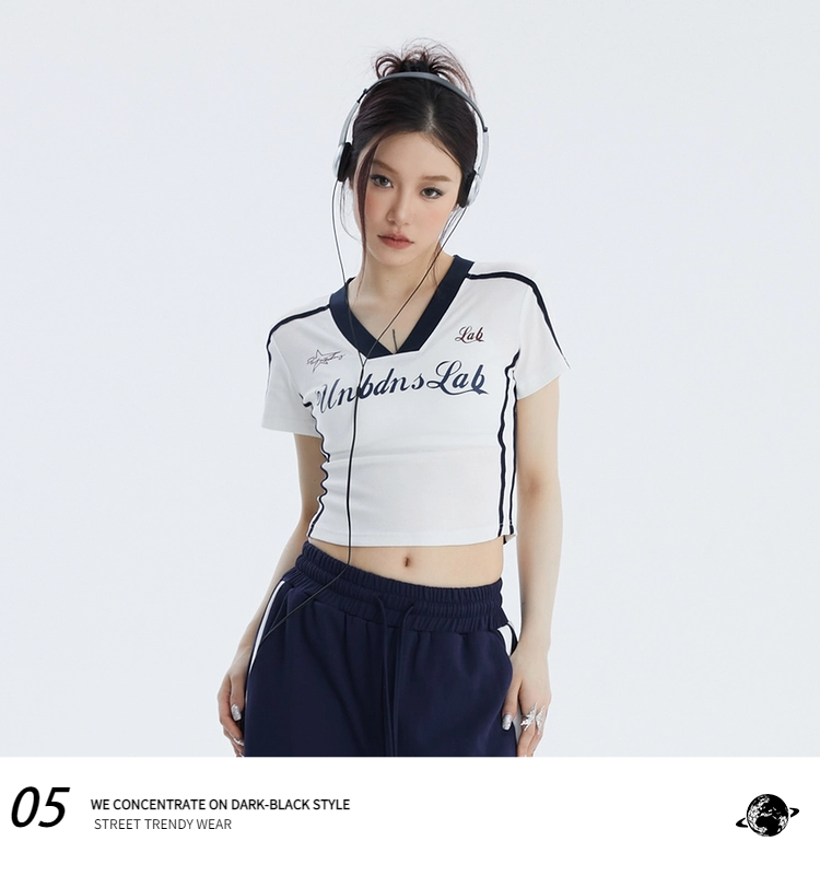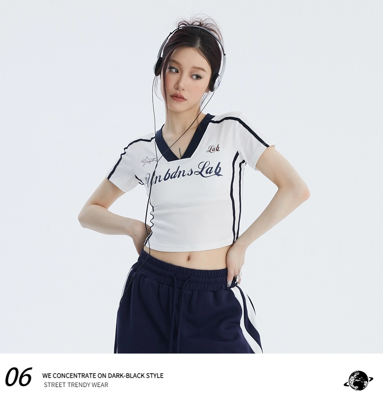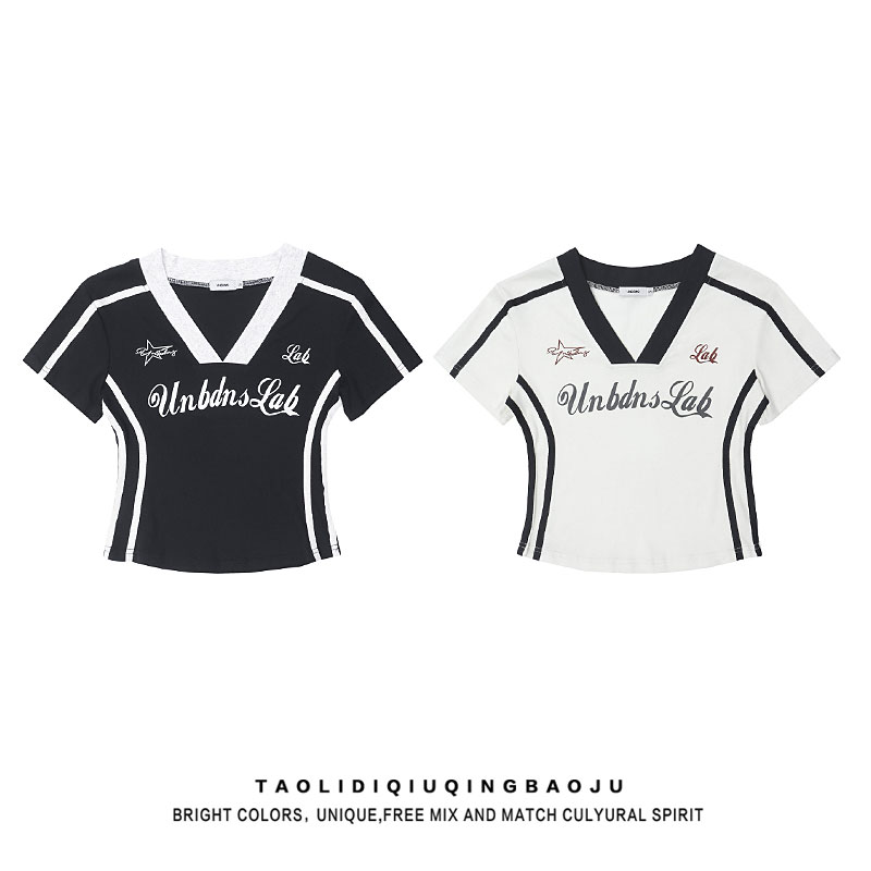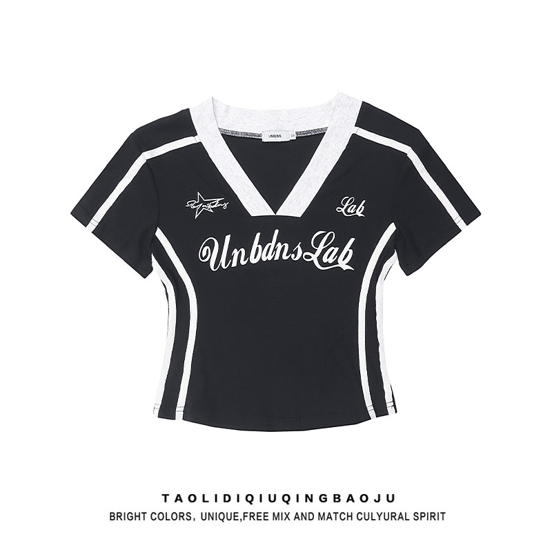 Pure Desire Style ABG Sexy V-neck Patchwork Shoulder Short Sleeve T-shirt Female Summer Slim Looking Waist Tight Jazz Sweet Spicy Short Tops