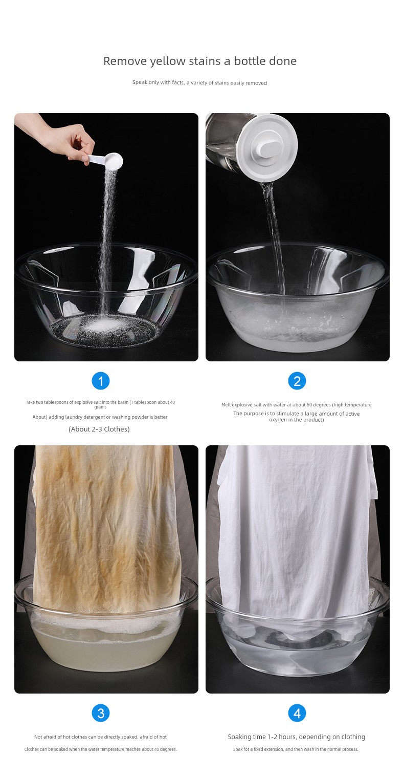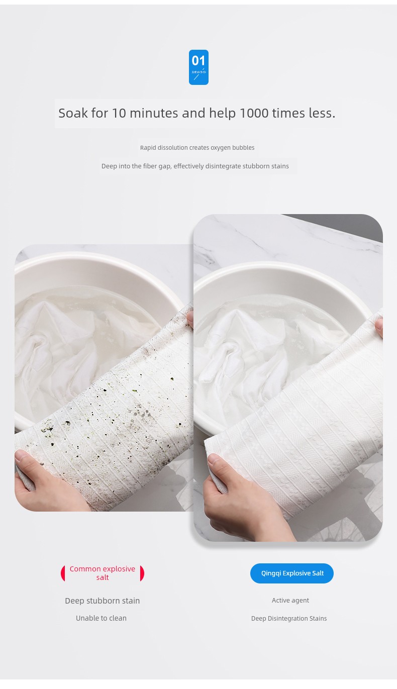 Qingqi Salt Fizzer Laundry Stain Removal Strong Anti-Yellow Whitening Bleacher Color White Clothes Washing White Wash and Clean
