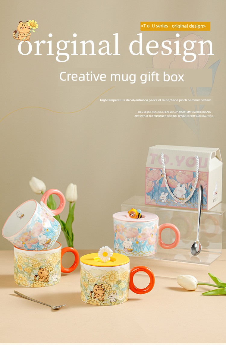 Qixi Valentine's Day Gift Box for Girlfriend Birthday Gift for Girls Practical Ceramic Water Cup Mug for Girlfriends