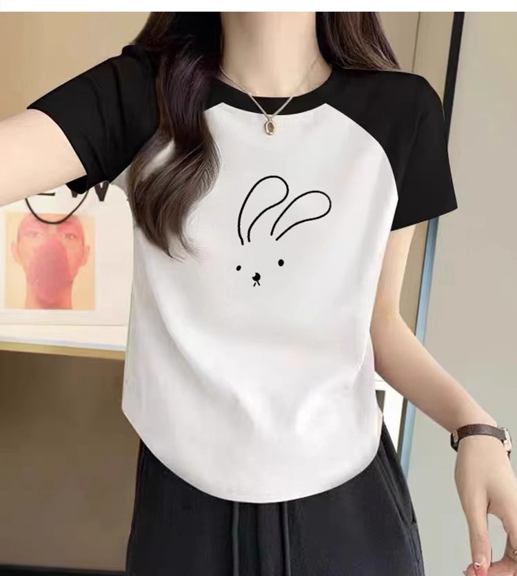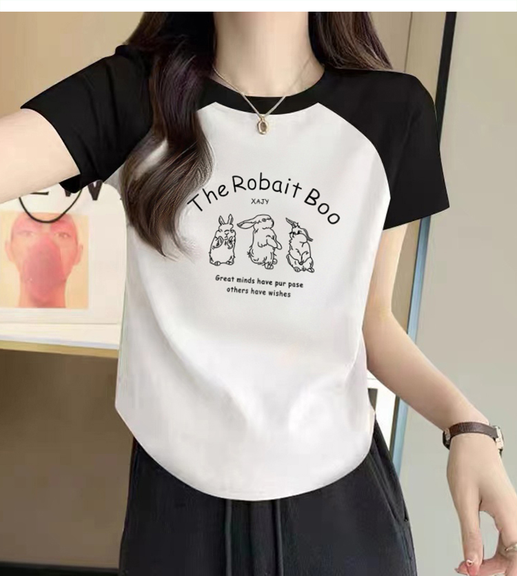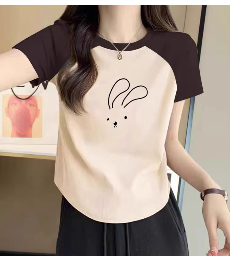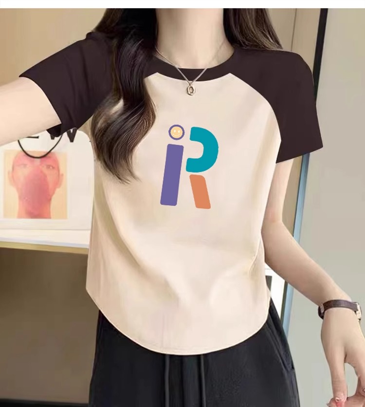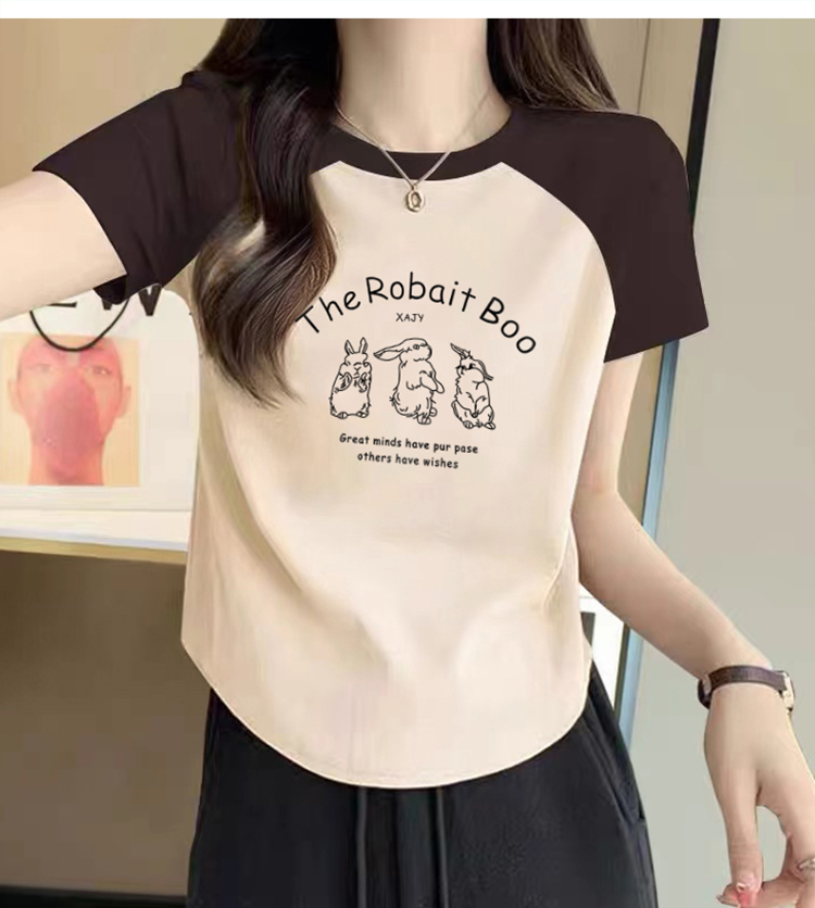 Raglan Short Sleeve T-Shirt Women's 2025 Summer New Arrival Retro Shoulder Contrast Color T-shirt Small Short U Hem Tops