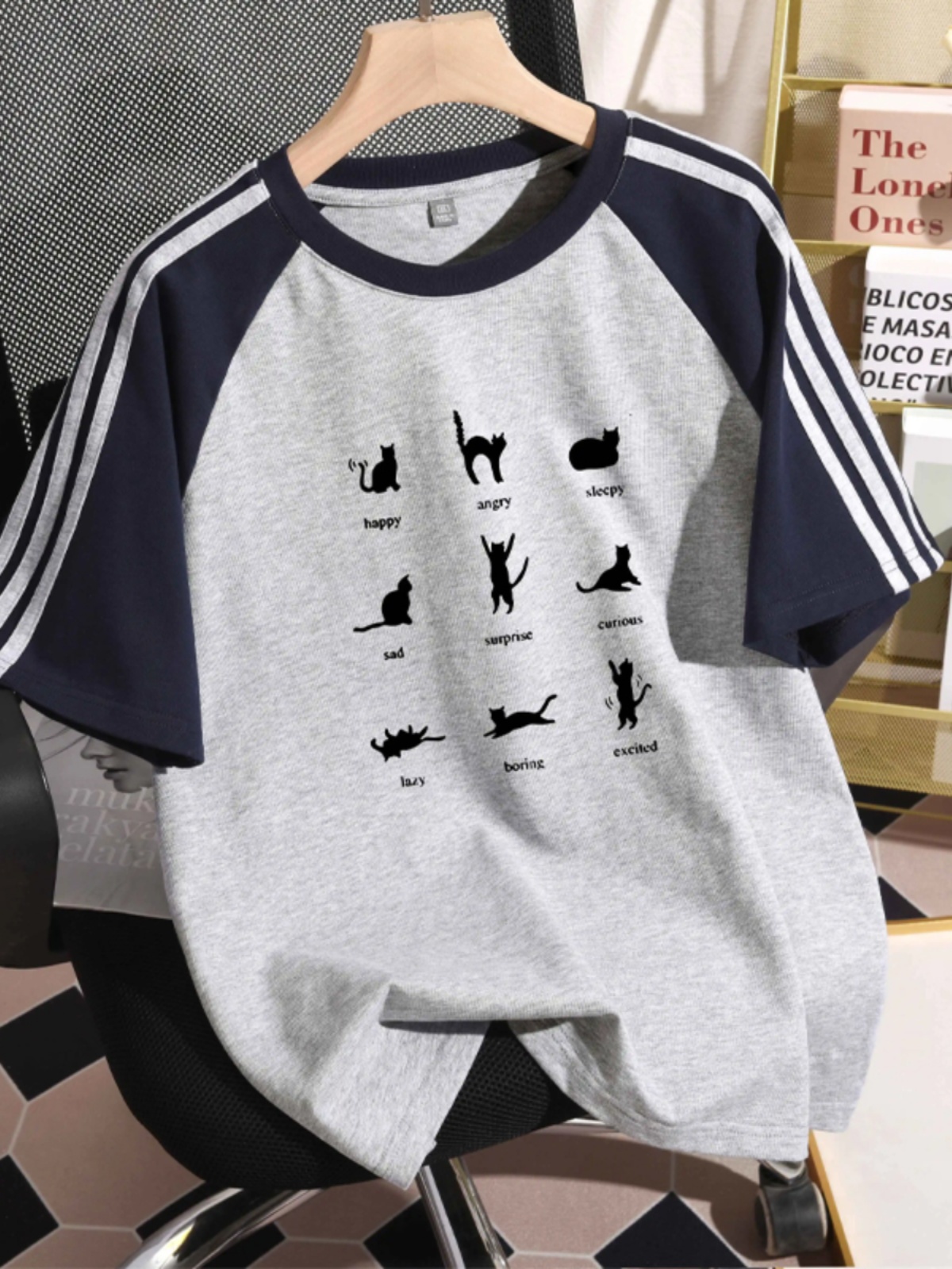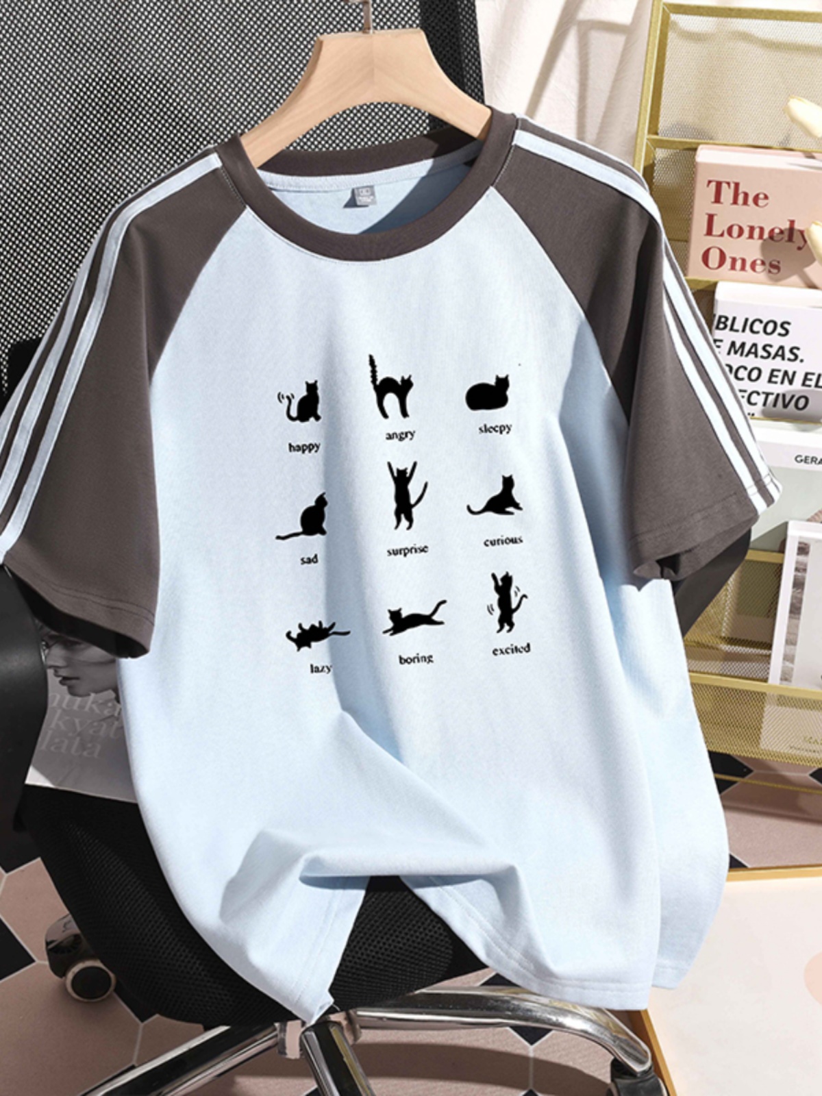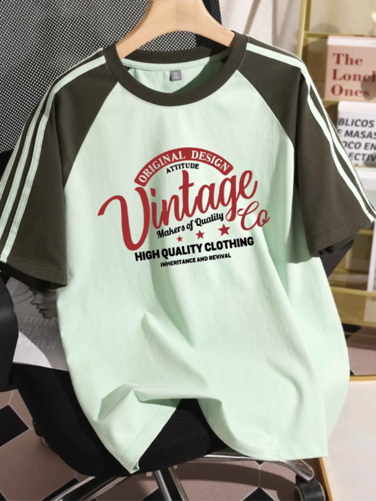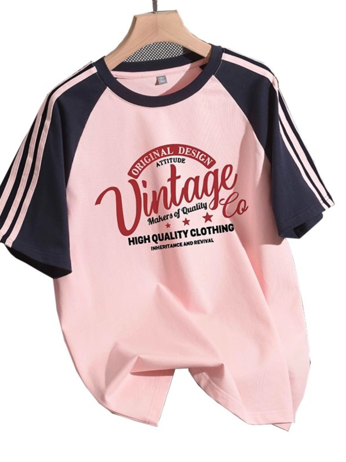 Raglan Short Sleeve T-Shirt Women's New Arrival Summer 2025 Stylish Three Bars Black and White Contrast Color Pure Cotton Half-Sleeve Base