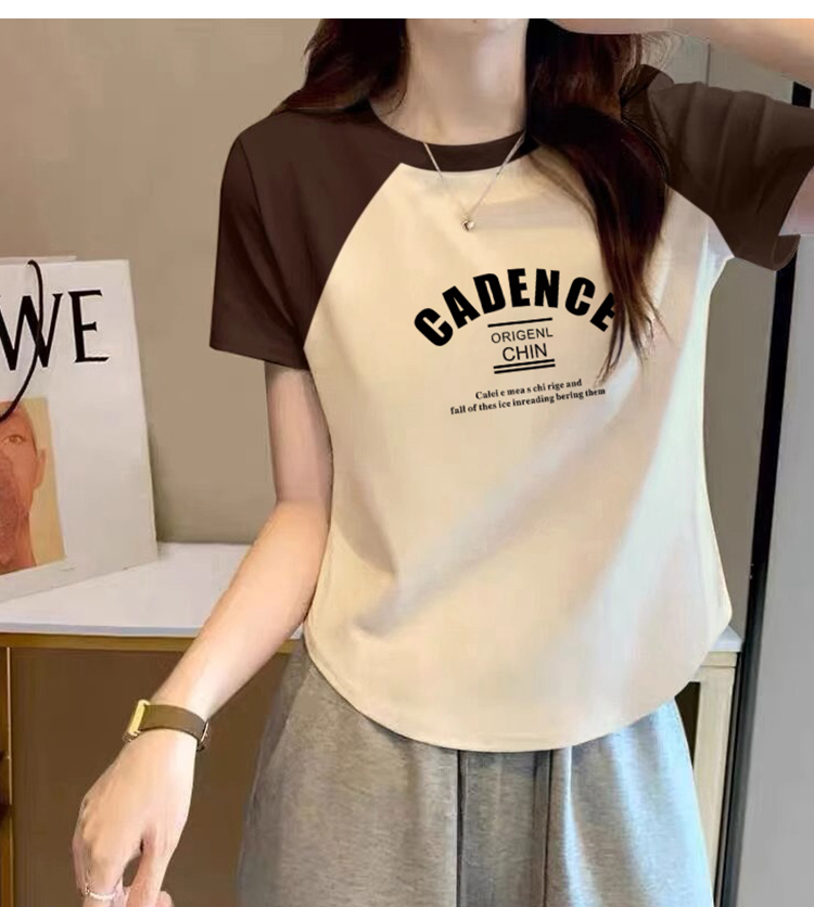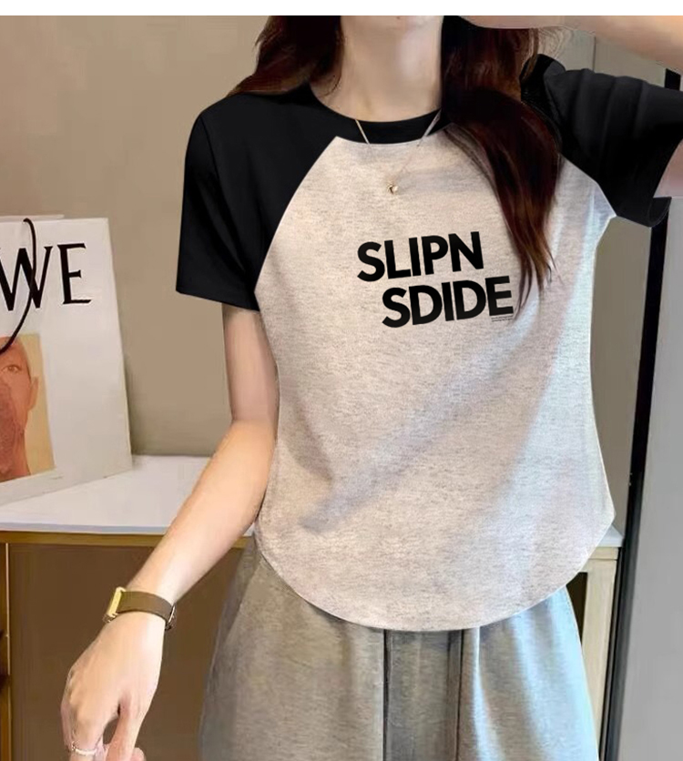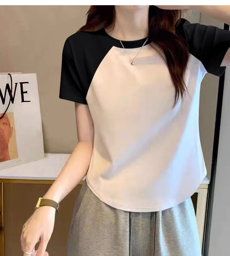 Raglan Short Sleeve T-Shirt Women's Summer New Arrival American Retro Shoulder T-shirt Small Short Black and White Contrast Color Tops