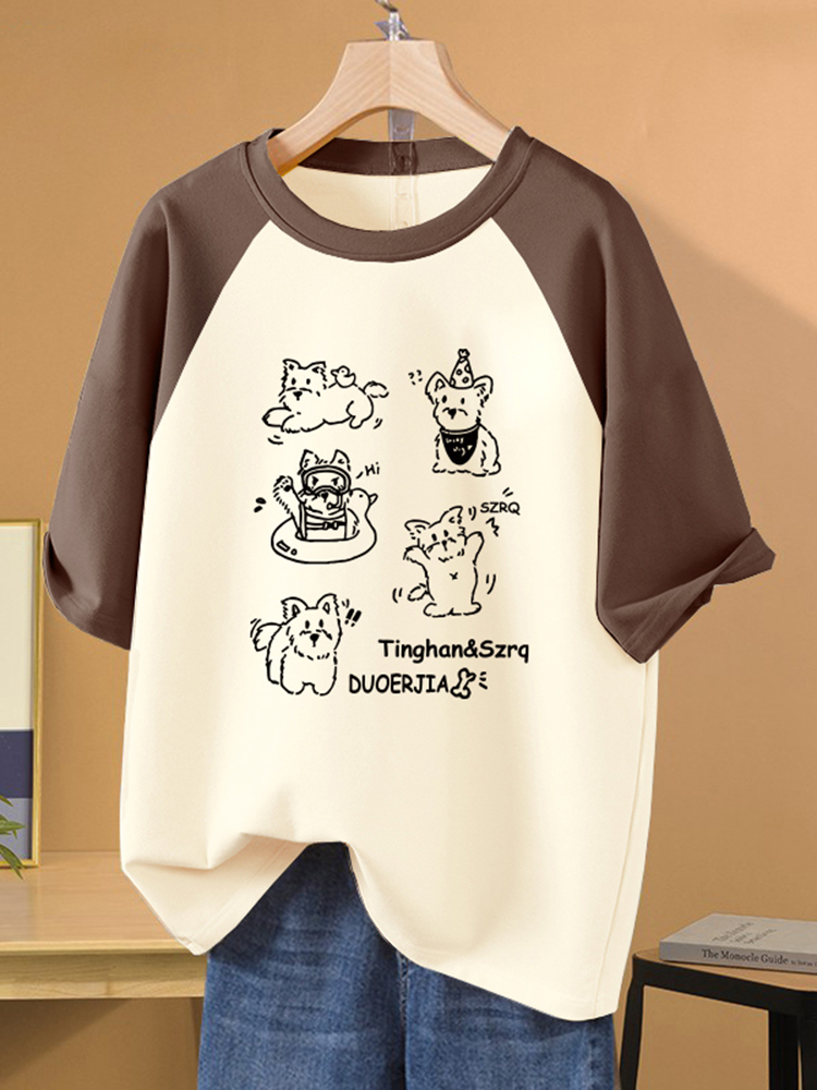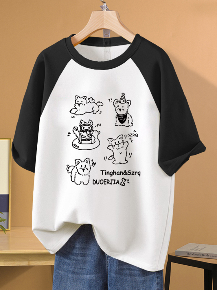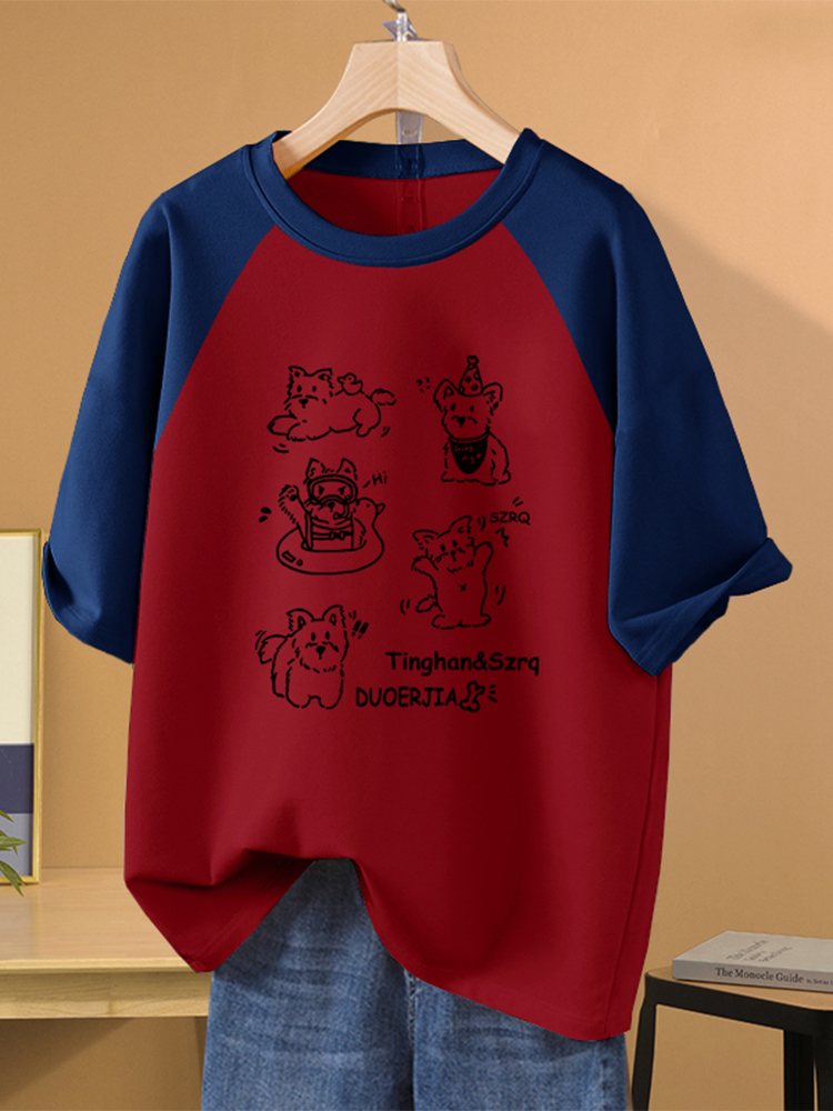 Contrast Color Raglan Sleeve Loose Short-Sleeve T-Shirt - Chubby Girl Slimming Design Niche Summer Top