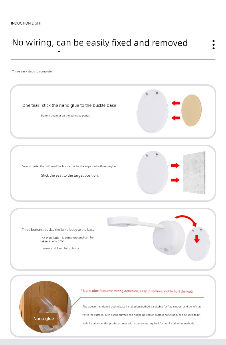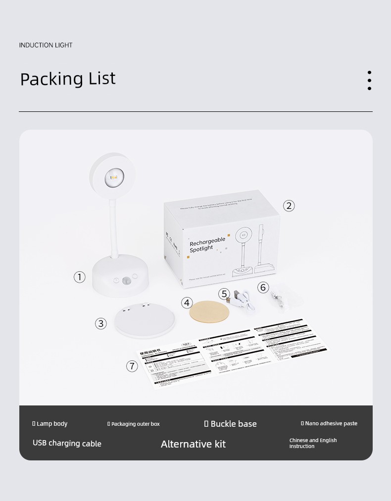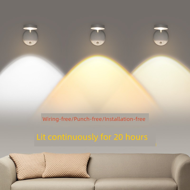 Rechargeable Spotlight For Home Wireless Punch-Free Small Hill Wall Lamp Background Wall Sensor LED Wall Lamp Wiring Free