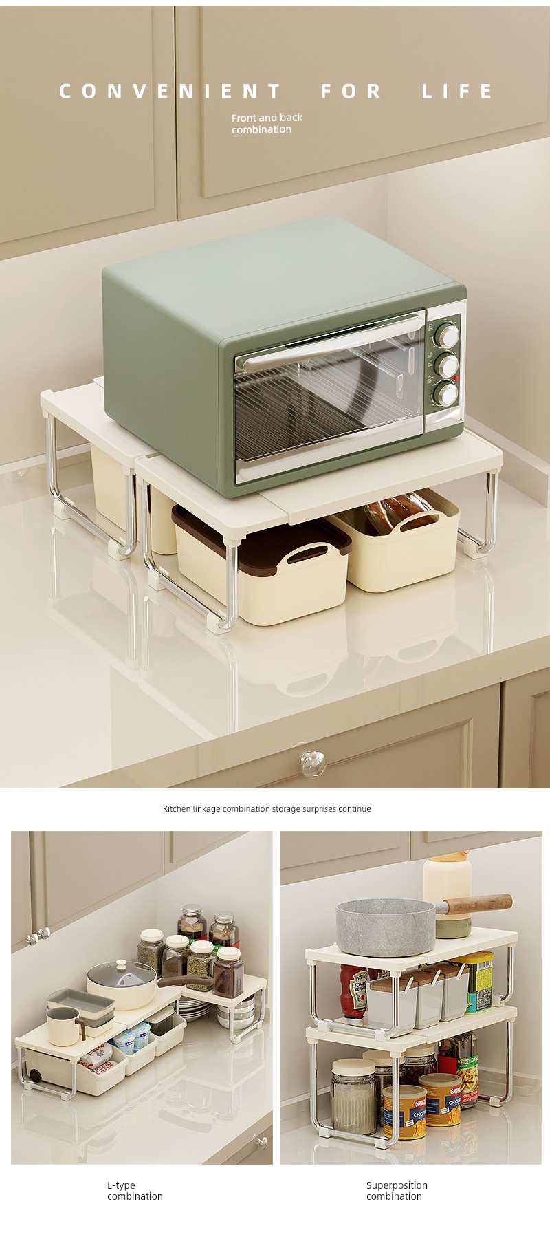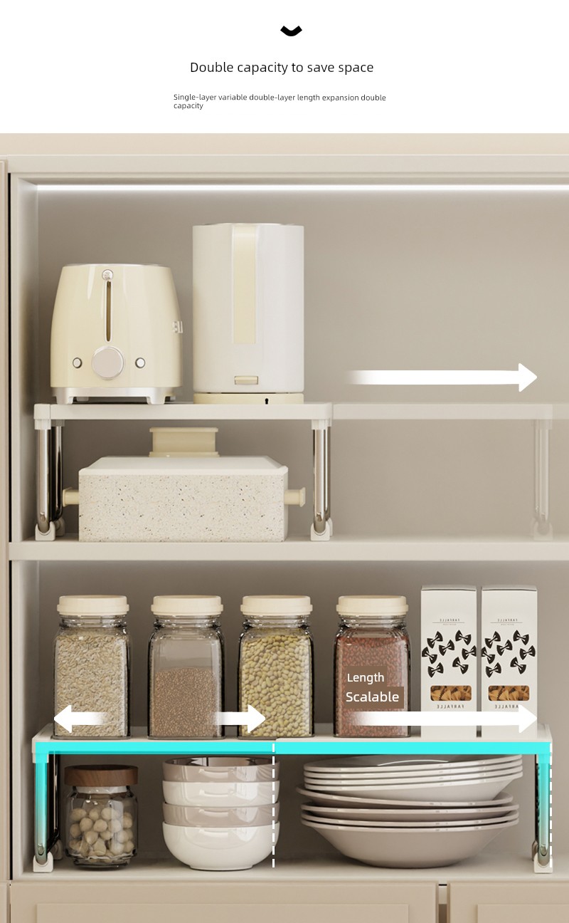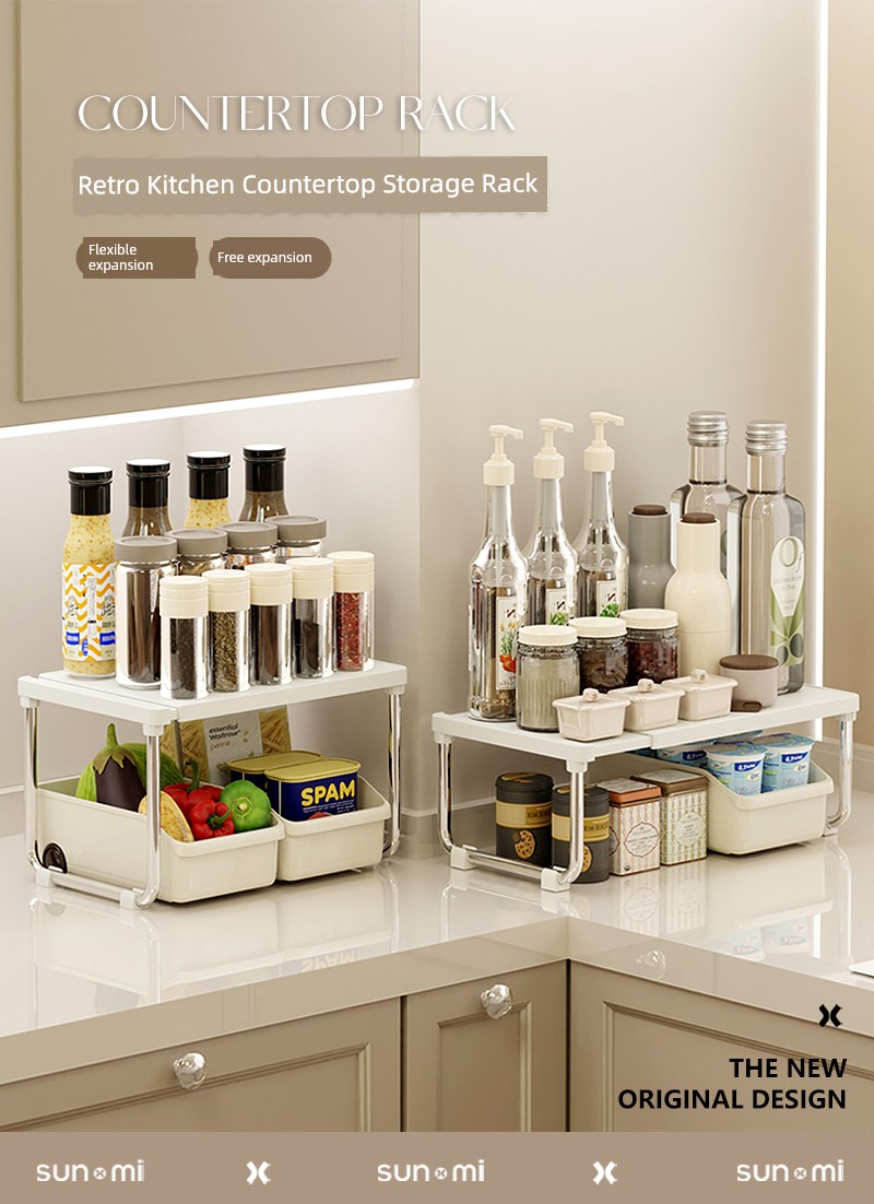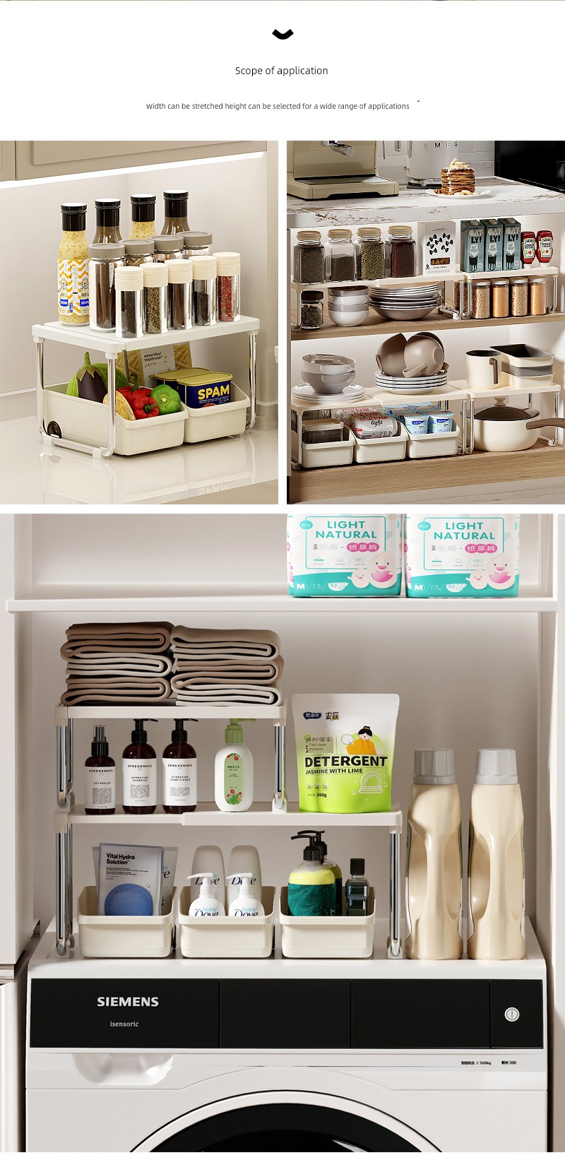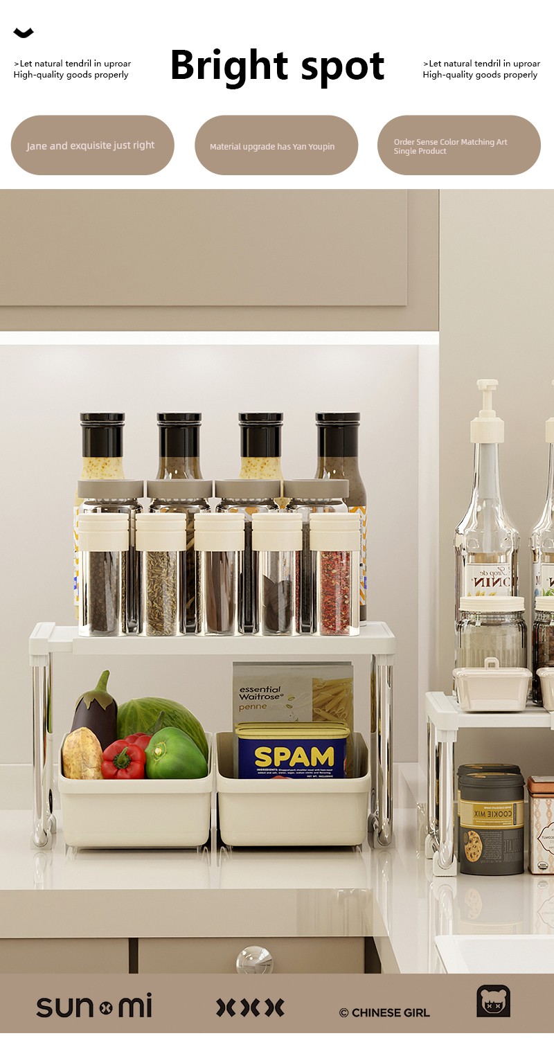 Retractable Kitchen Storage Rack Cabinet Supplies Layered Desktop Seasoning Product Multi-Functional Space-Saving Overlay Storage Rack