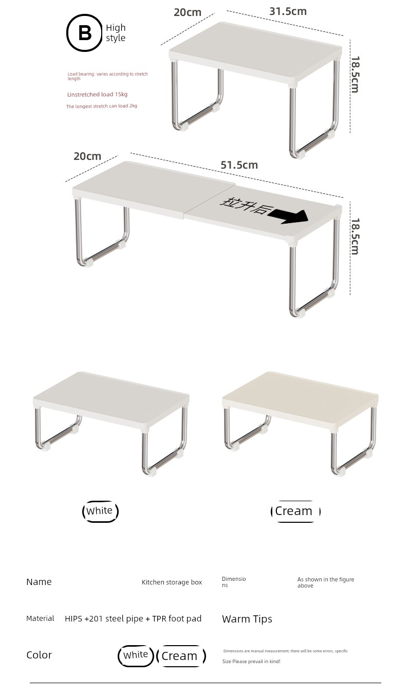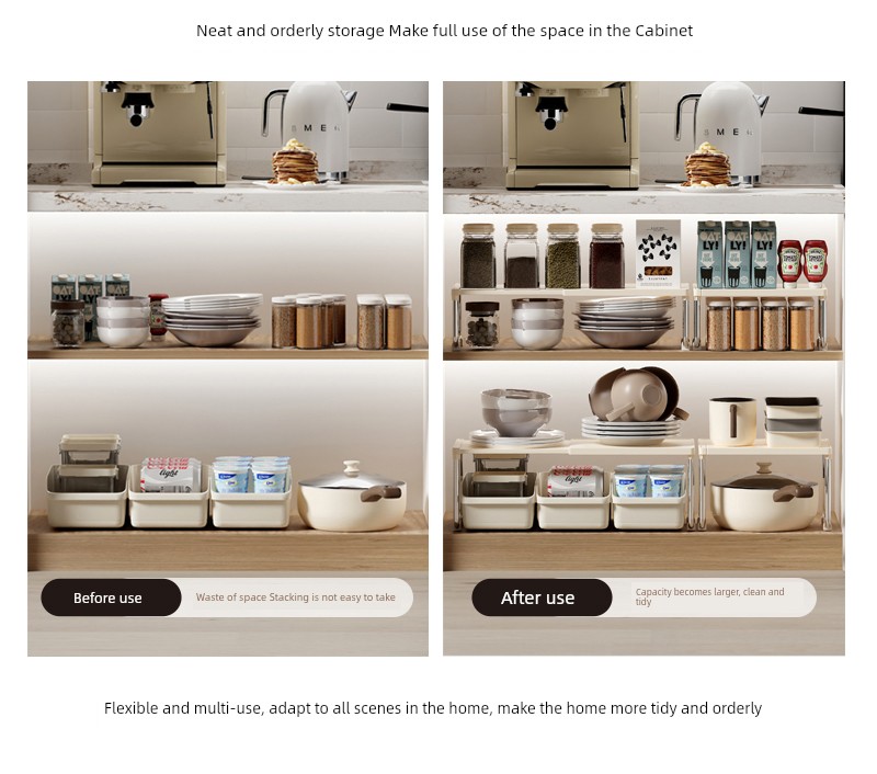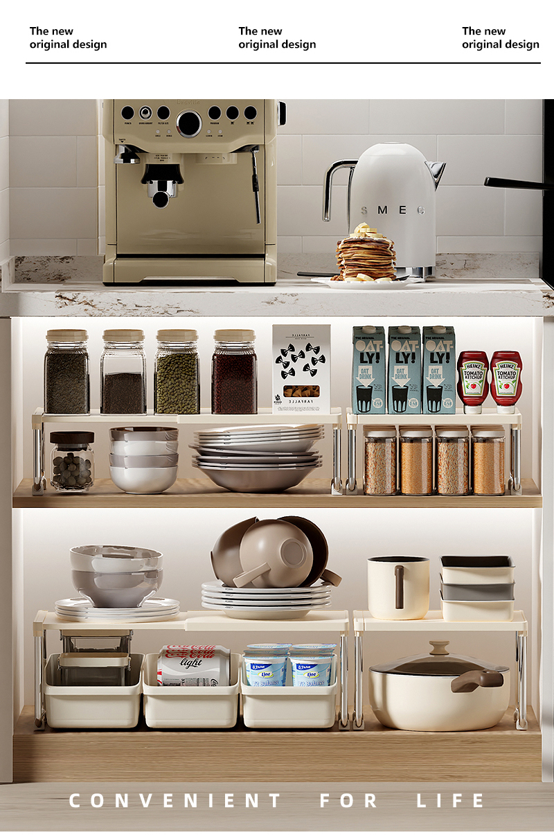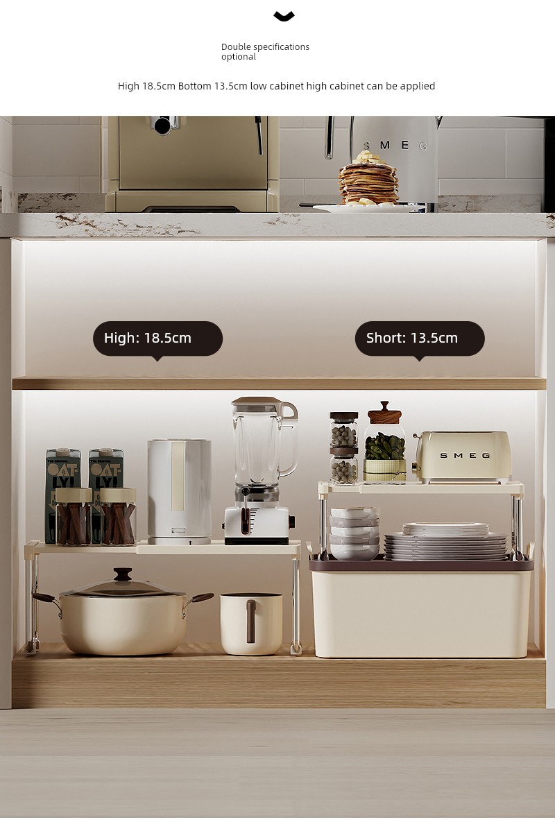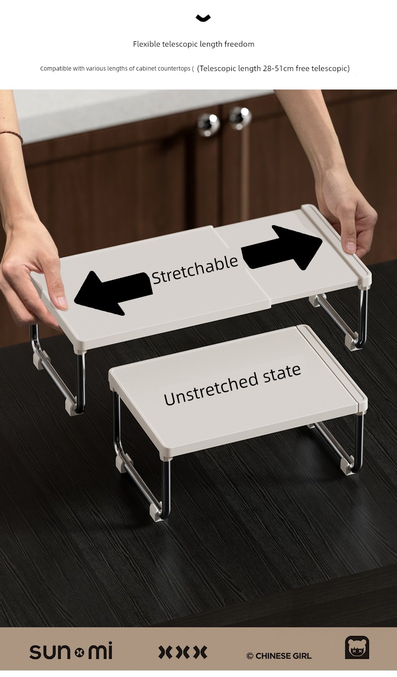 Retractable Kitchen Storage Rack Cabinet Supplies Layered Desktop Seasoning Product Multi-Functional Space-Saving Overlay Storage Rack