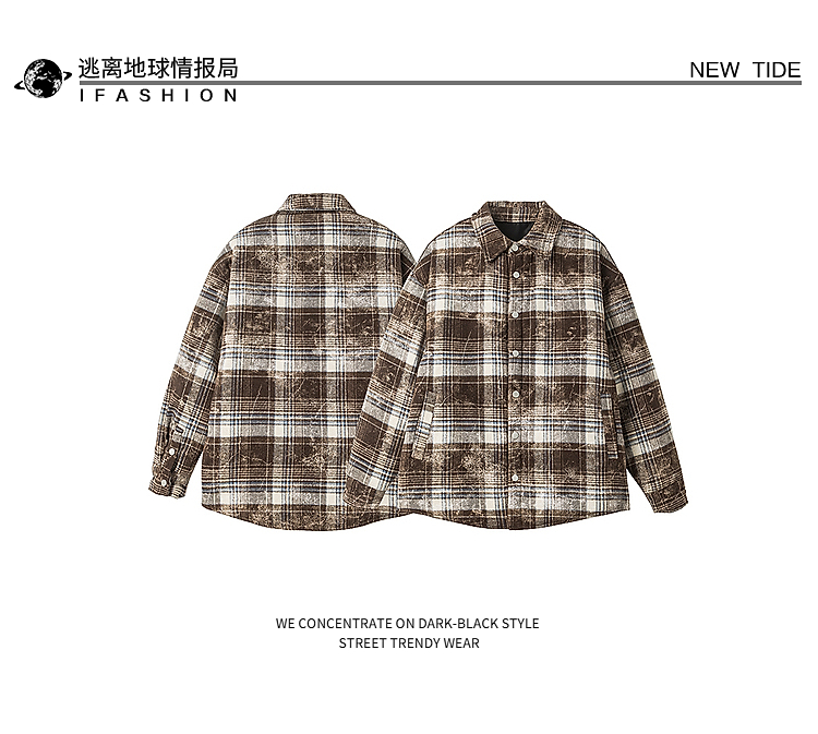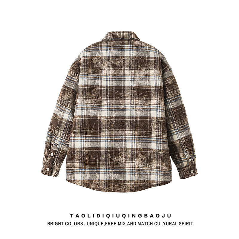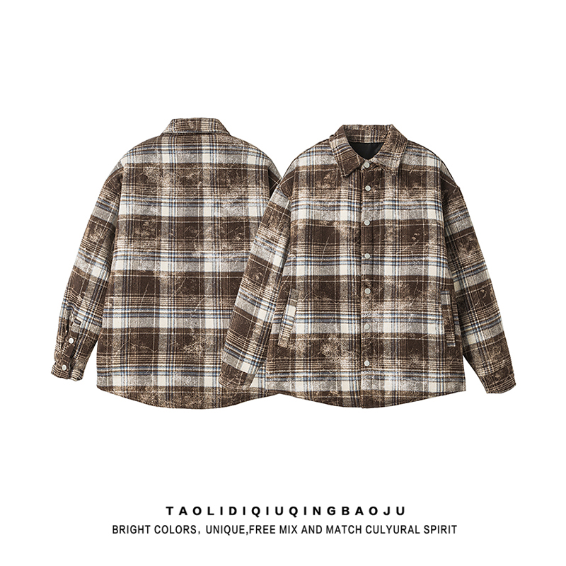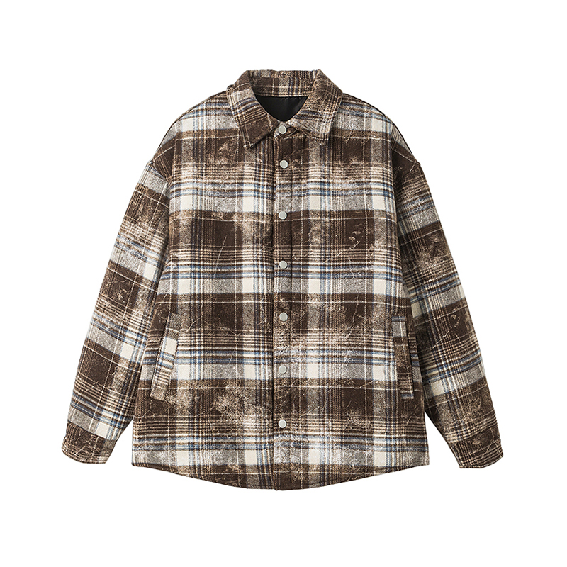 Retro Color-Contrast Check Long-Sleeved Woolen Coat Female 2025 New Arrival Loose and Lazy Style Thickened Heattech Cotton Padded Coat