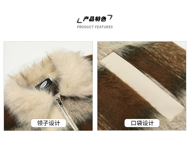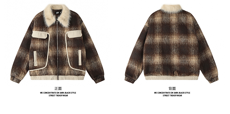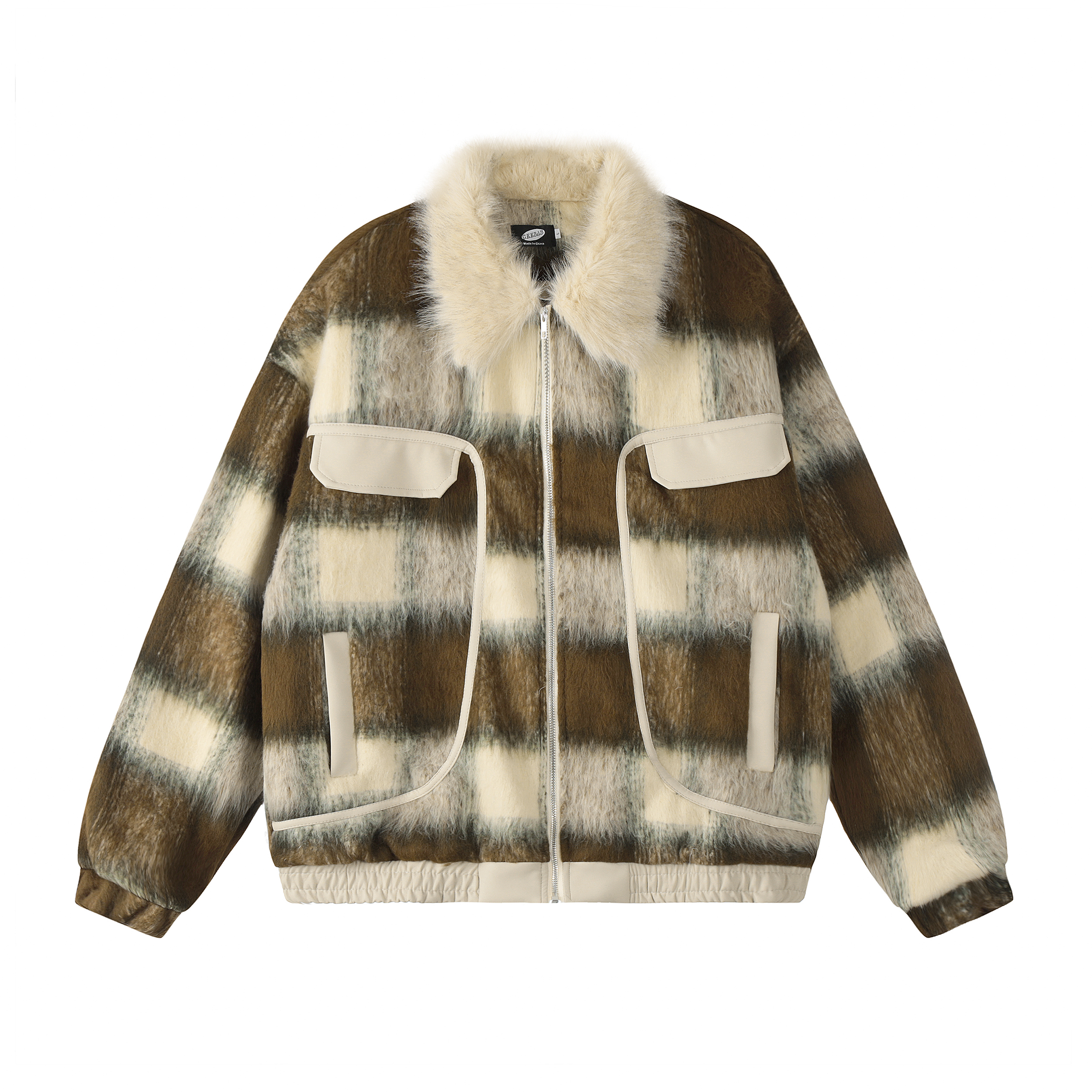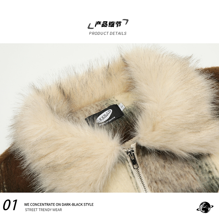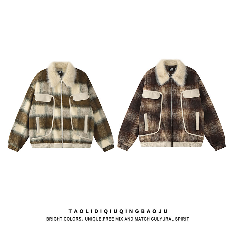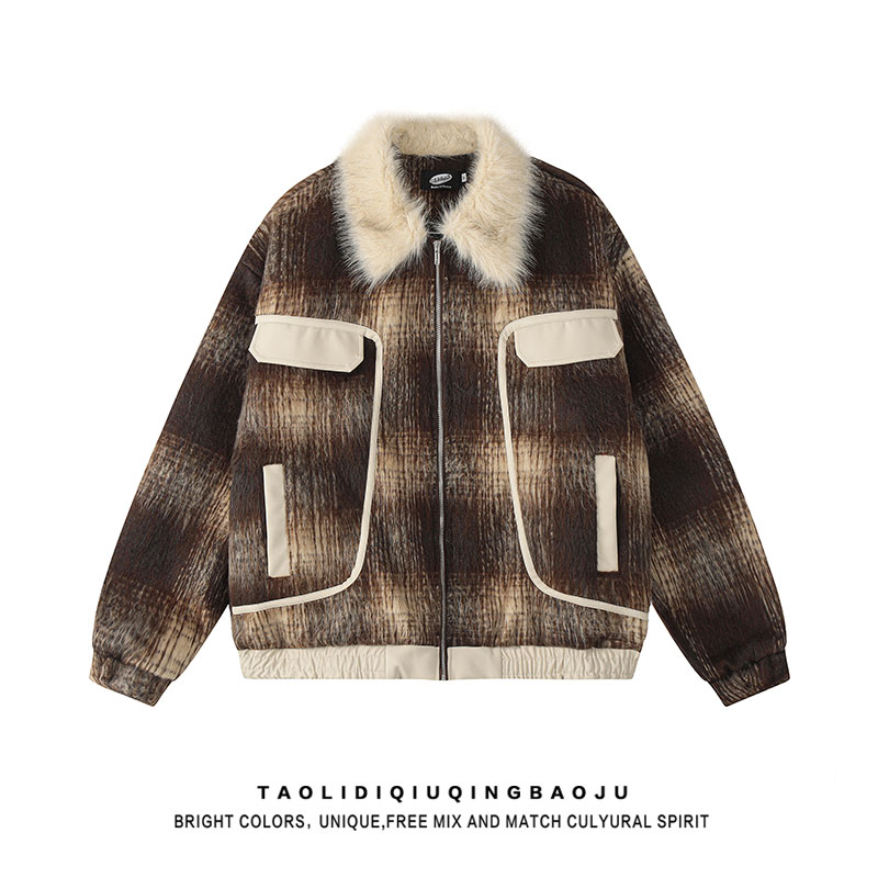 Retro Contrast Color Stripes Quilted Woolen Outwear Female 2025 New Arrival Chic Stylish Fur Collar Patchwork Thermal Cotton-Padded Clothes